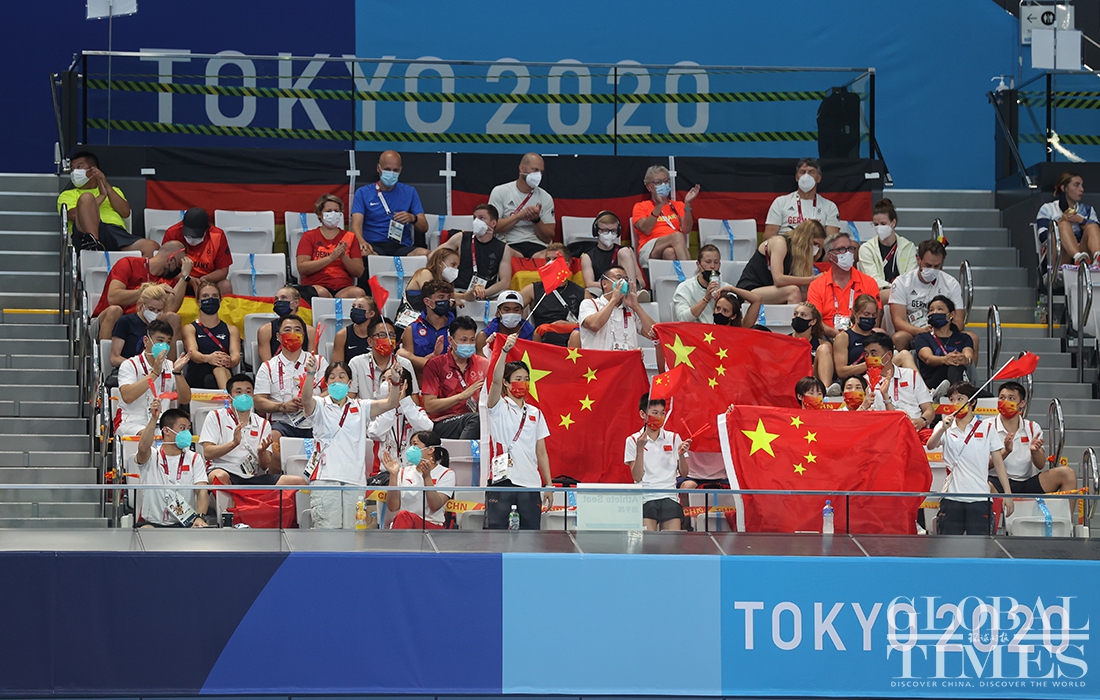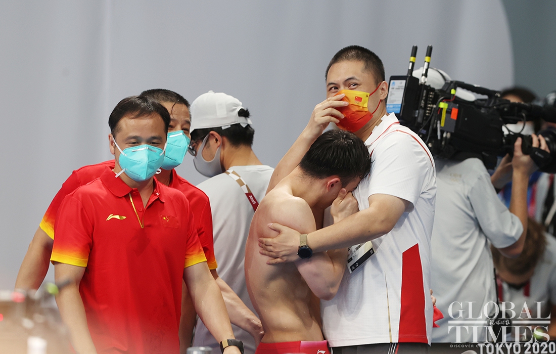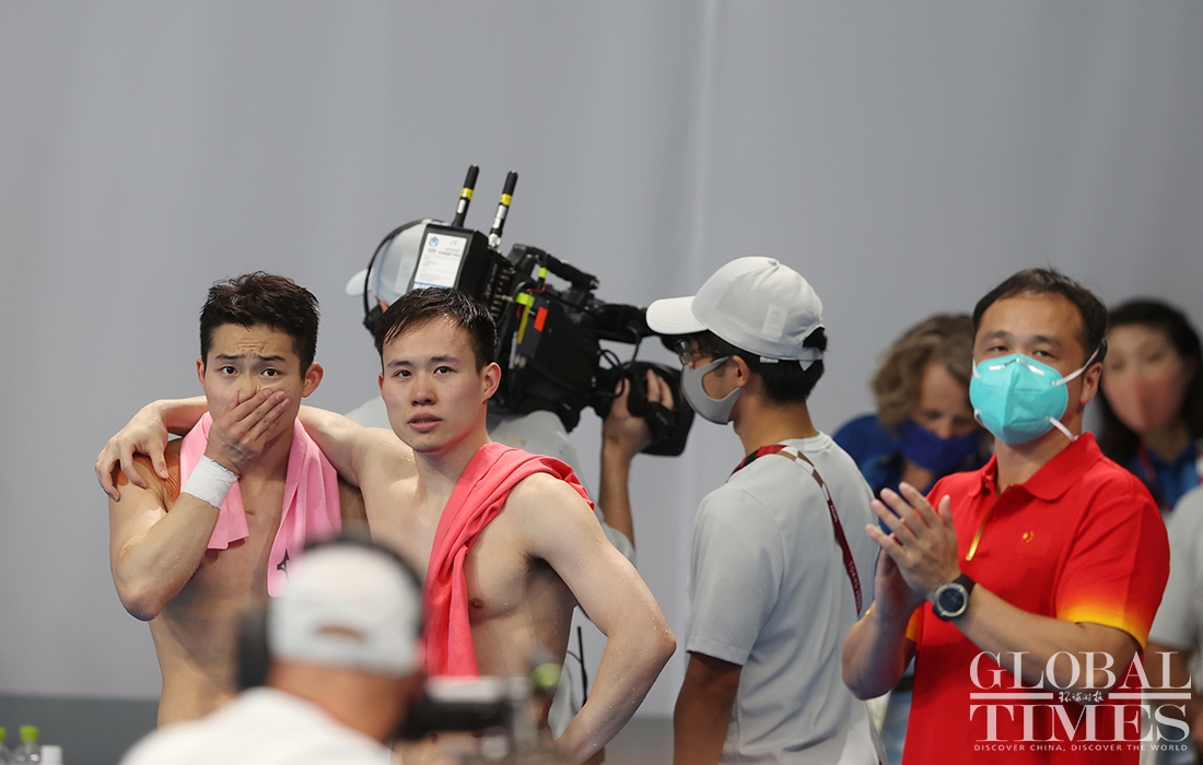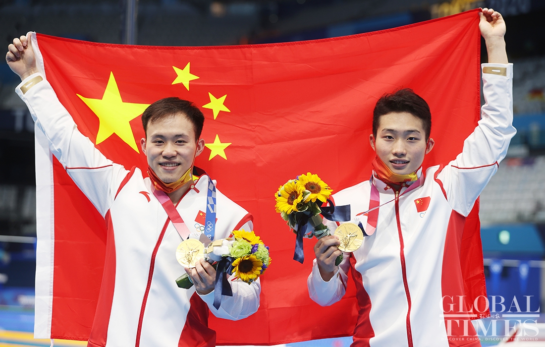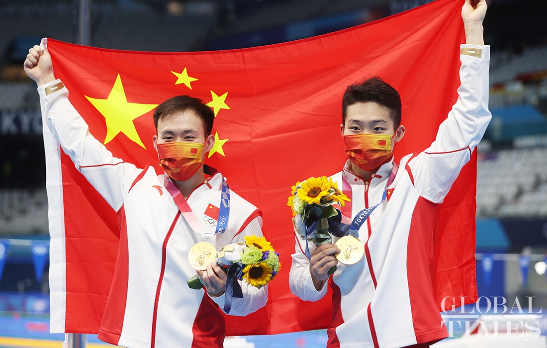Diving pair Xie Siyi and Wang Zongyuan sealed China's 11th gold medal at Tokyo Olympics by winnning the 3m synchro springboard race.Photos: Cui Meng