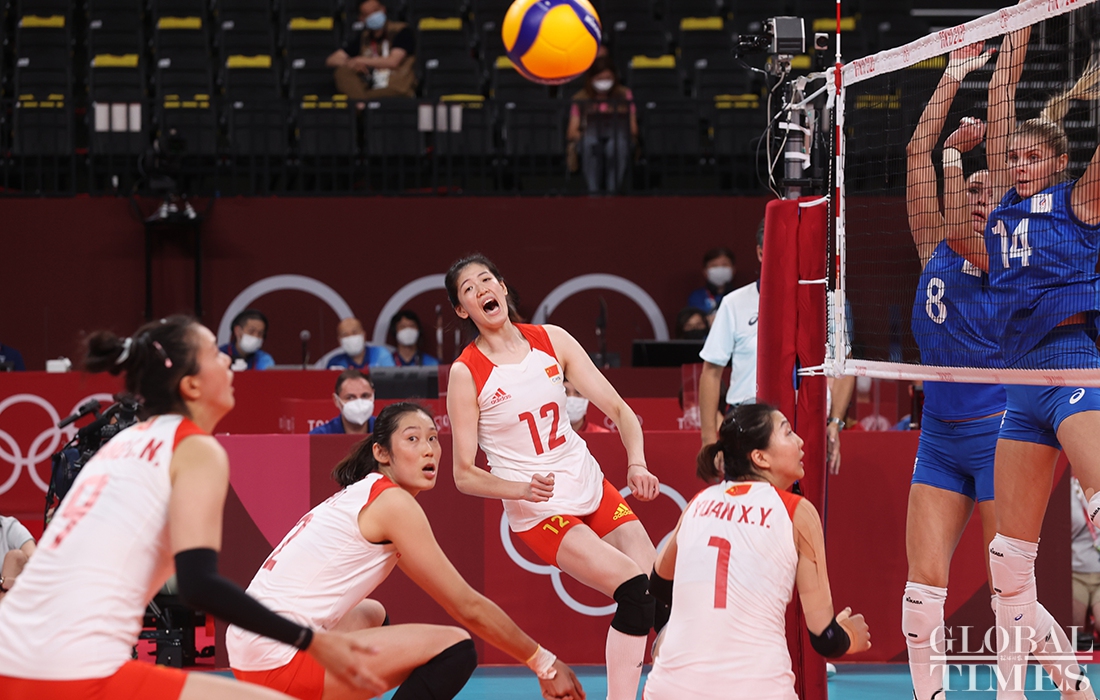 The Chinese women's volleyball team failed to secure a win after 3 group stage games as they were beaten 3-2 by the Russian Olympic Committee team. Photos: Cui Meng/GT