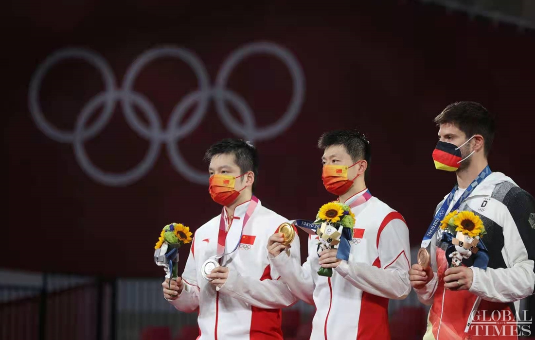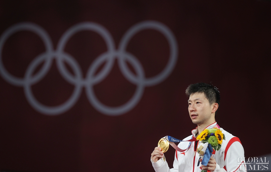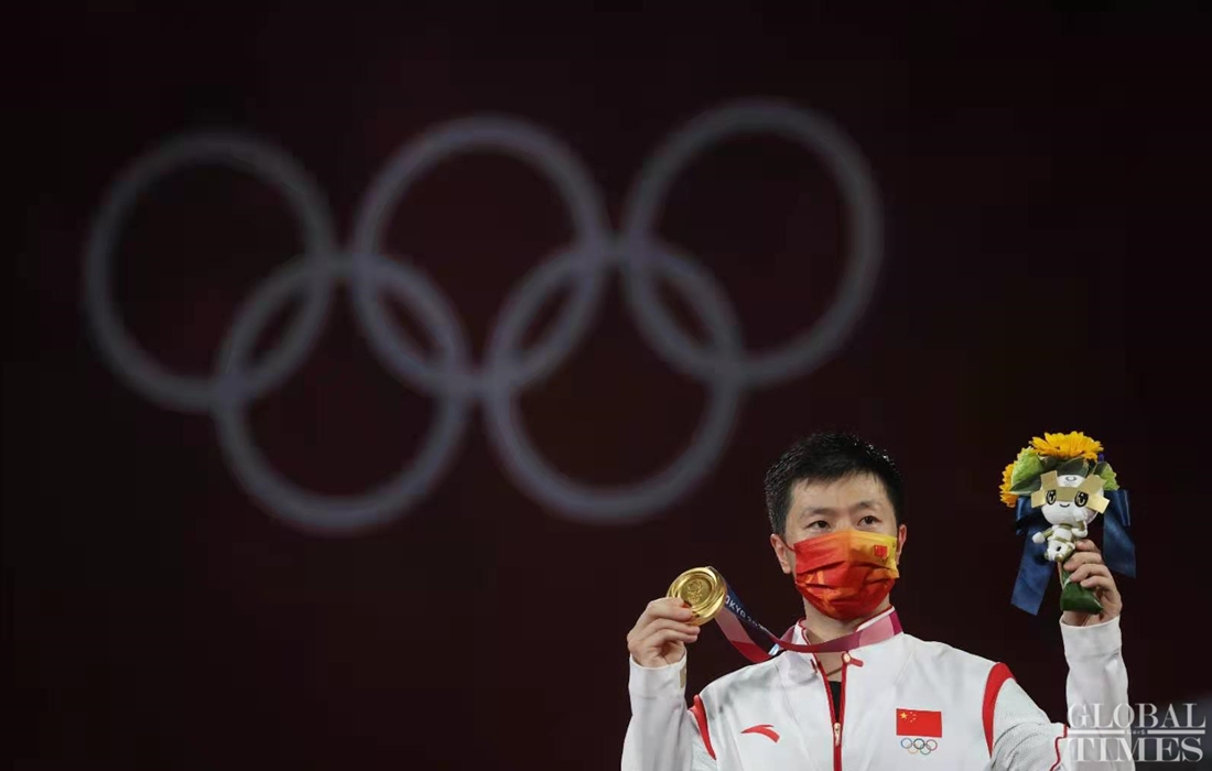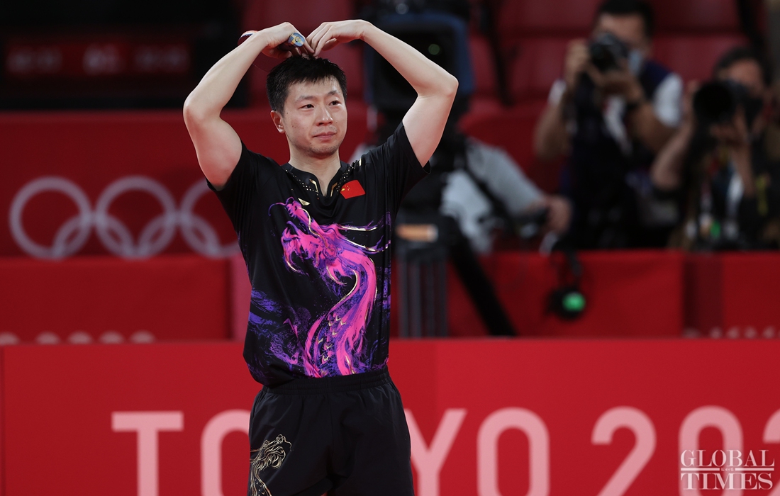 China's Ma Long became the first male table tennis player to win back-back Olympic titles in singles competition after outclassing world No. 1 and teammate Fan Zhendong 4-2 in the final at the Tokyo Olympic Games on Friday.Photo:Cui Meng/GT