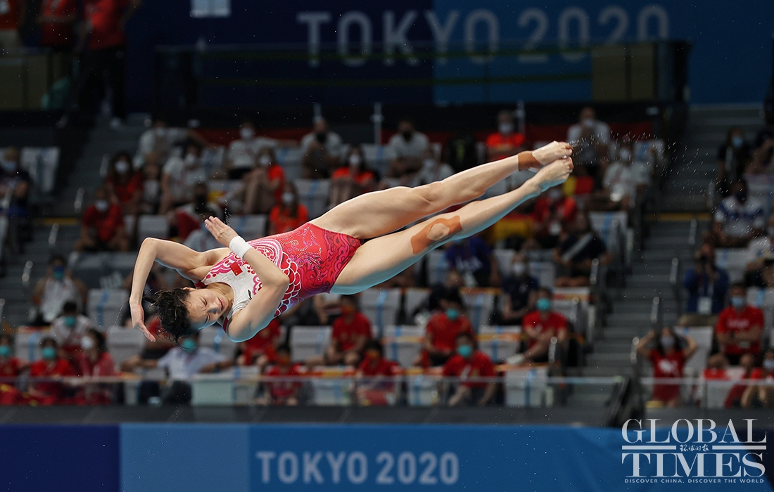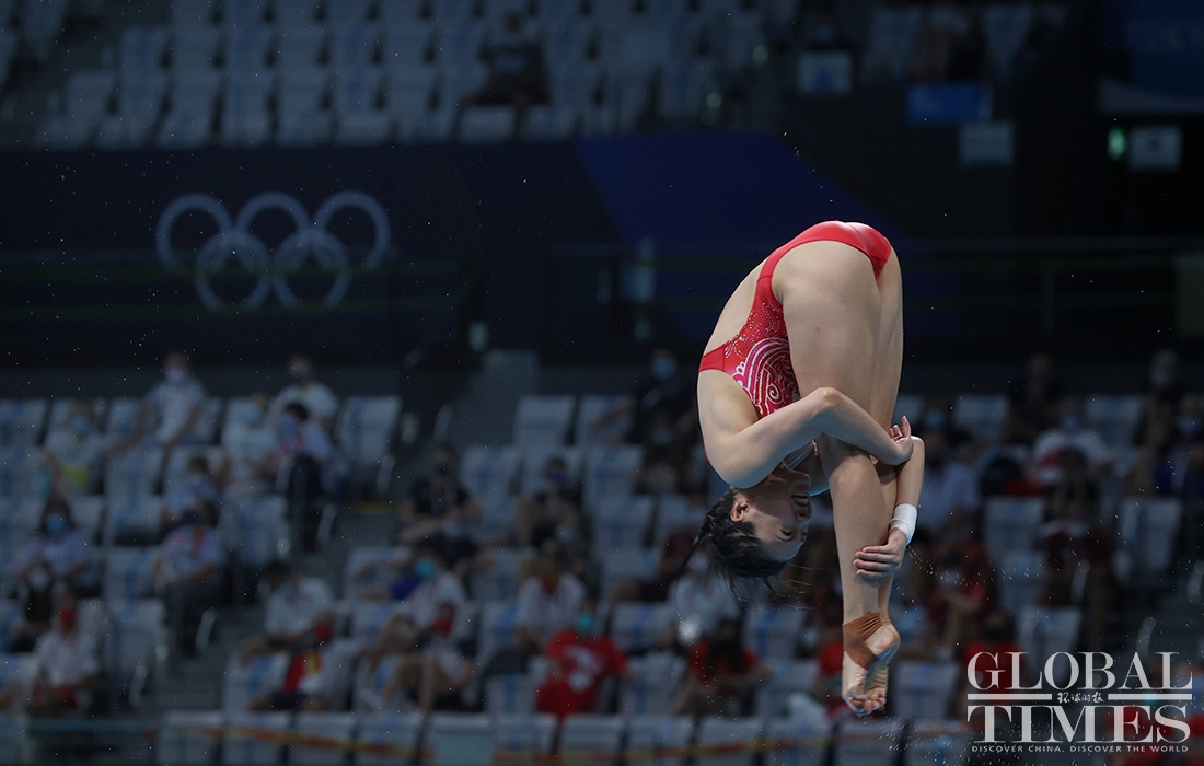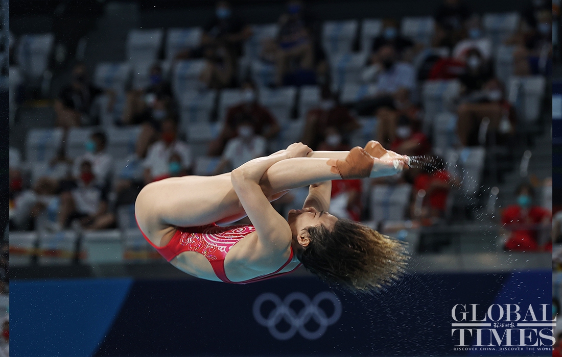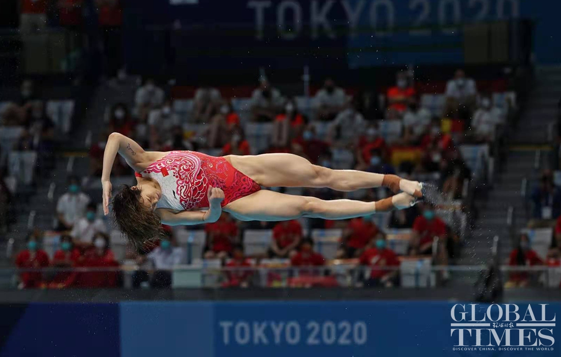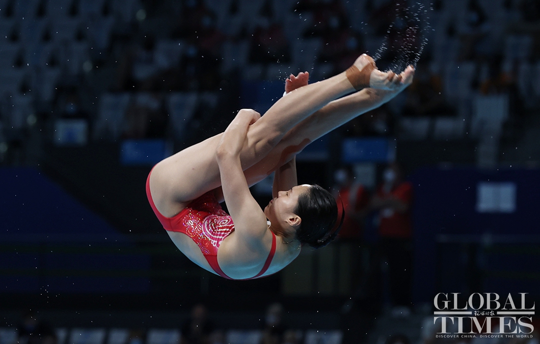 China's Shi Tingmao outperformed her teammate Wang Han to win the champion in women's 3m springboard, making it the 23rd gold medal for China at the Tokyo Olympics on Sunday. Wang claimed silver. Photos: Cui Meng/GT