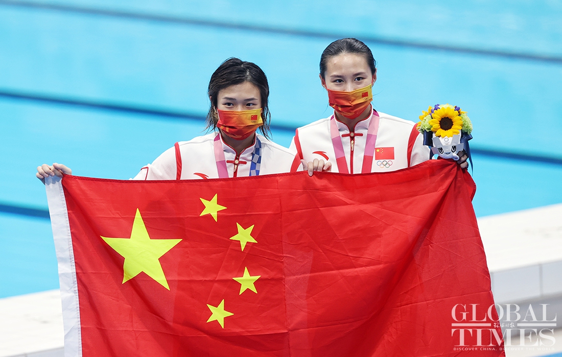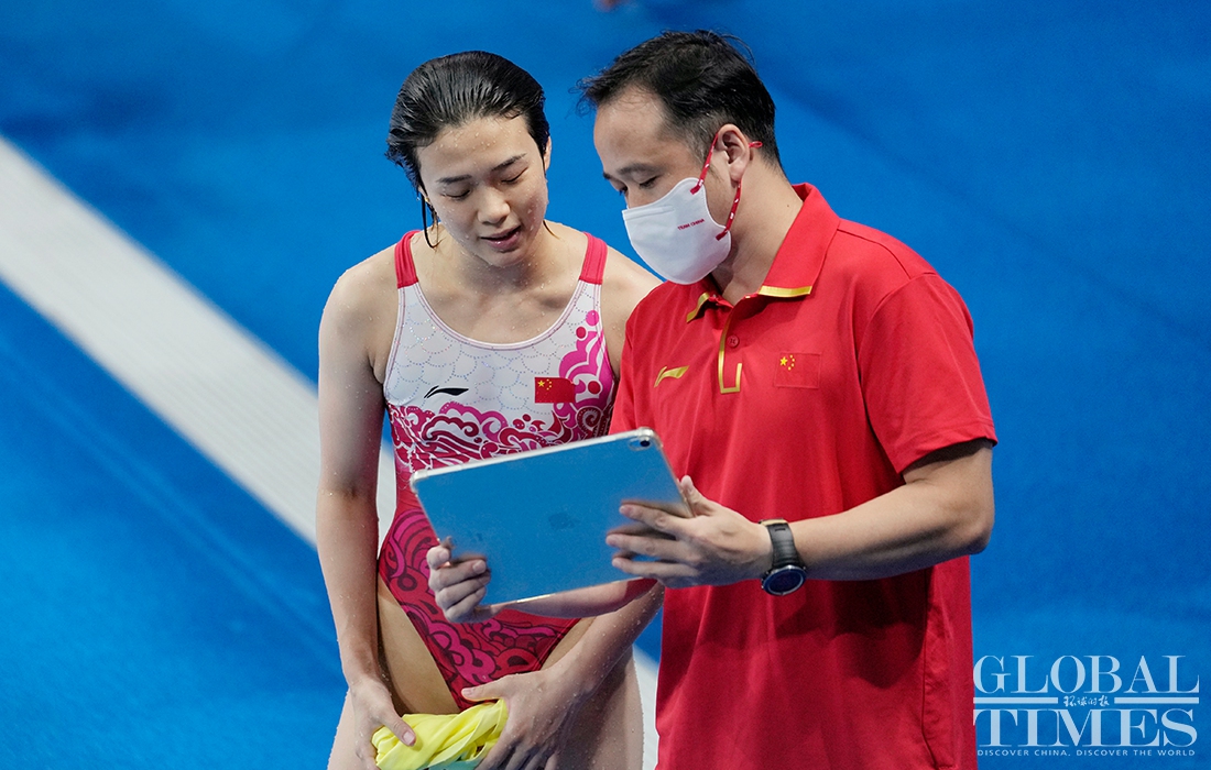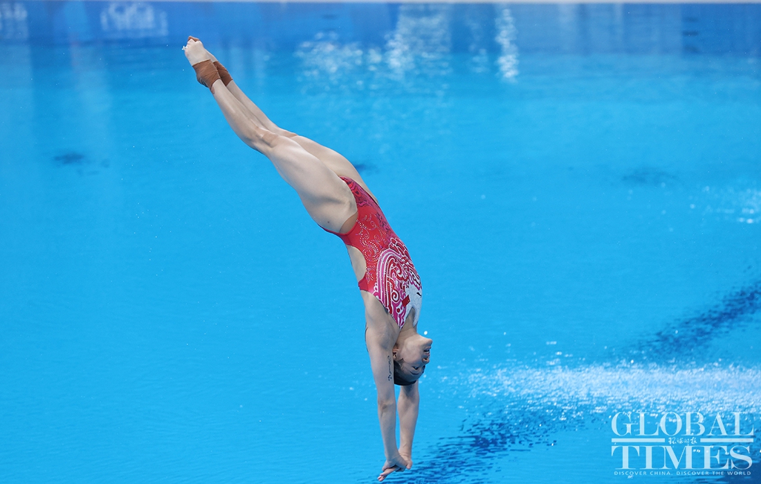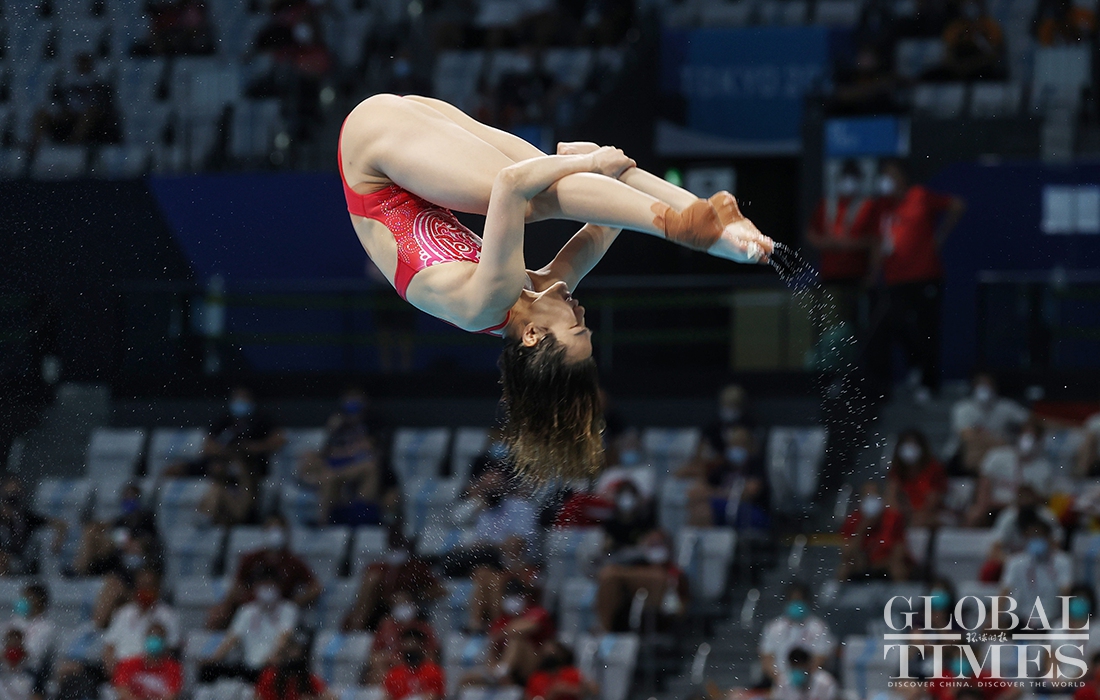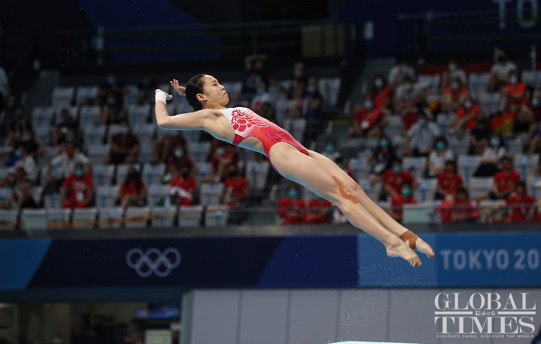 China's Shi Tingmao outperformed her teammate Wang Han to win the champion in women's 3m springboard, making it the 23rd gold medal for China at the Tokyo Olympics on Sunday. Wang claimed silver. Photos: Cui Meng/GT