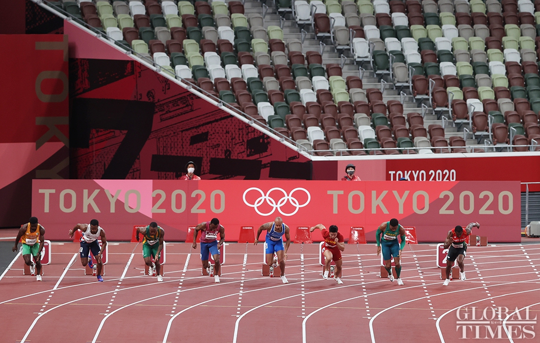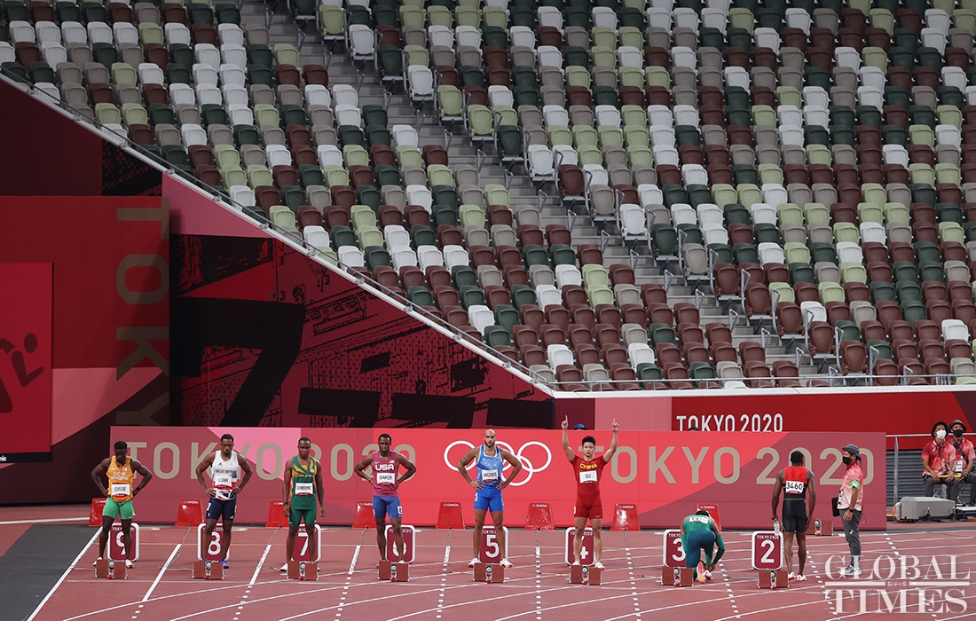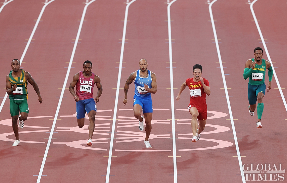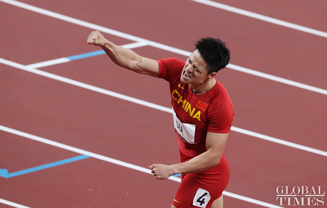 China’s veteran sprinter Su Bingtian qualified for the men’s 100 meters race final with a new Asian record of 9.83 seconds. Su is the only Asian athlete to feature in the athletics showpiece event at the Olympics.Photos: Cui Meng/GT