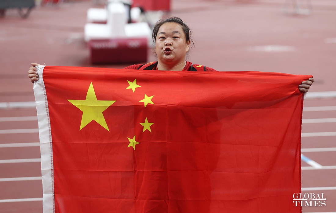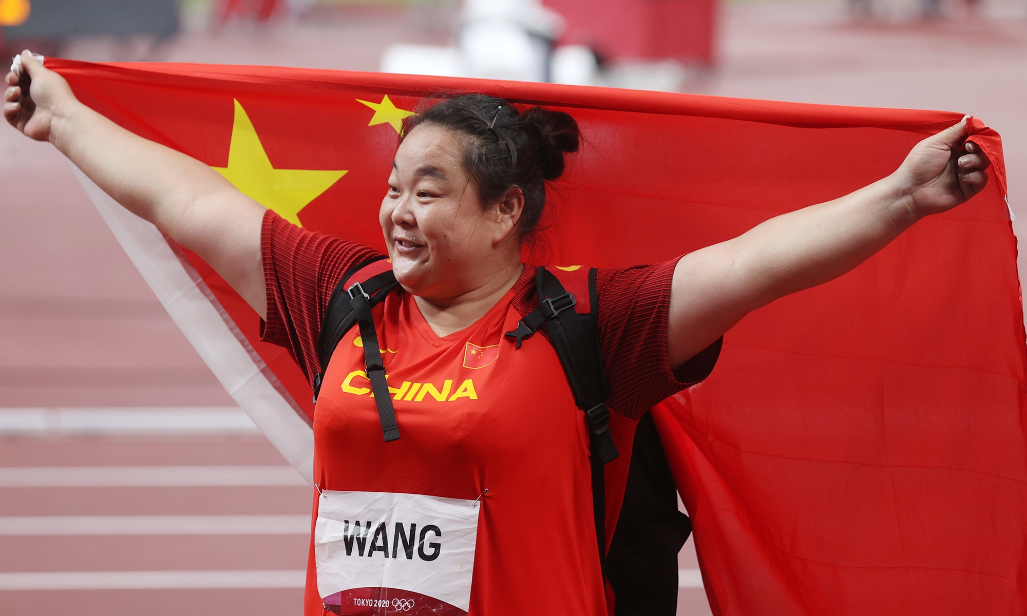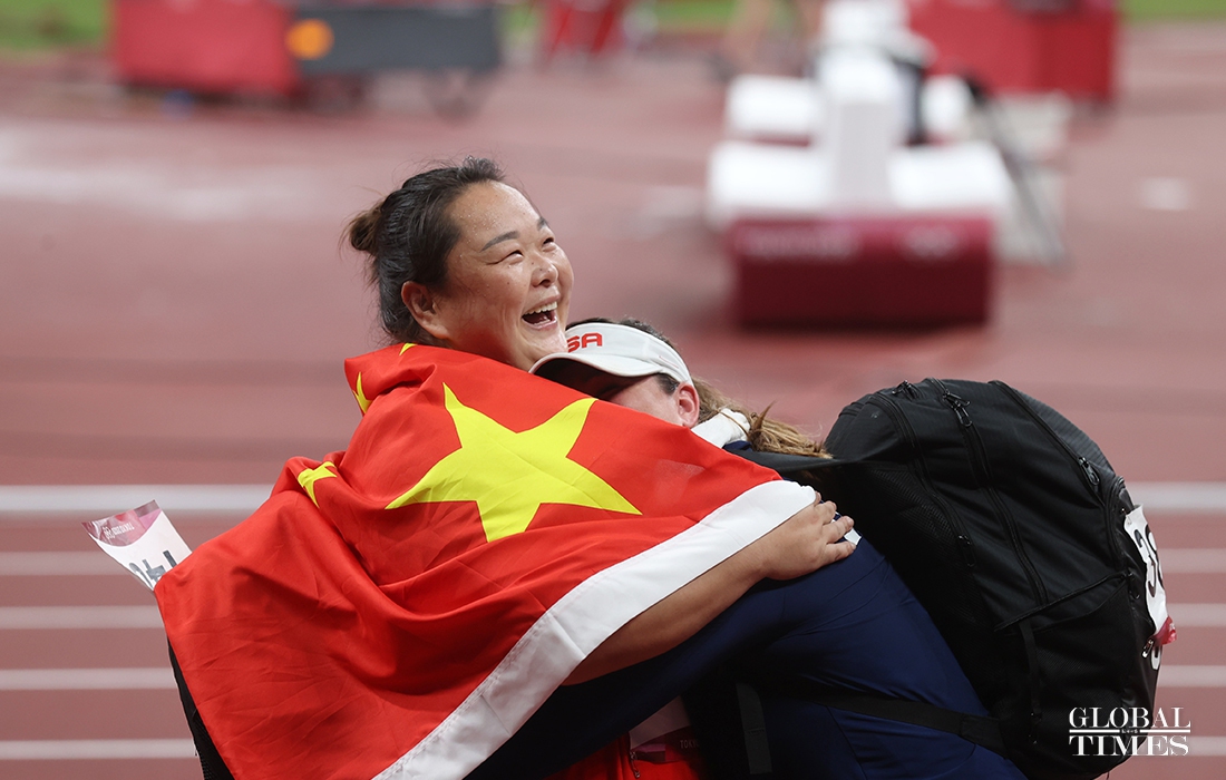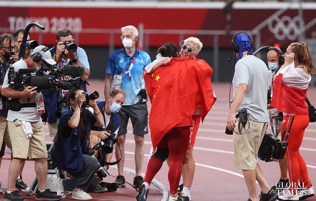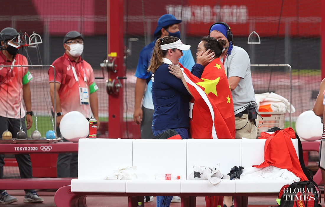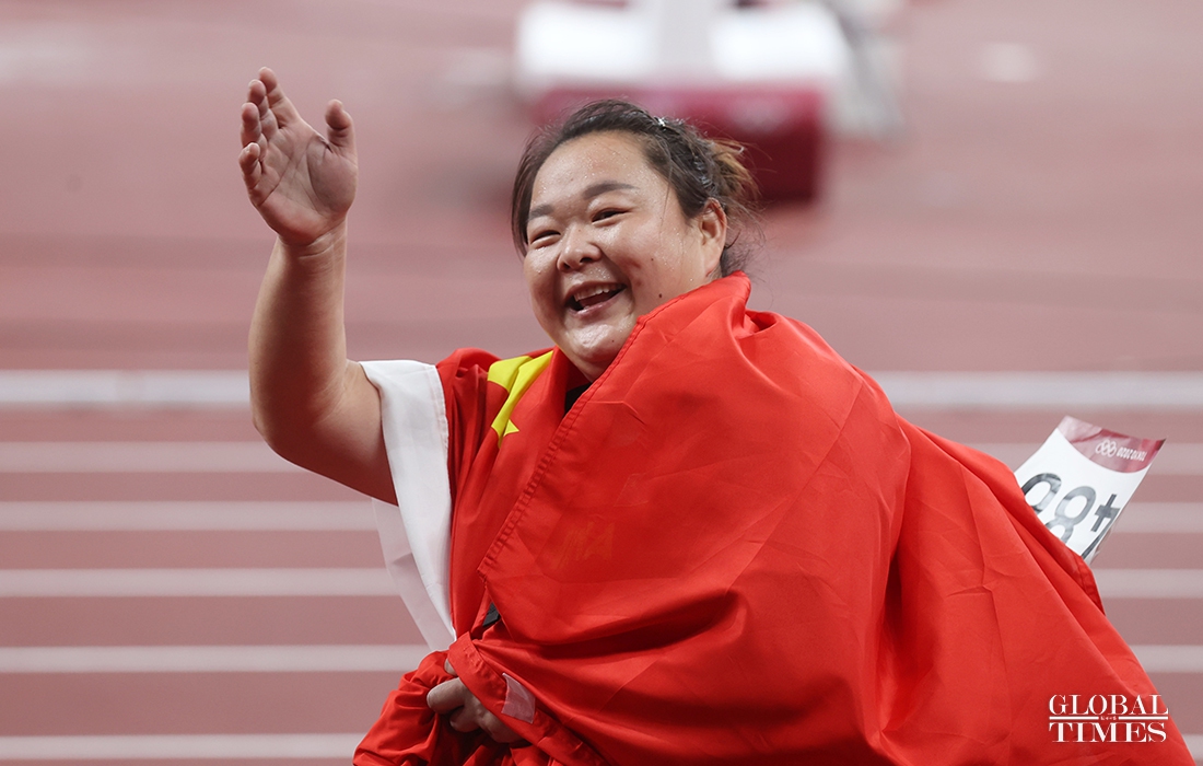 China's Wang Zheng recorded a personal best in the women’s hammer throw with a personal best 77.03 meters, bagging a silver medal for China. Photo: Cui Meng/Global Times figcaption >