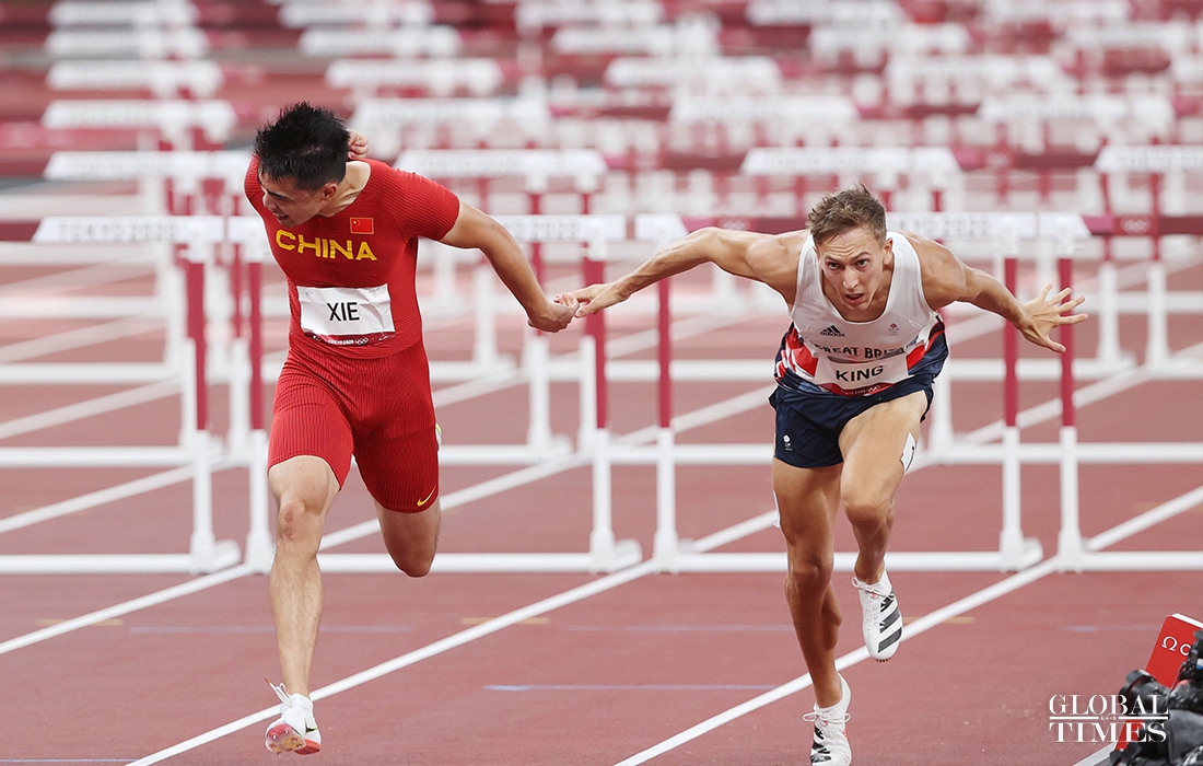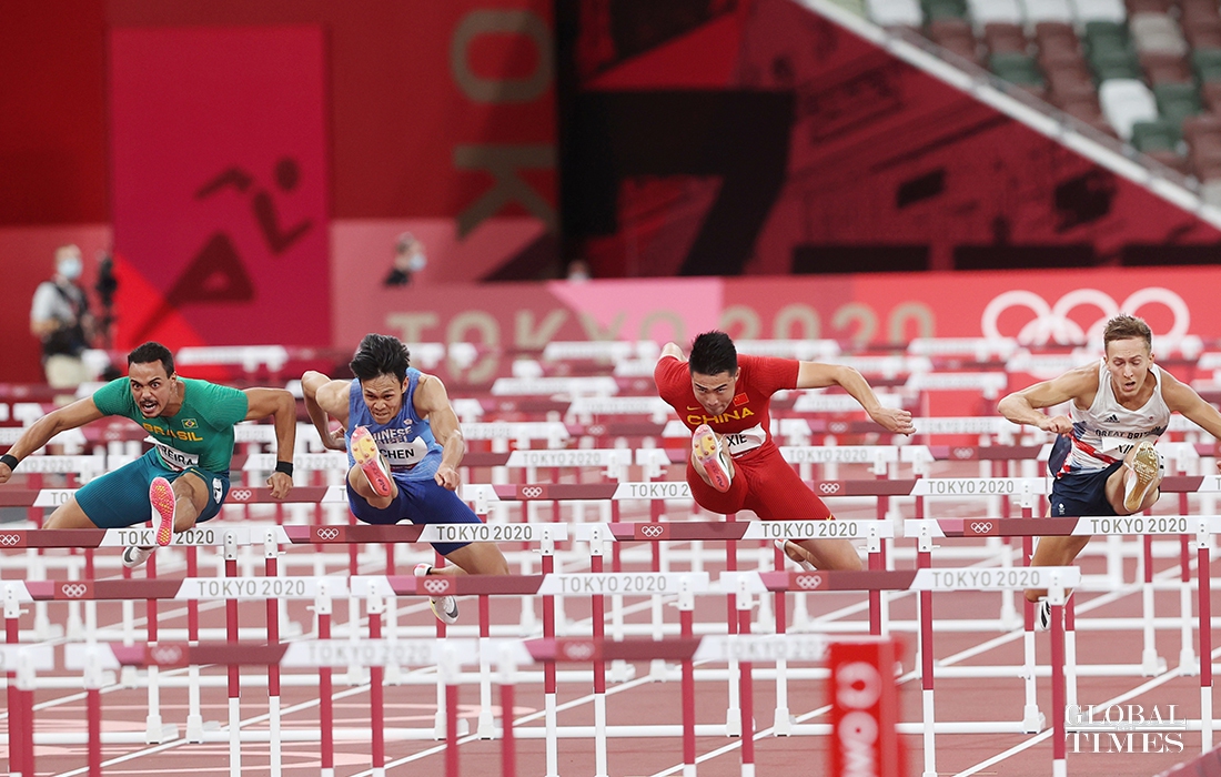 China's veteran hurdler Xie Wenjun qualified for the men's 110m hurdles semifinals with 13.51 seconds. Photo: Cui Meng/Global Times figcaption >