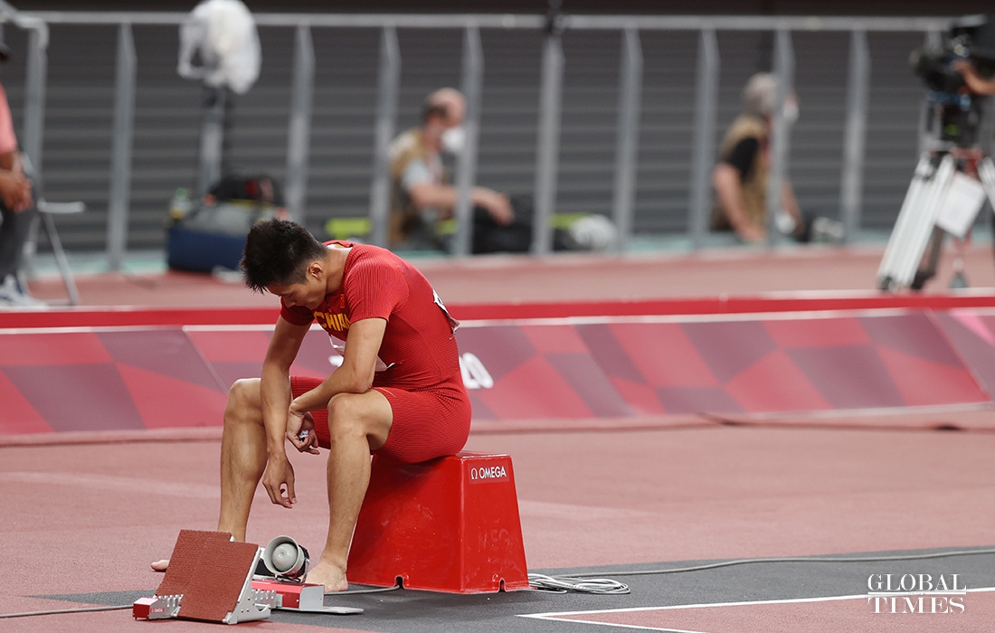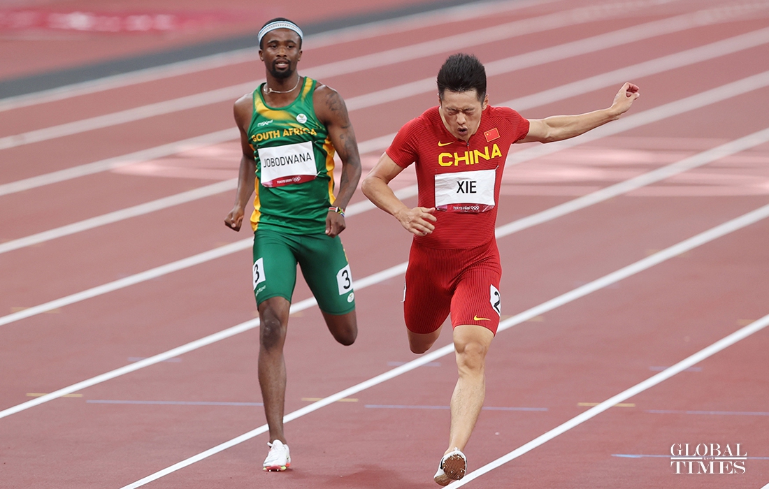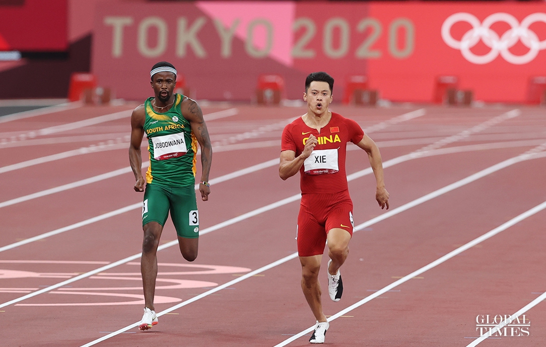 China's sprinter Xie Zhenye finished the men's 200m with 20.45 seconds in the semifinals. Though Xie failed to qualify for the final, his result is already the best for a Chinese athlete in this discipline. Photo: Cui Meng/Global Times figcaption >