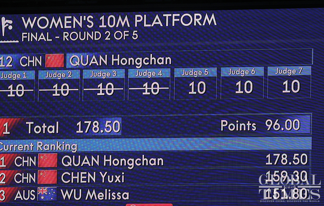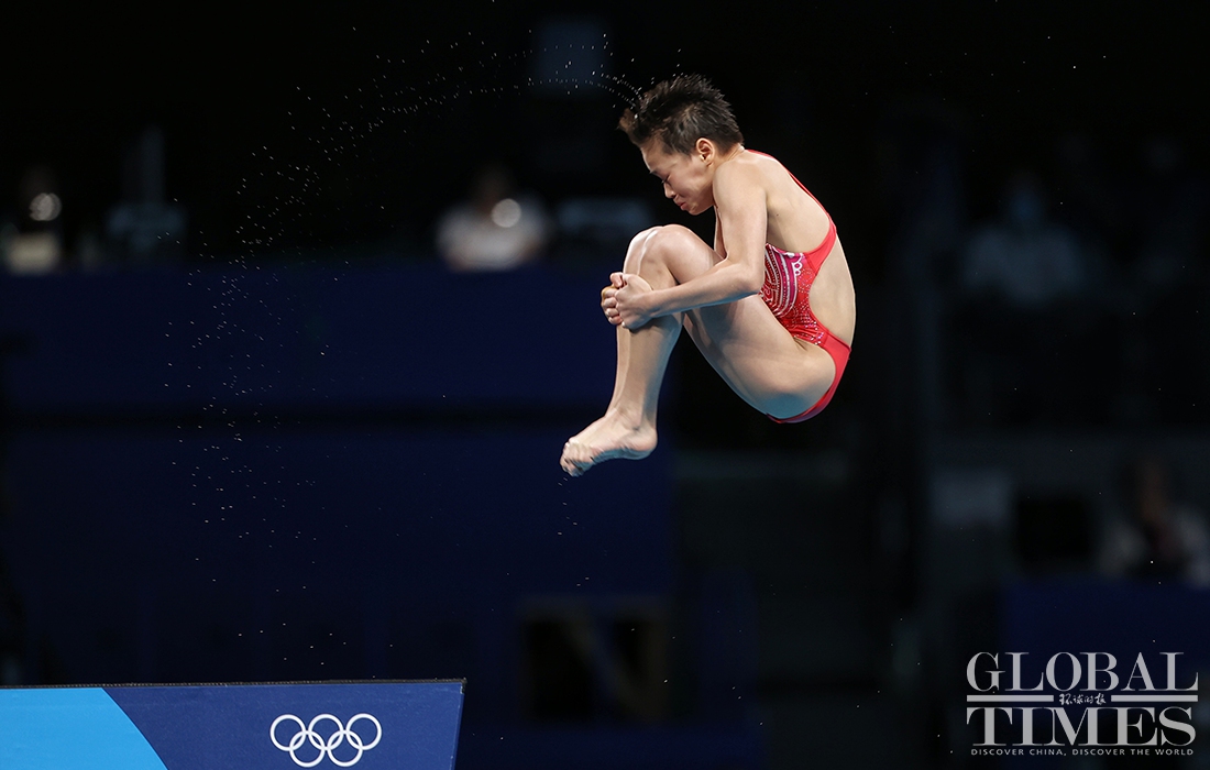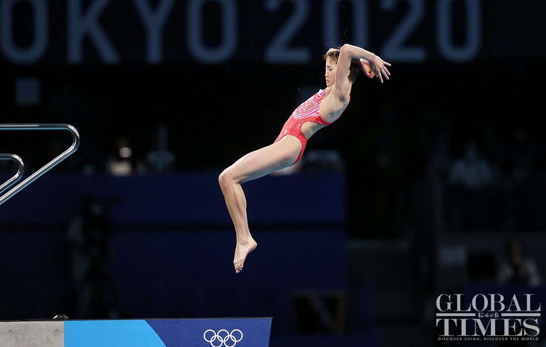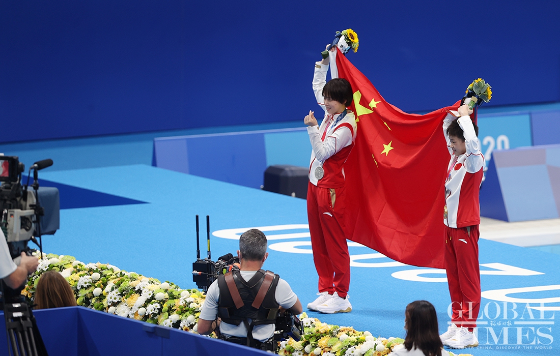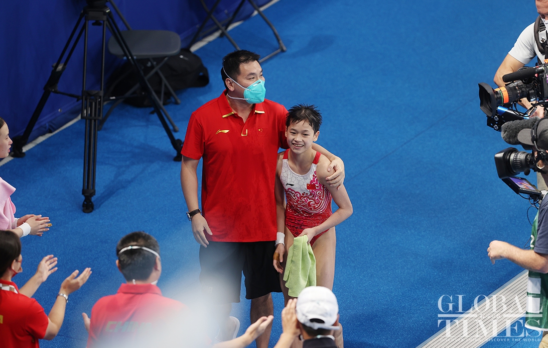 China's 14-year-old genius diver Quan Hongchan and her teammate Chen Yuxi clinch gold and silver medals in women’s 10m platform at Tokyo Olympics. (Photos: Cui Meng/GT)