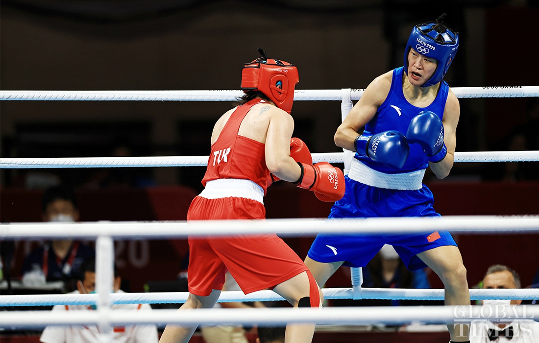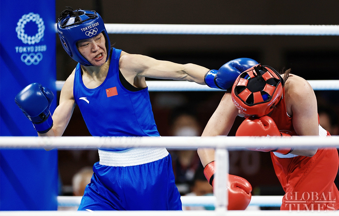 Chinese boxer Gu Hong wins silver medal in women's welterweight Photo:Cui Meng/GT figcaption >