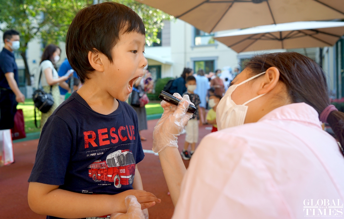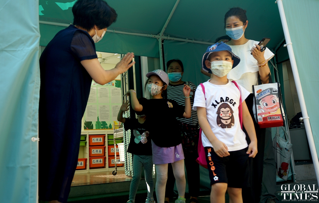 All teachers and students need to undergo 14-day health monitoring before entering school on Wednesday. (Photos: Chen Xia/Global Times)