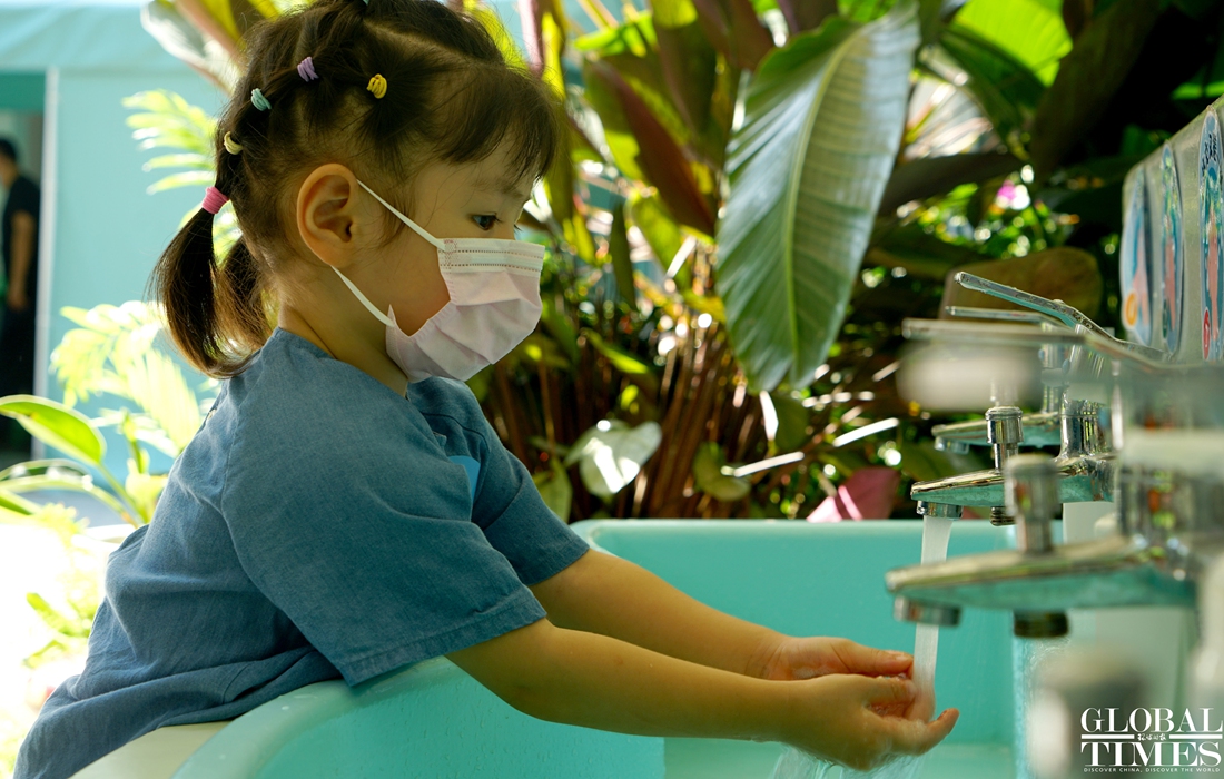 Faculty members from the China Welfare Institute Nursery kindergarten started preparing for the school day several days ago. They welcomed students at the school gate and asked young children to wash their hands and took other preventive measures such as checking temperature and health codes before entering the campus.