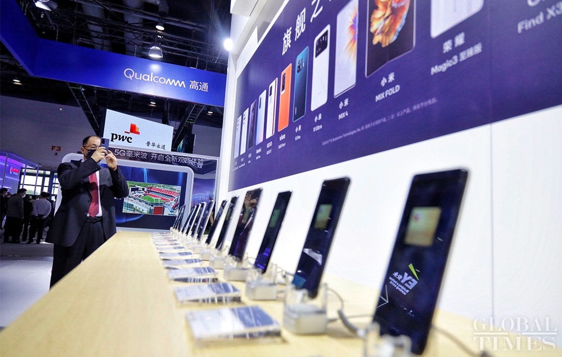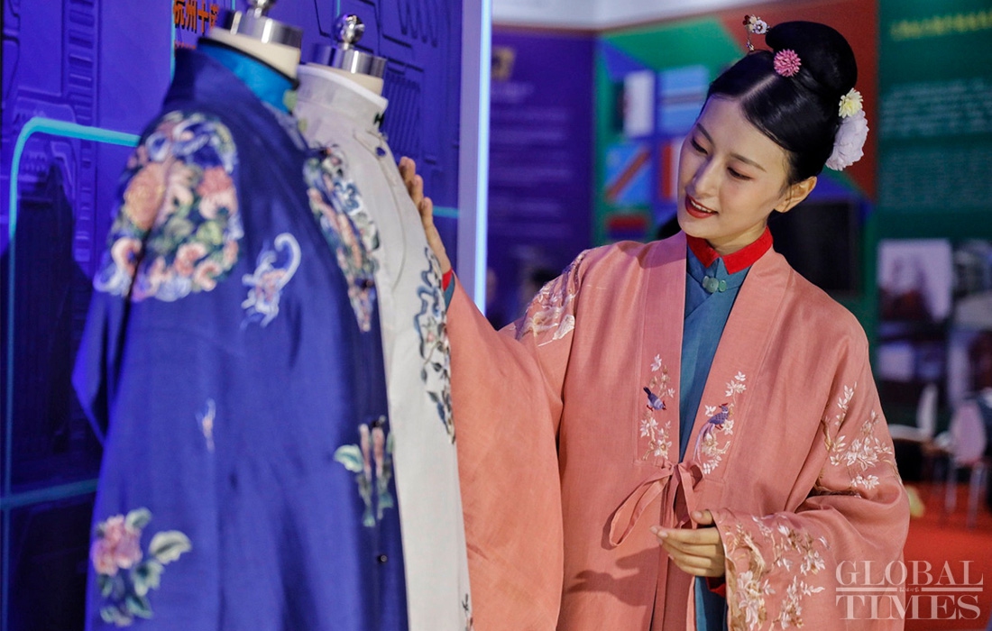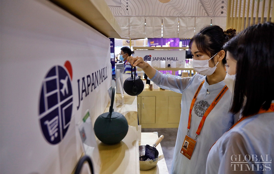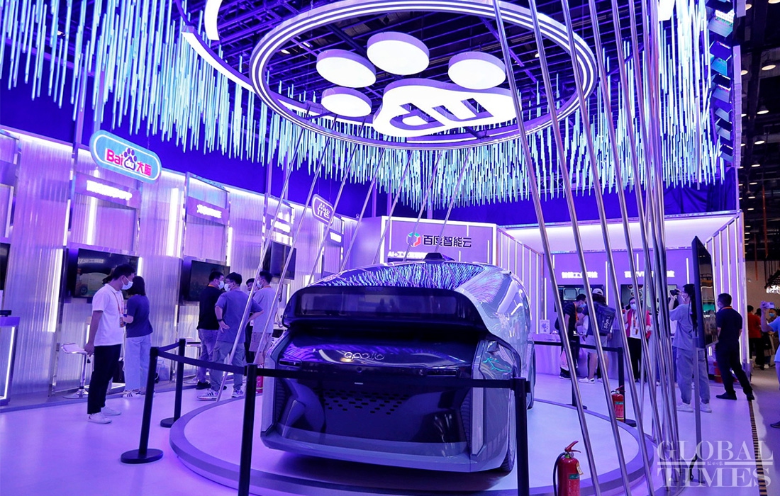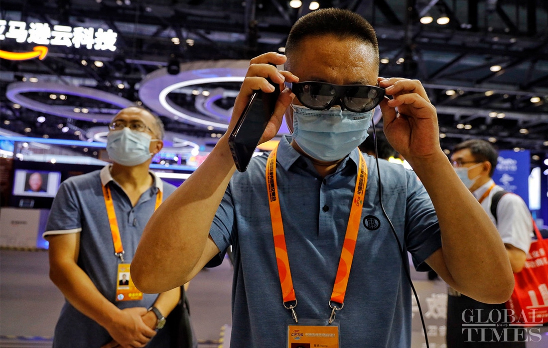 The spacious exhibition hall was filled with stalls where a variety of new achievements in service trade are being showcased, including 5G, artificial intelligence, extended reality and so on.