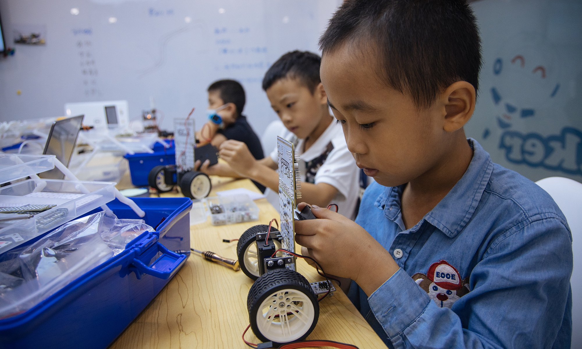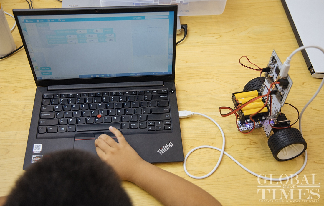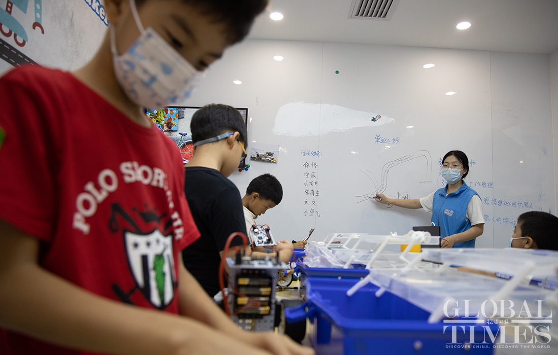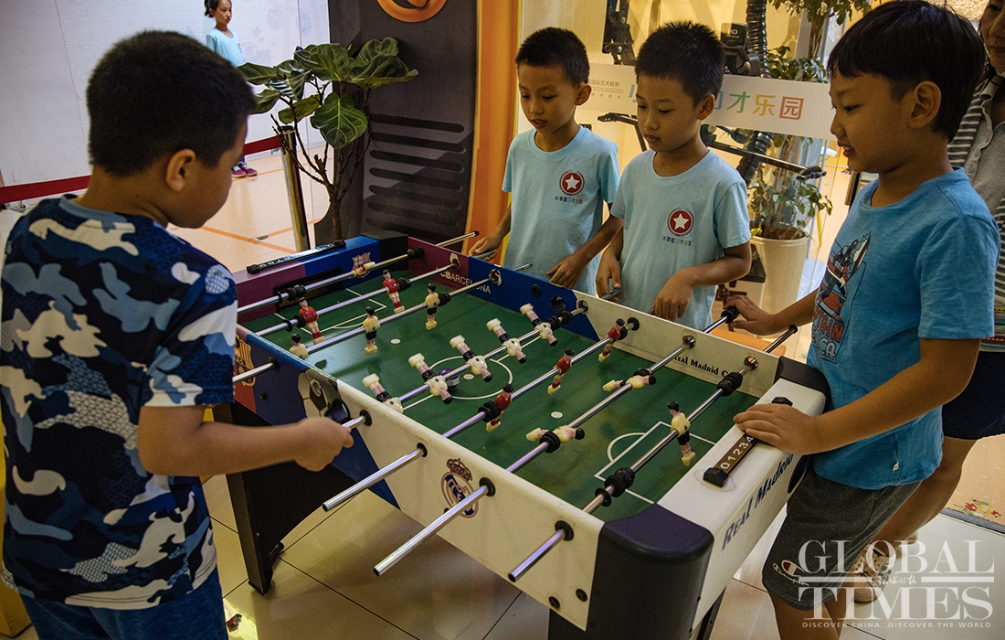Off-campus hobby programs, such as sports training sessions for football and basketball and computer science classes such as robotic programming have become popular among school children as China’s authorities step up efforts to cut their excessive homework and after-school tutoring. Photos: Li Hao/GT