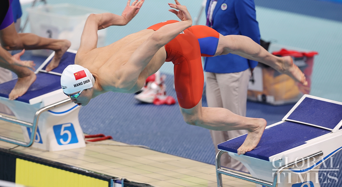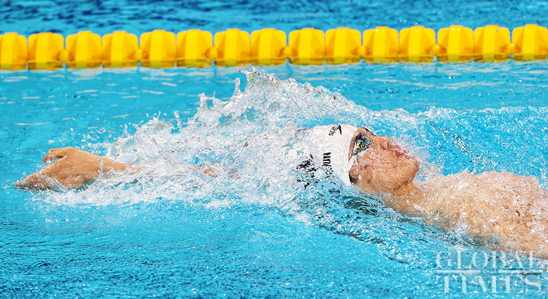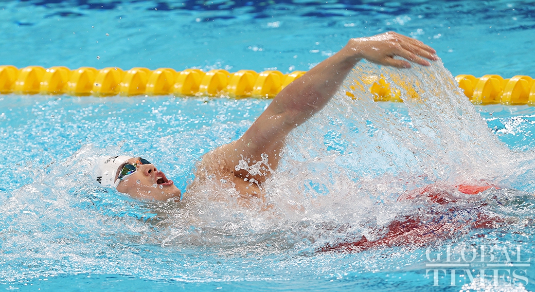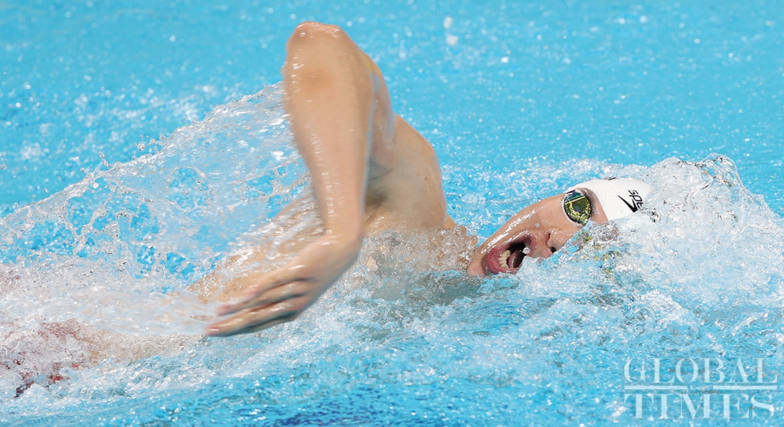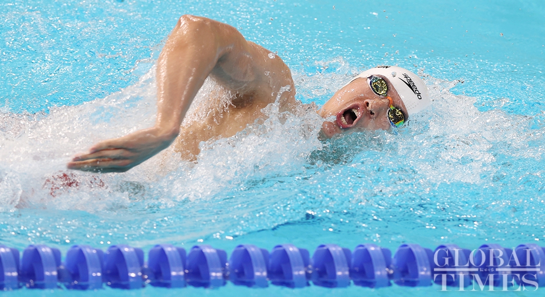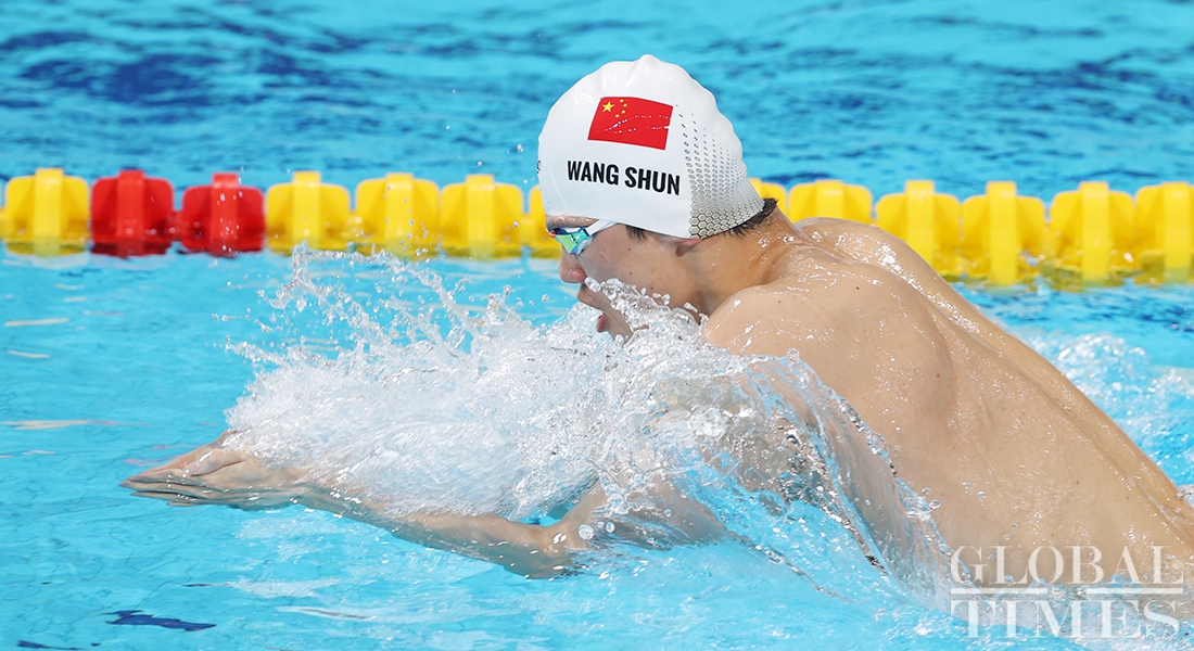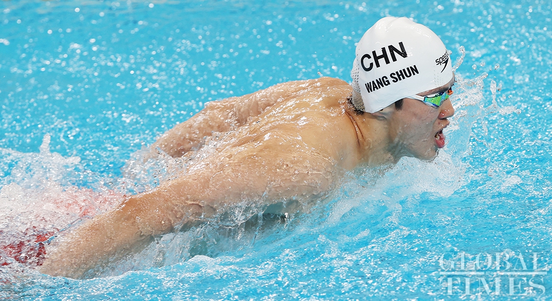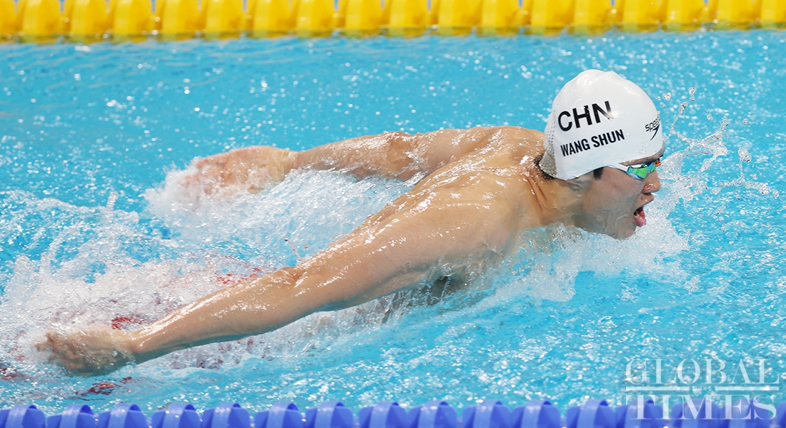 Chinese swimmer Wang Shun won gold in the men's 400m individual medley at the 14th National Games of China for the third consecutive time on Sunday in Xi'an, Northwest China's Shaanxi Province. (Photos: Cui Meng/GT)