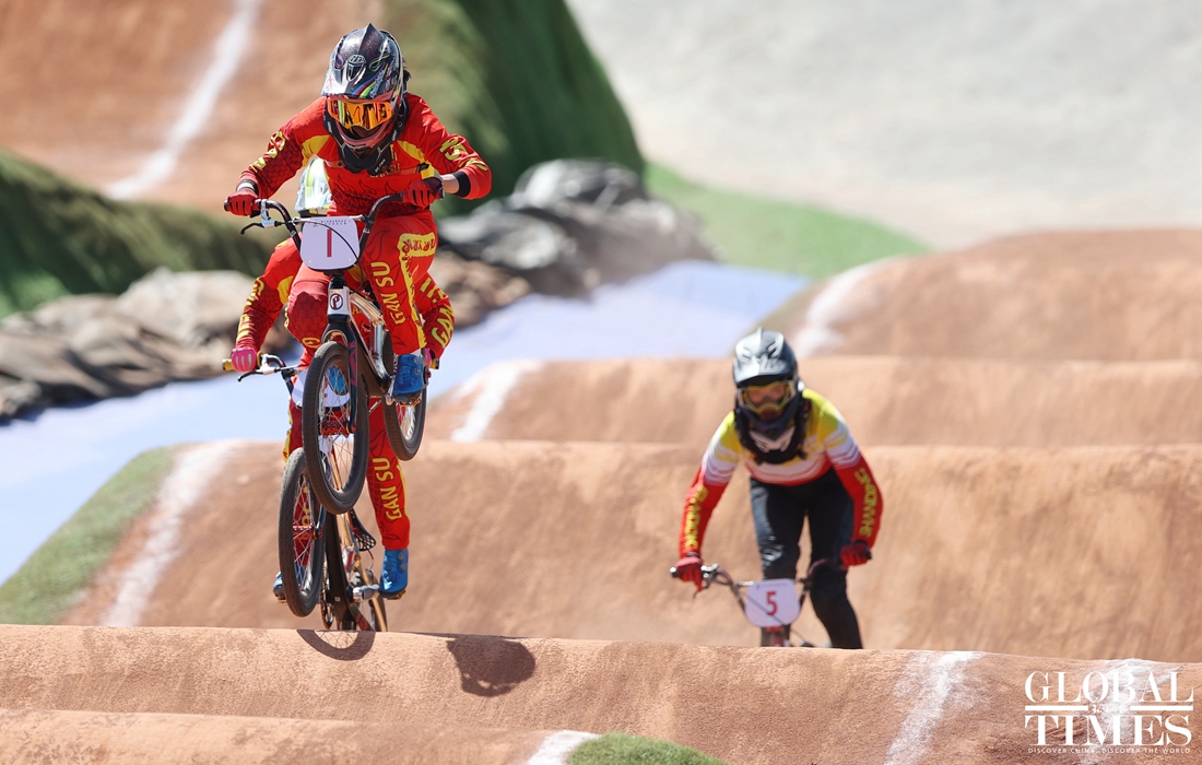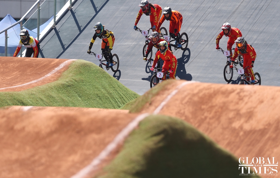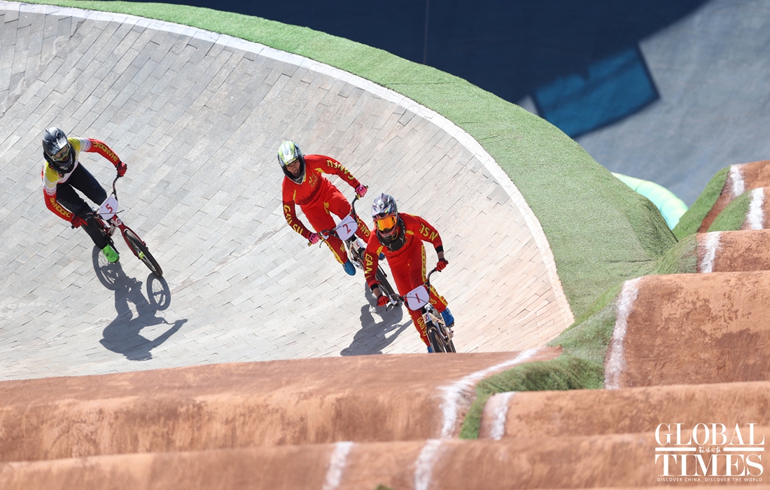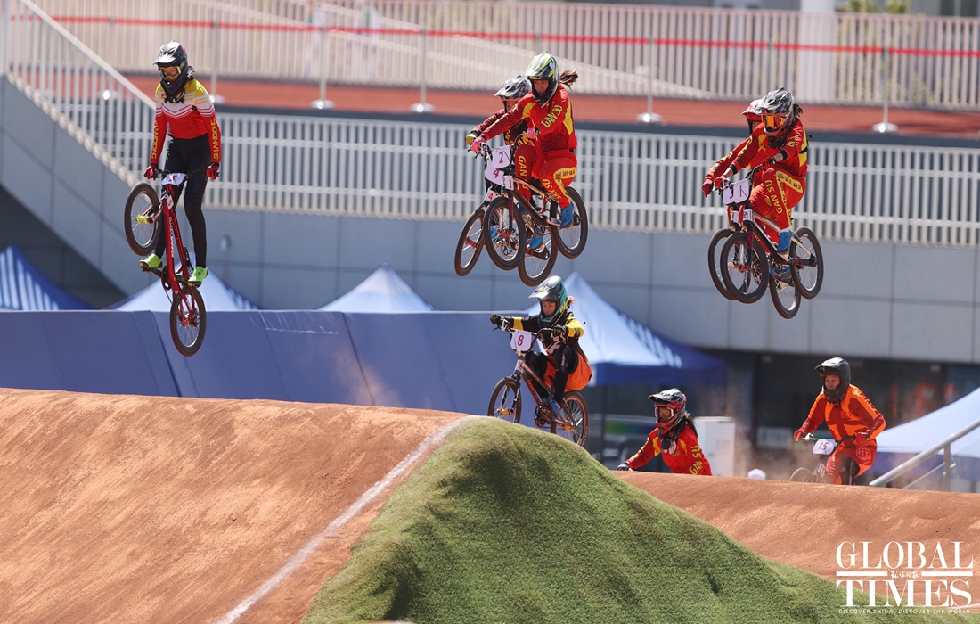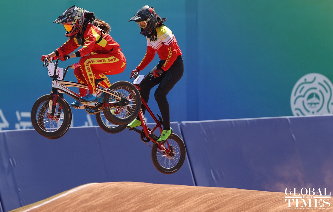 Team Gansu bag both gold and silver medals in the women's BMX racing in 14th National Games of China