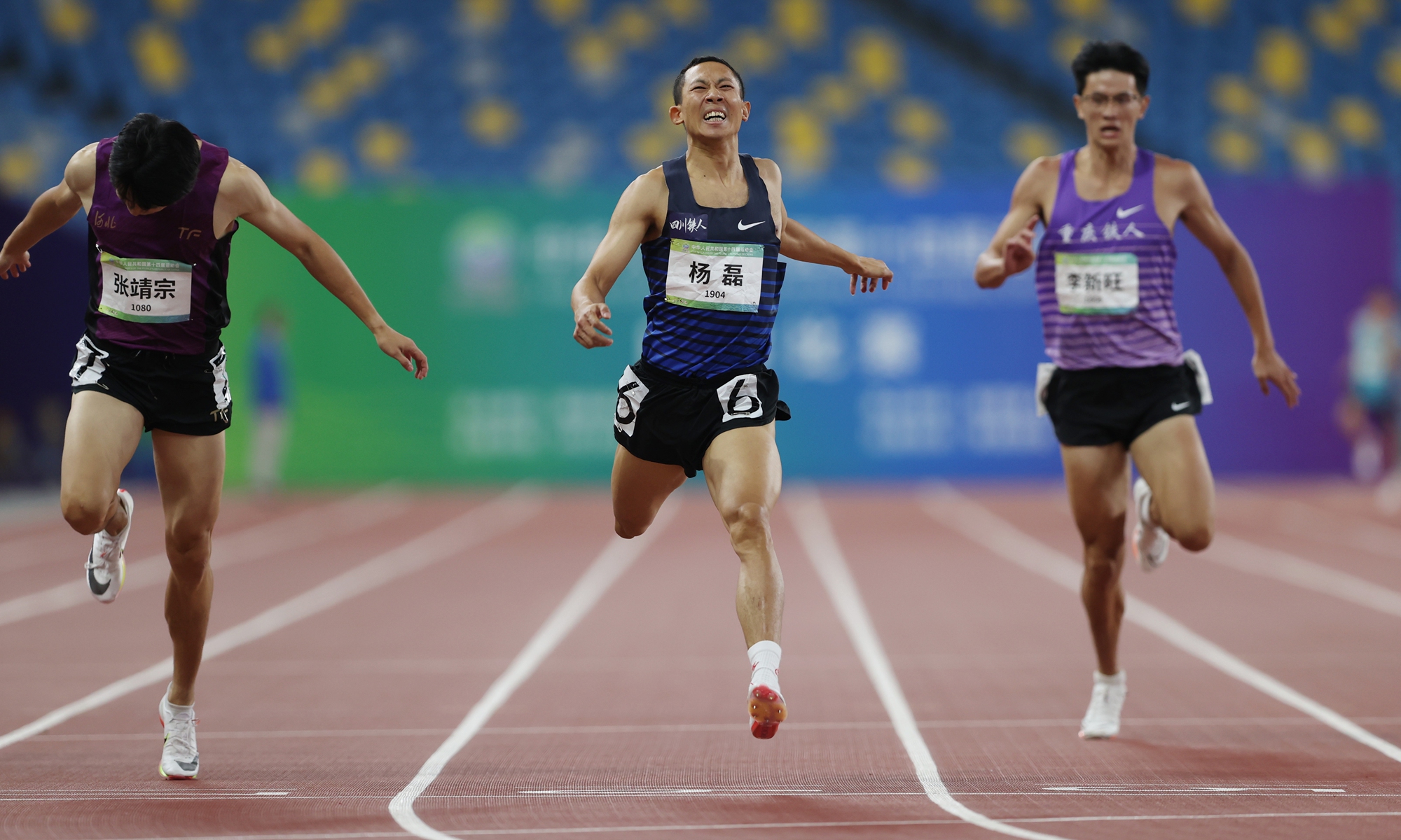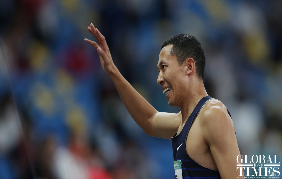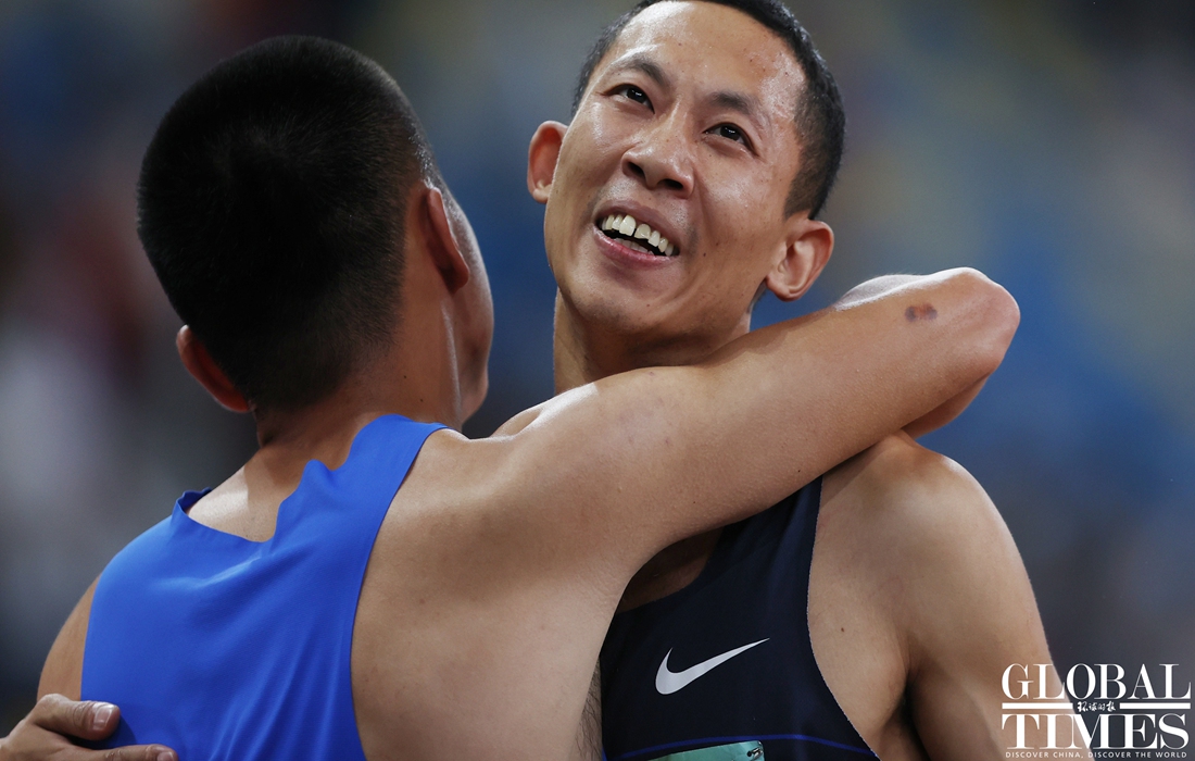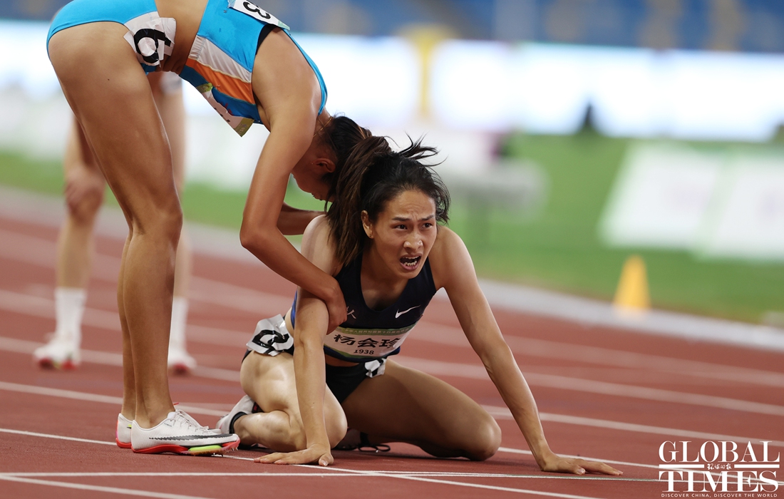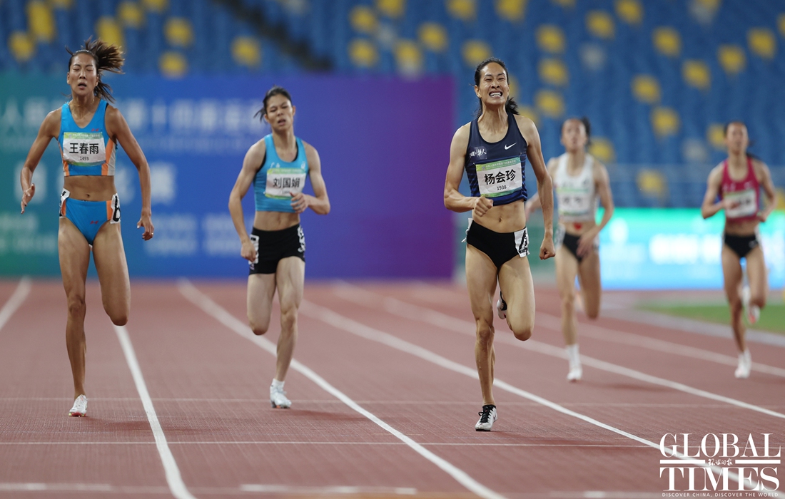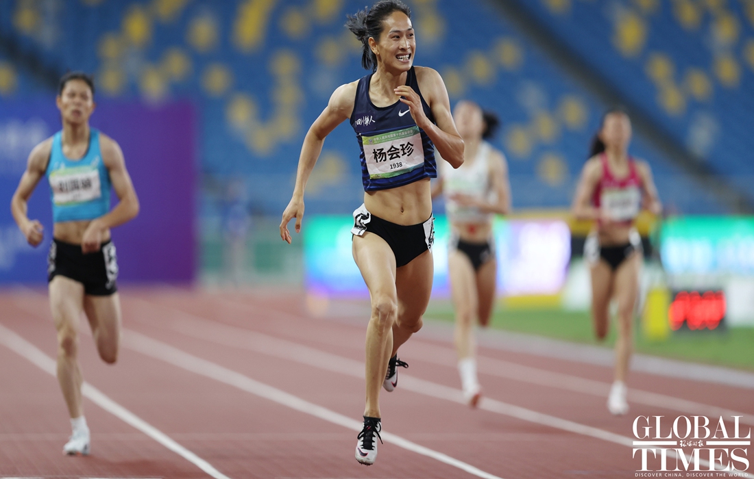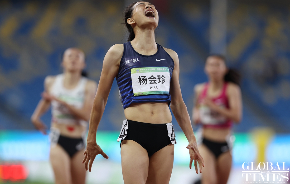 On Tuesday, Team Sichuan's Yang Huizhen won the gold medal on the track and field women's 400m final while Yang Lei, also from Sichuan, led the podium in the men’s 400m final at the 14th National Games of China in Xi'an, Northwest China's Shaanxi Province. (Photos: Cui Meng/GT)