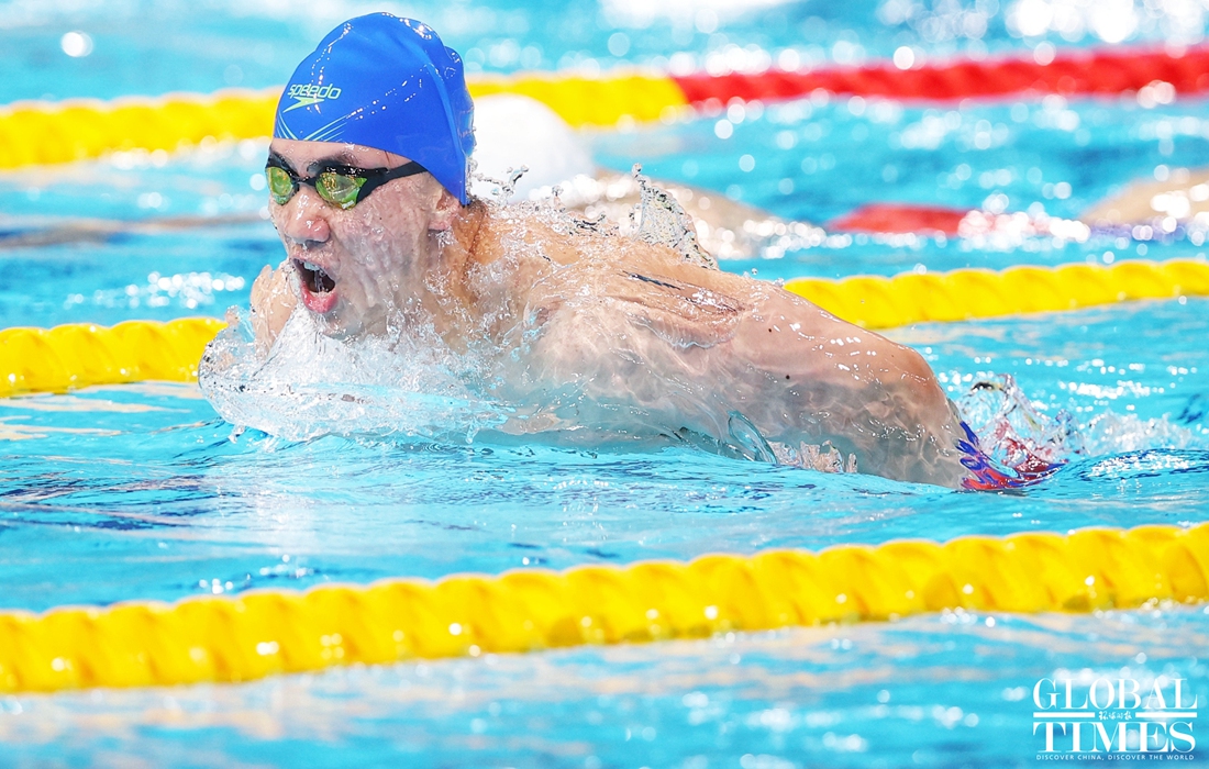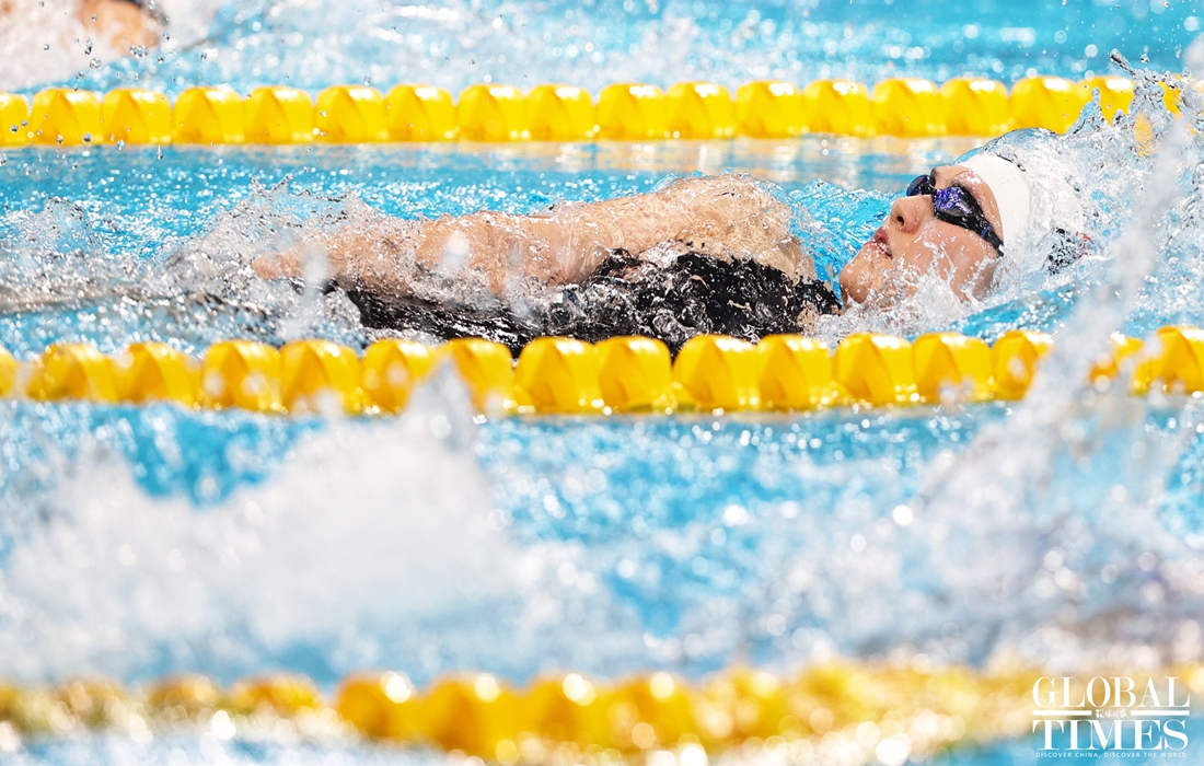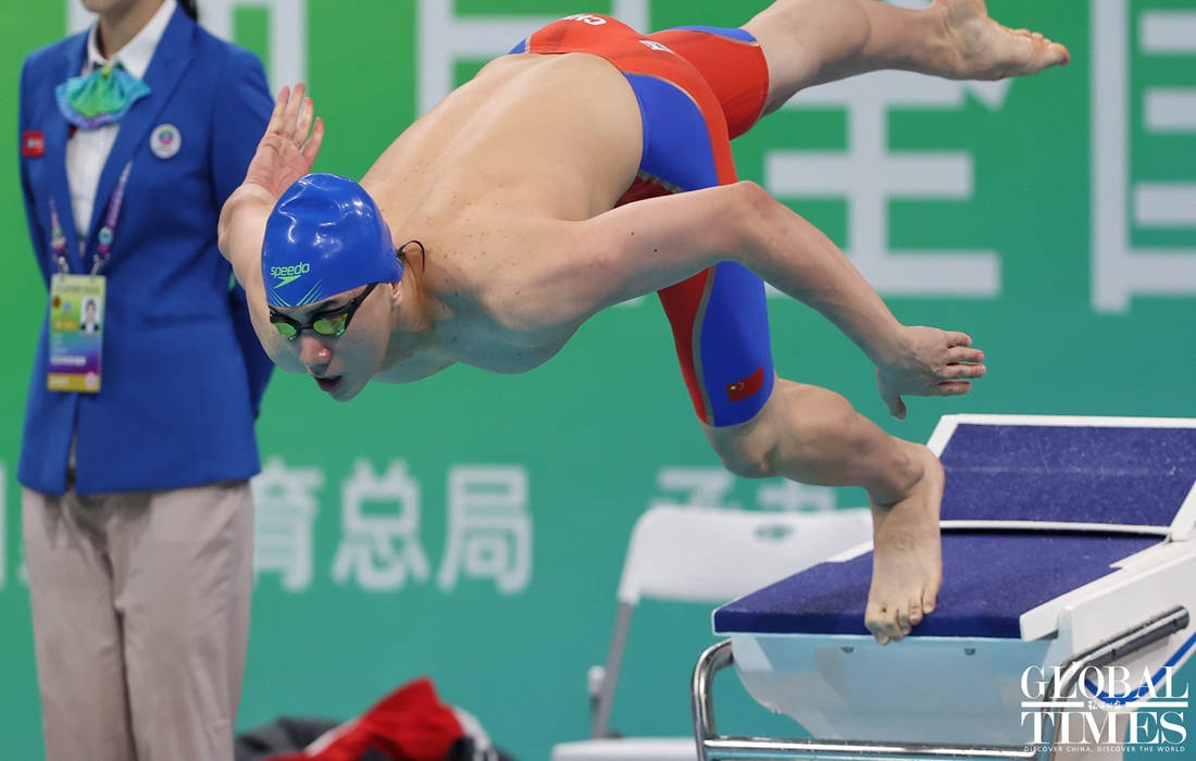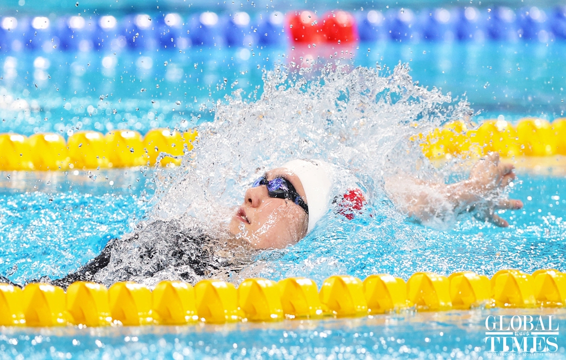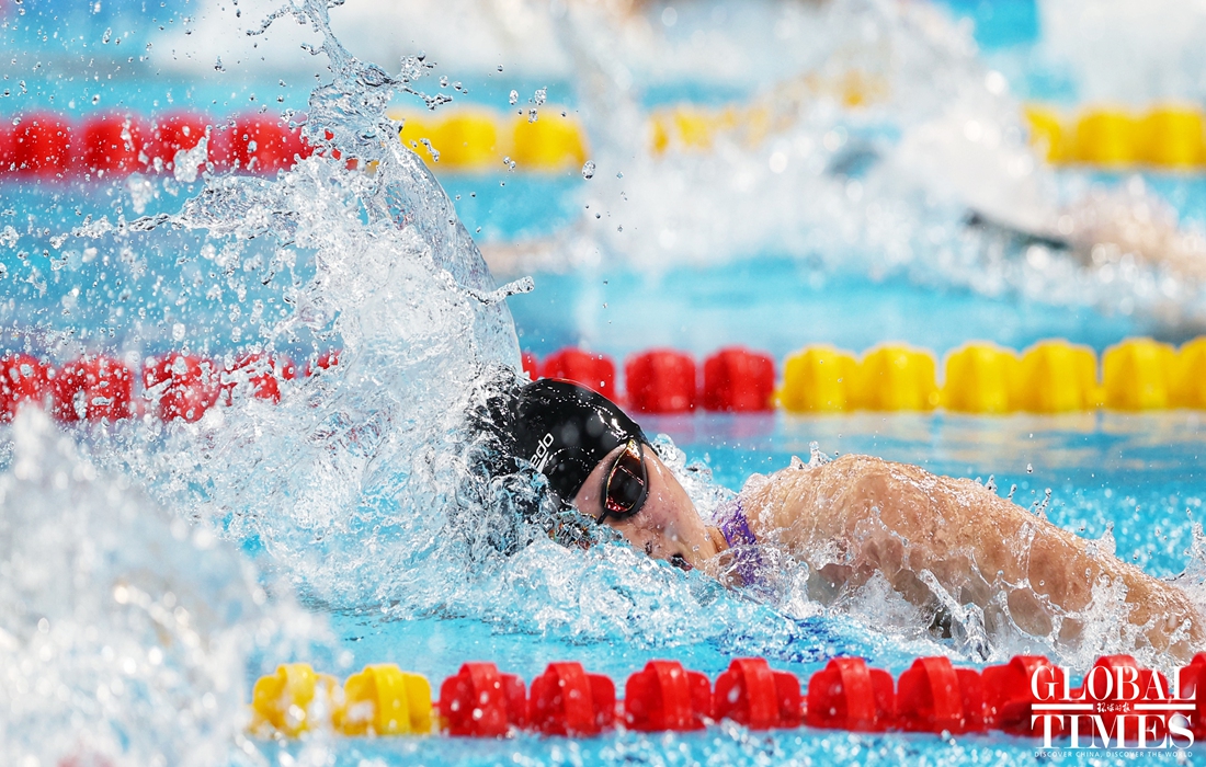 On Wednesday, Yu Yiting won the gold medal in the women’s swimming 200m individual medley final while veteran Ye Shiwen bagged the silver at the 14th National Games in Xi’an. In the women's swimming 200m freestyle final, Tang Muhan won the gold medal with a new China’s national record. In the men’s swimming 200m butterfly final, Chen Jun’er from Guangdong team led the podium. (Photos: Cui Meng/GT)