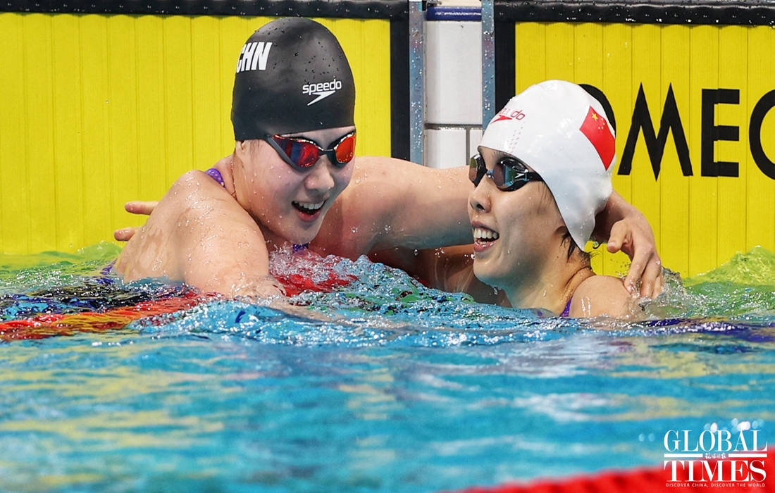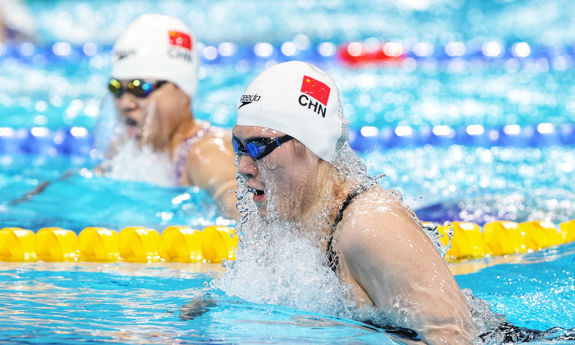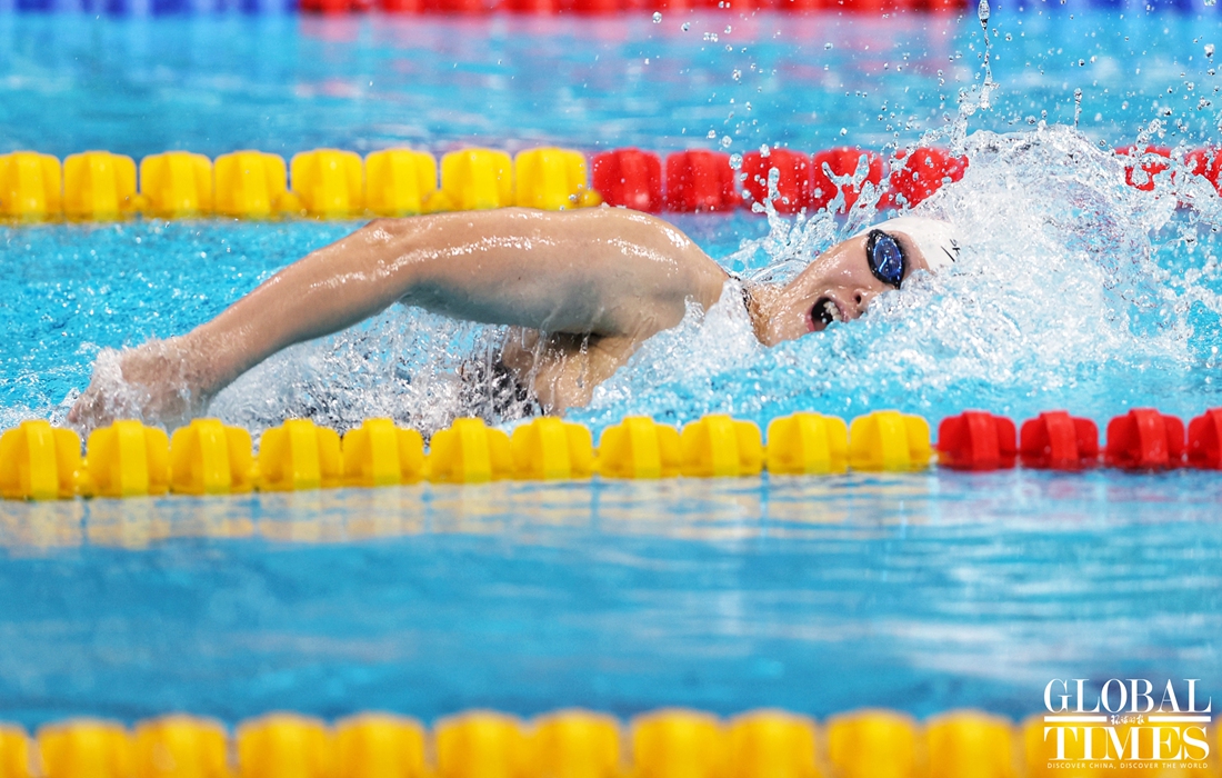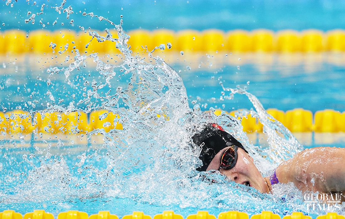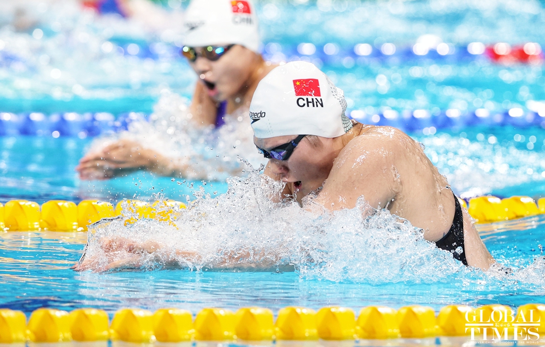 On Wednesday, Yu Yiting won the gold medal in the women’s swimming 200m individual medley final while veteran Ye Shiwen bagged the silver at the 14th National Games in Xi’an. In the women's swimming 200m freestyle final, Tang Muhan won the gold medal with a new China’s national record. In the men’s swimming 200m butterfly final, Chen Jun’er from Guangdong team led the podium. (Photos: Cui Meng/GT)