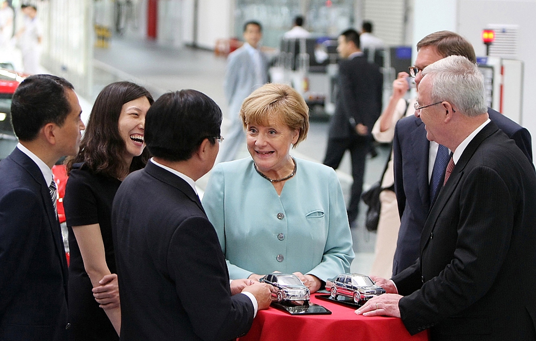 German Chancellor Angela Merkel visits the FAW-Volkswagen plant in Chengdu, Southwest China’s Sichuan Province on July 6, 2014. Photo:CFP figcaption >