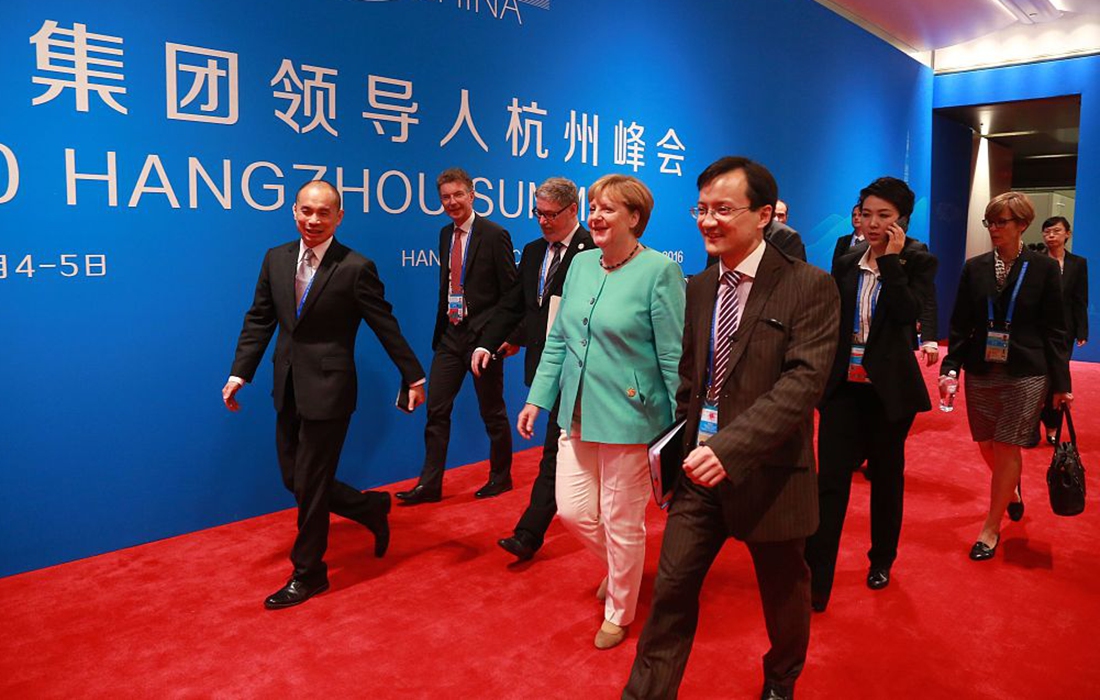 German Chancellor Angela Merkel attends the opening ceremony of the G20 Summit in Hangzhou, East China’s Zhejiang Province on September 4, 2016. Photo: CFP figcaption >