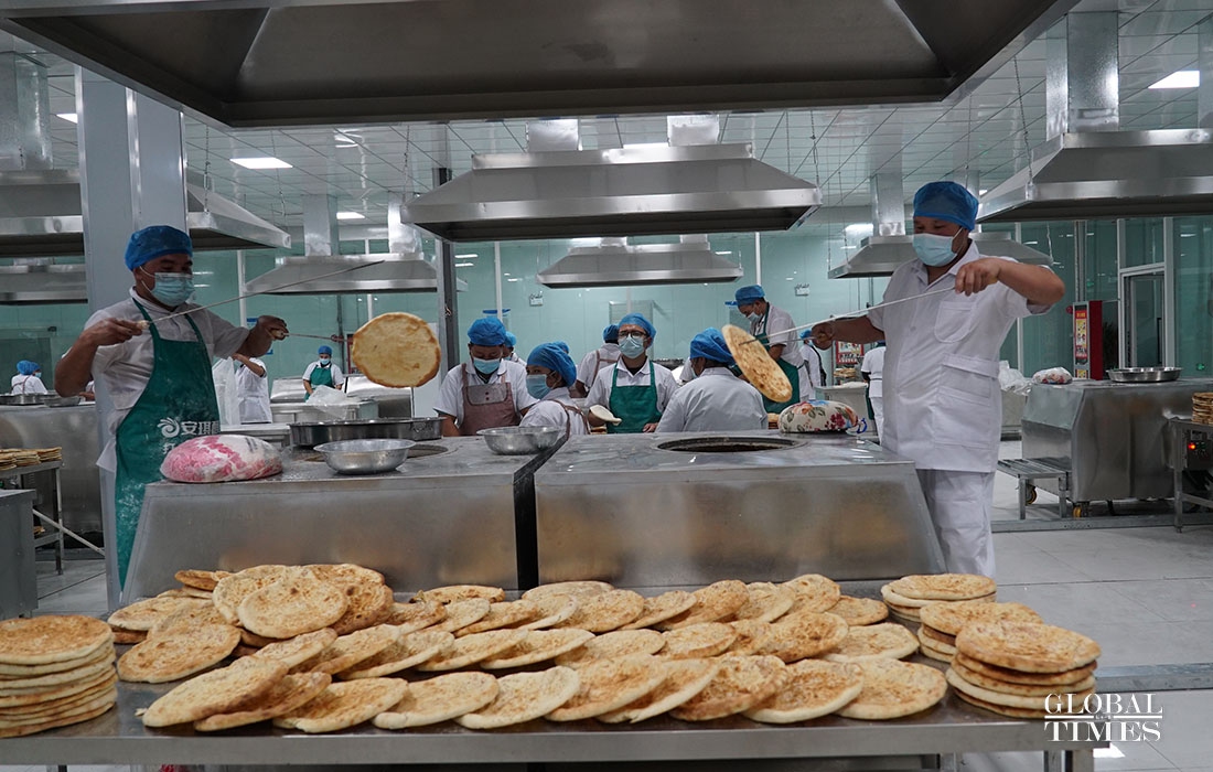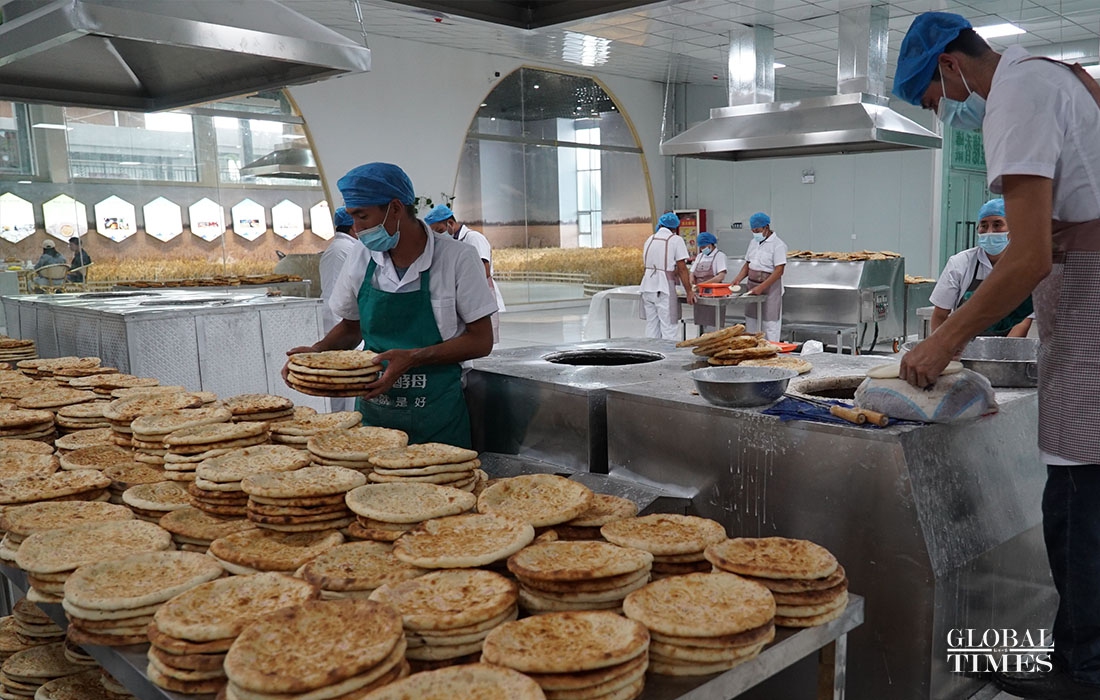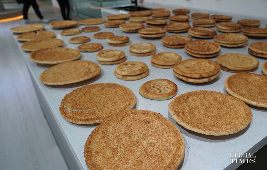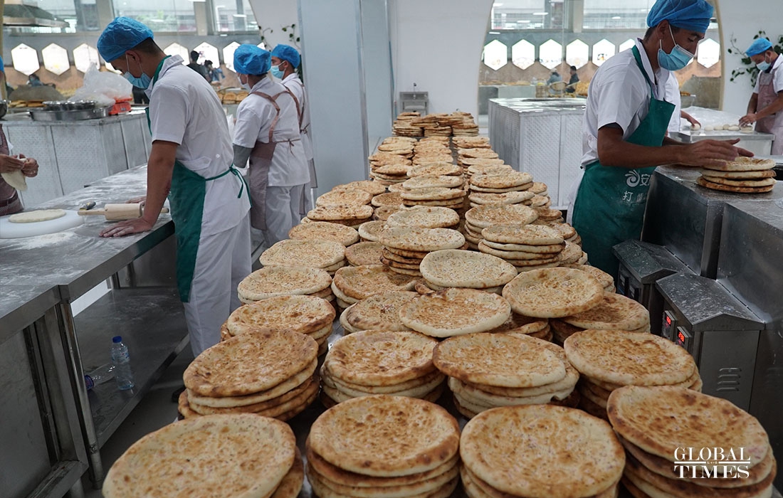 The Nang park in Hotan County, Xinjiang, has an area of 3,400 square meters. They can produce 50,000 Nangs a day and create 200 jobs for locals. The industry park relies on high-quality raw material, the industry's tradition and distinctive local culture to produce high-quality Nang and develop tourism. The industry has built its unique brand. (Photos: Jin Jianyu/Global Times)