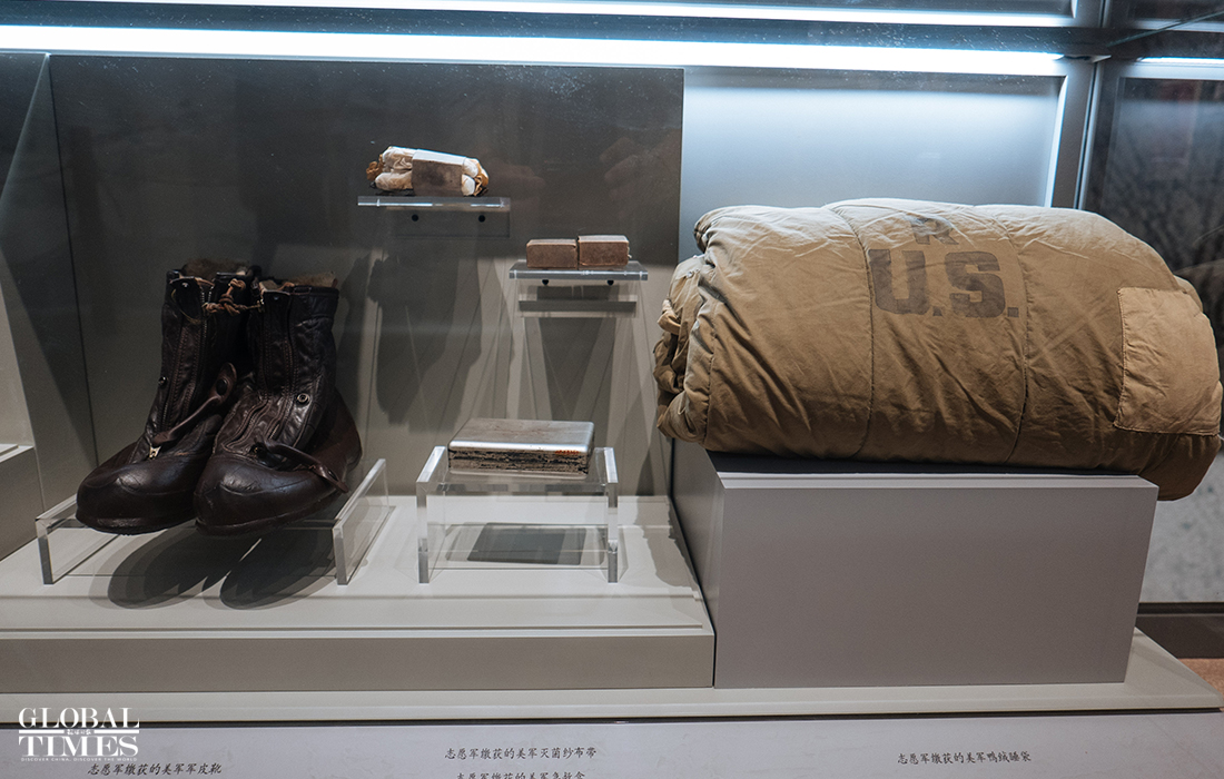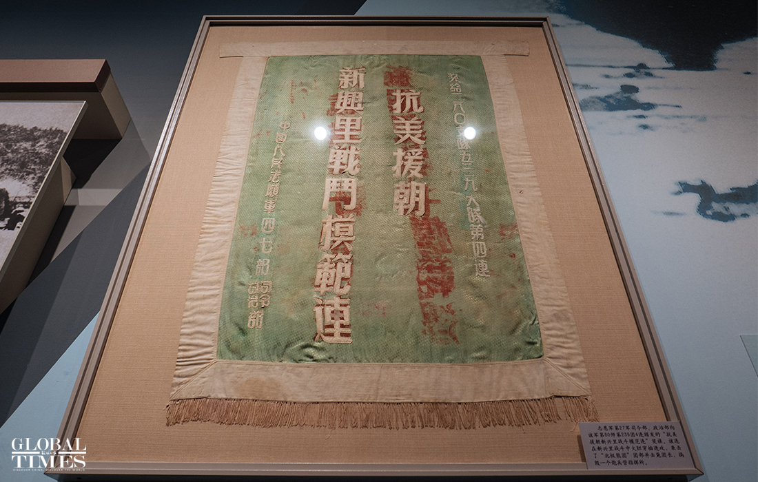 A large number of seized US military spoils are on display in the exhibition. In particular, an RCT-31 flag that was captured by a Chinese People's Volunteers (CPV) company who defeated the command center of the US army's Regimental Combat Team 31 (RCT-31, also known as Task Force Maclean) was on display recently. Photos: Li Hao/GT
