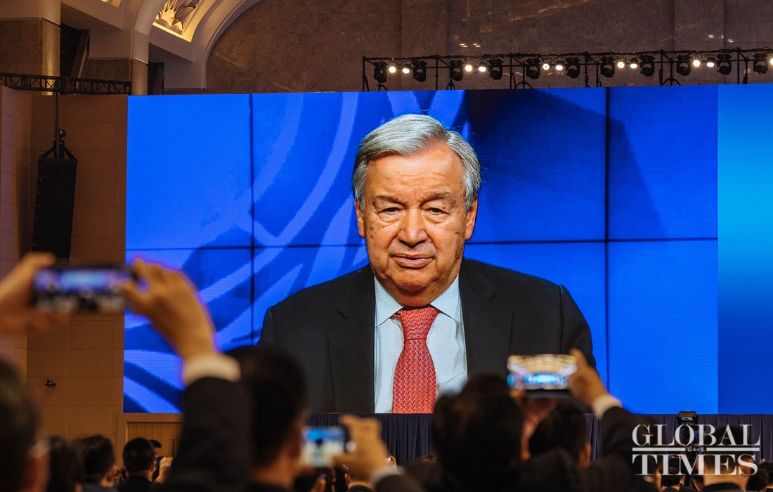 Chinese President Xi Jinping delivered a keynote speech via video link at the summit, calling on countries around the world to join hands and start a new journey of high-quality development of humanity. Photos: Li Hao/GT