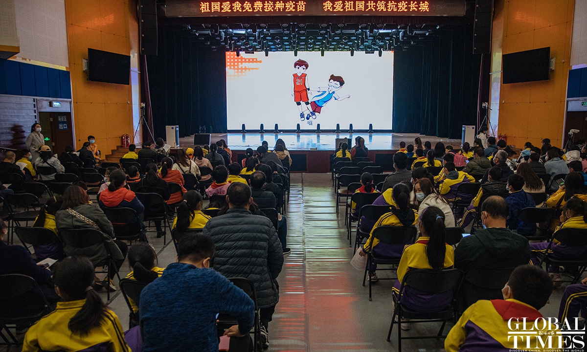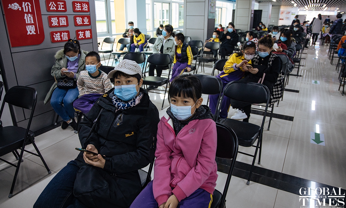 Children aged 3-11 in Shijingshan District of Beijing started to receive COVID-19 vaccines on Nov 1. Accompanied by their guardians, children took buses to the inoculation area and signed an informed consent form before being vaccinated. Nearly 600 children were vaccinated throughout the day. The first dose for all students in the district is expected to be completed by the end of November.