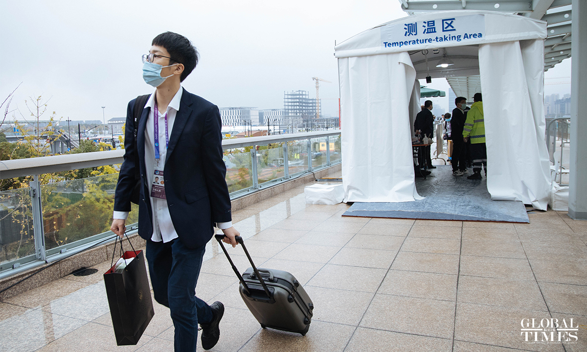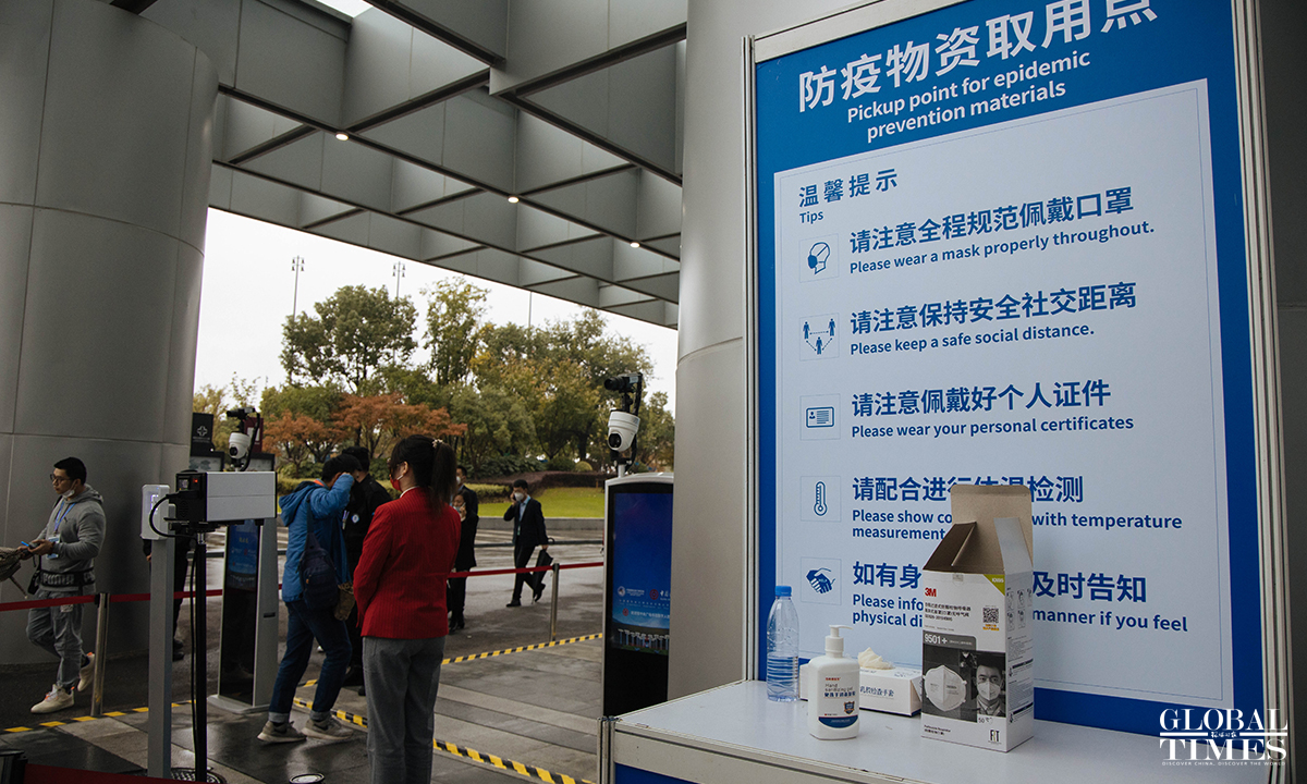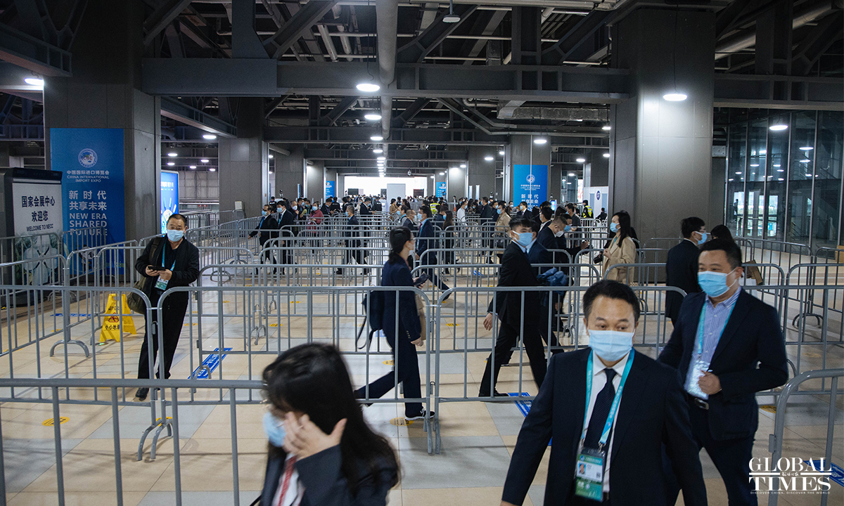 Following stricter COVID-19 preventive measures, the 4th China International Import Expo (CIIE) kicked off on Friday in Shanghai. Prior to entering the exhibition area, all exhibitors and visitors are required to provide a two-dose vaccination certificate, green health code and a negative nucleic acid test taken within 48 hours. Event organizers are providing free nucleic acid testing services for participants.