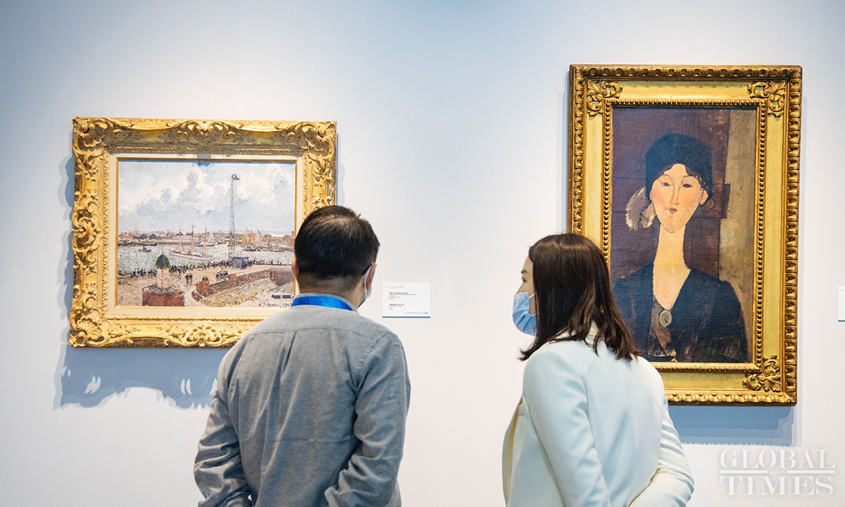 Masterpieces by famous artists including Chinese artist Zhang Daqian, French impressionist painter Claude Monet and Swiss artist Alberto Giacometti have attracted many people at the import expo in Shanghai.
