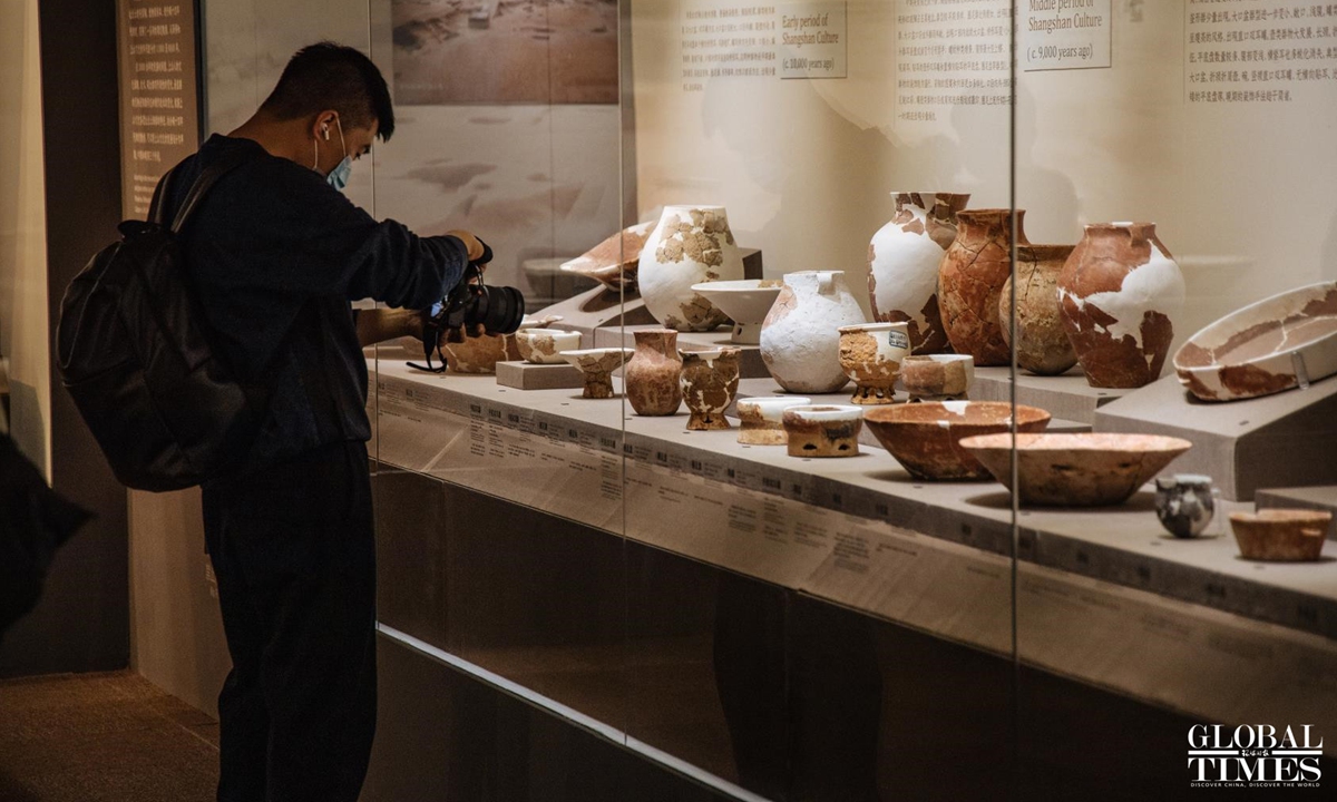 A glimpse at the special exhibition of Shangshan culture archaeological discoveries from Zhejiang. Photo:Li Hao/GT