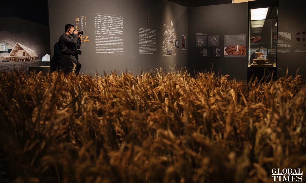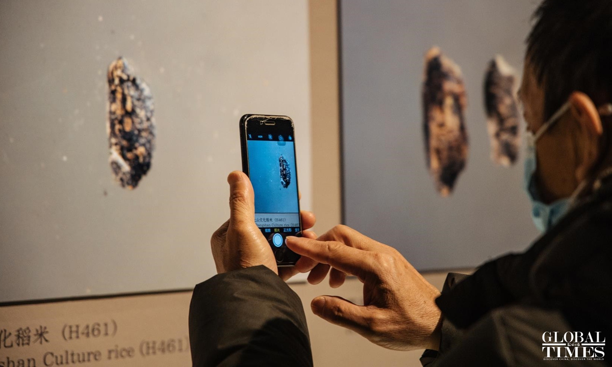 The National Museum of China held a special exhibition named “Rice, origin, enlightenment of Shangshan Cultural Archaeology in Zhejiang” recently. The exhibition displays nearly 200 pieces of cultural relics from the early, middle and late phases of Shangshan culture, including the earliest carbonized rice in China, the earliest colored pottery, the earliest settled village relics and other important symbolic remains of Shangshan culture. (Photos: Li Hao/GT)