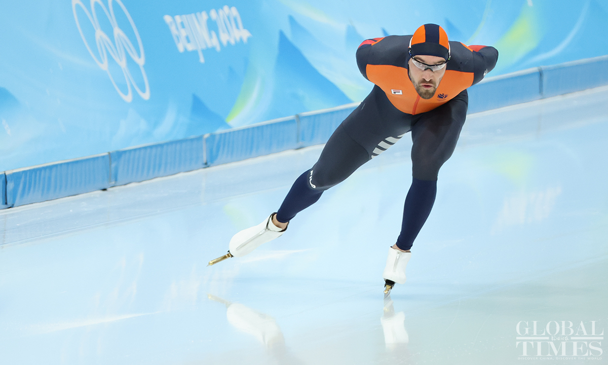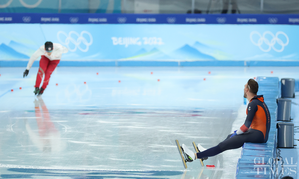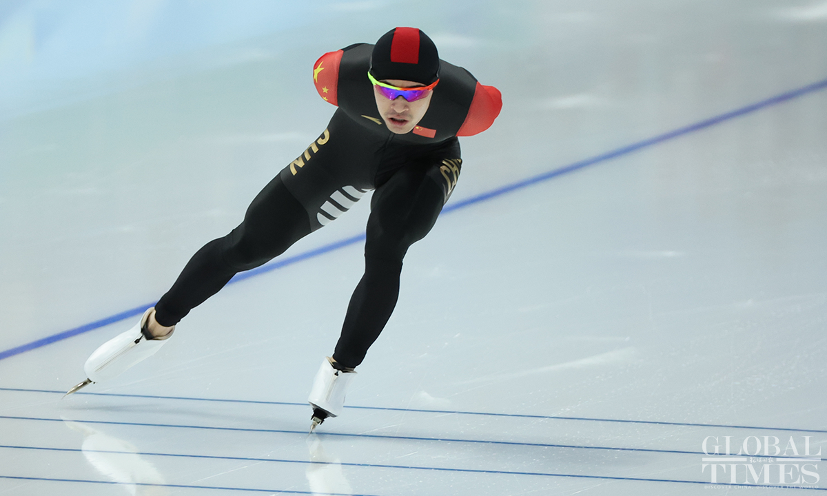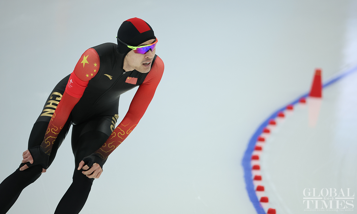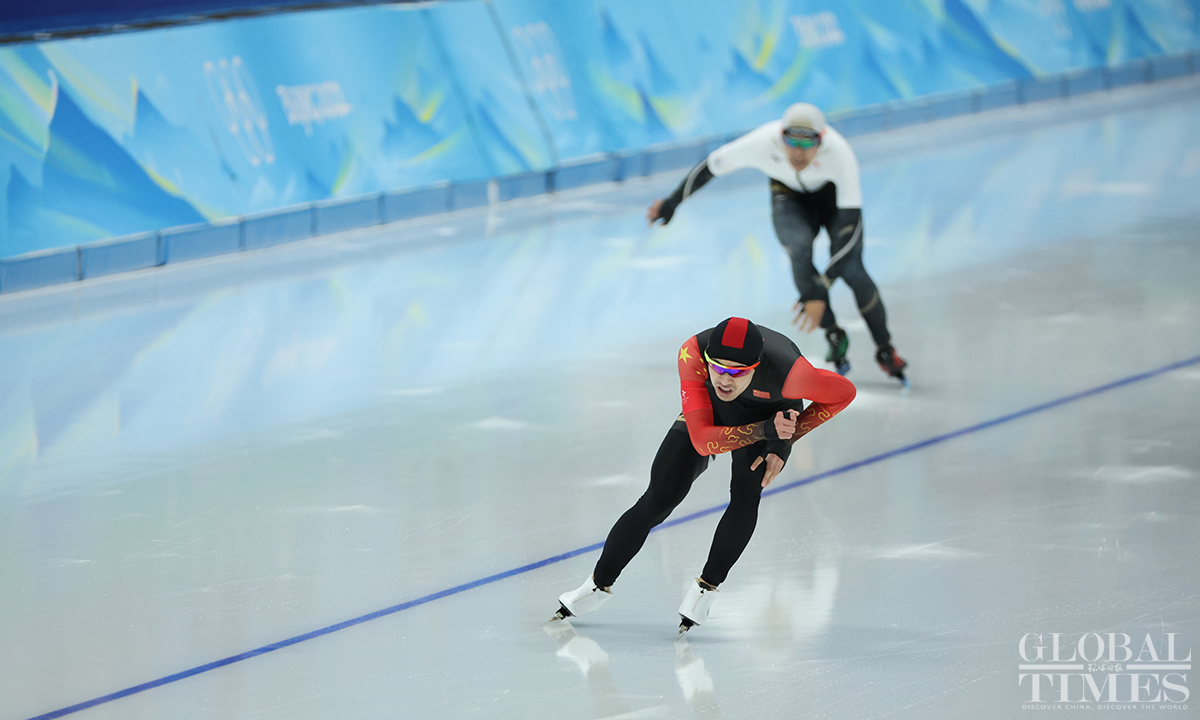 The men's 1500m speed skating final took place at the National Speed Skating Oval on February 8, 2022. Ning Zhongyan of China entered the 14th group and eventually took 7th place. The other two Chinese skaters, Wang Haotian and Lian Ziwen, took 20th and 27th respectively. Photos: Li Hao/GT