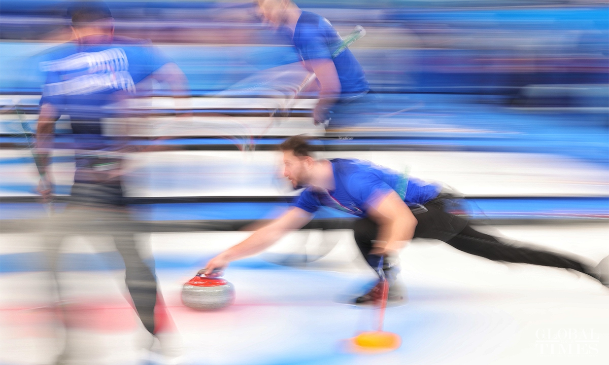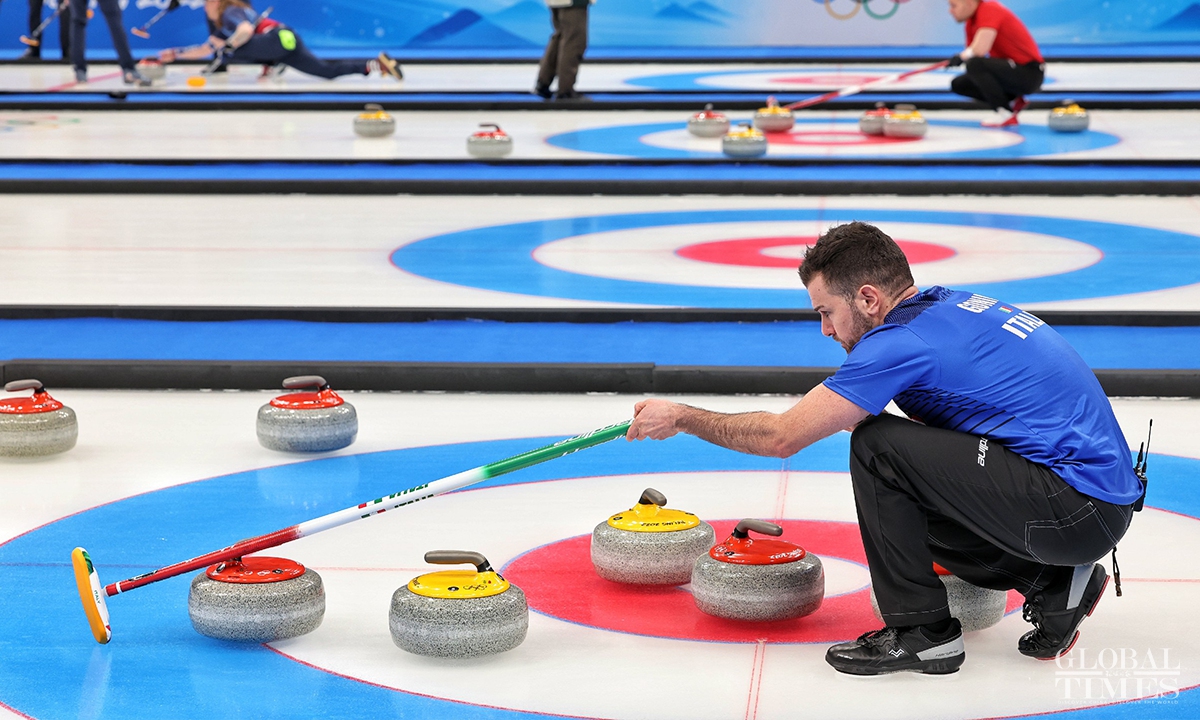 China defeats Italy 12-9 in the 5th round-robin session of men’s team curling at Beijing 2022 Winter Olympics in the National Aquatics Center on Saturday, bagging two consecutive wins. (Photos: Li Hao/GT)