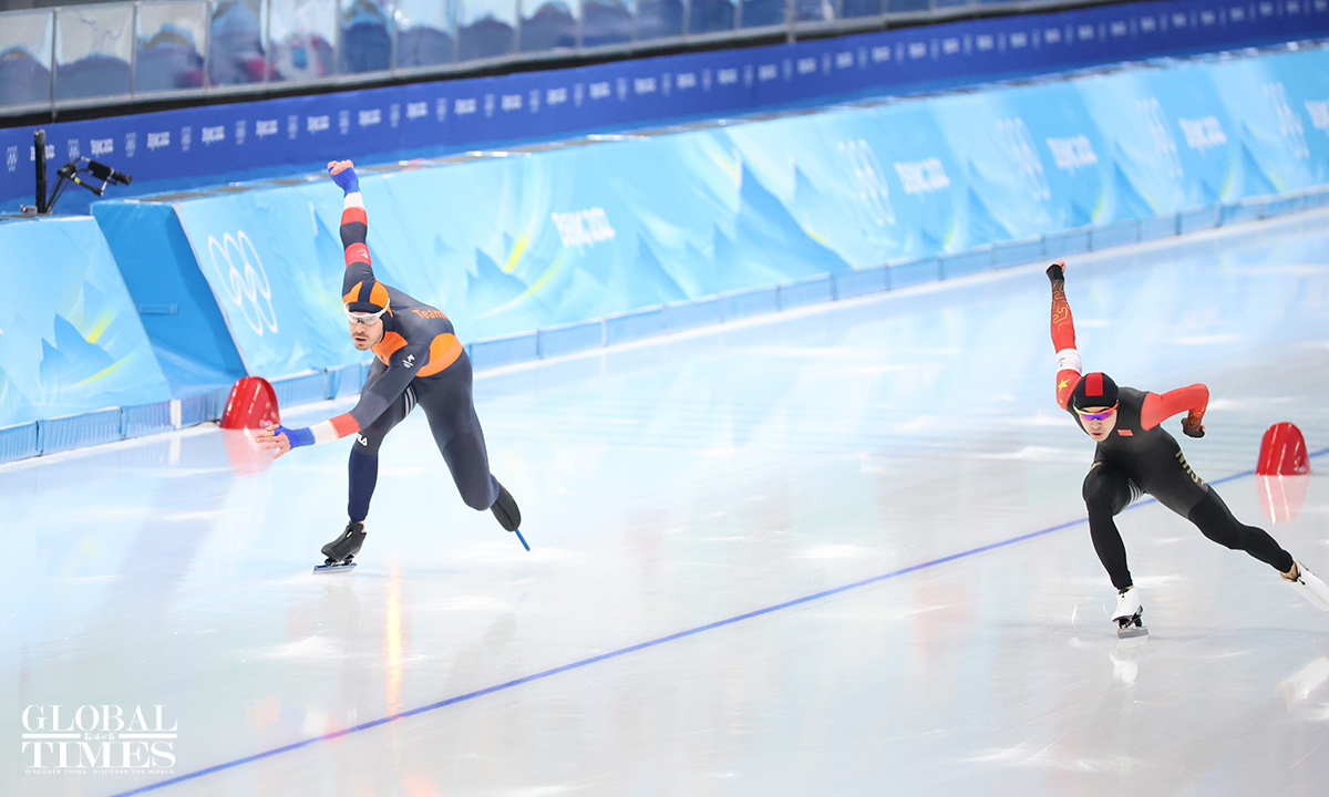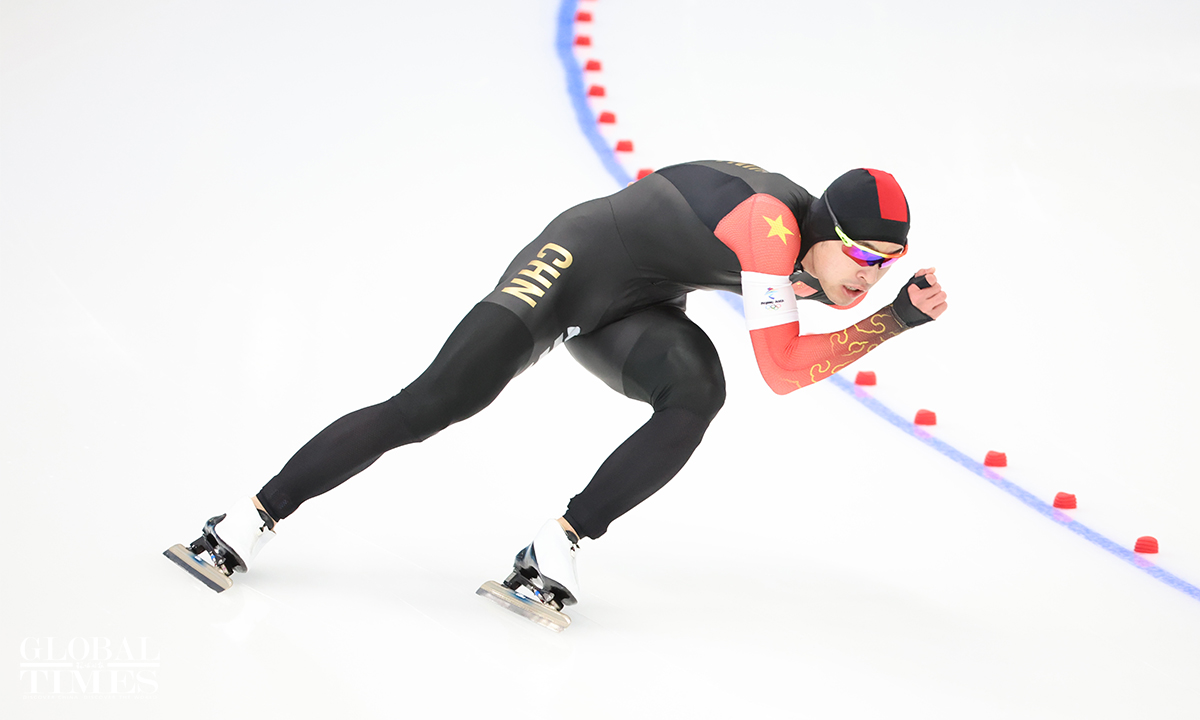 The Men's 1000m Speed Skating at the Beijing 2022 Winter Olympics was held at the National Speed Skating Oval on Friday. China's Ning Zhongyan debuted in the 14th group and ranked fifth with 1:08.60. Photos: Li Hao/GT