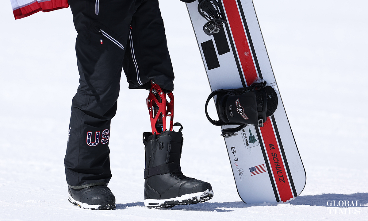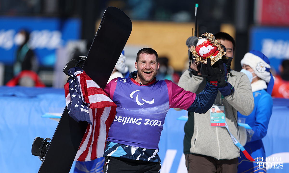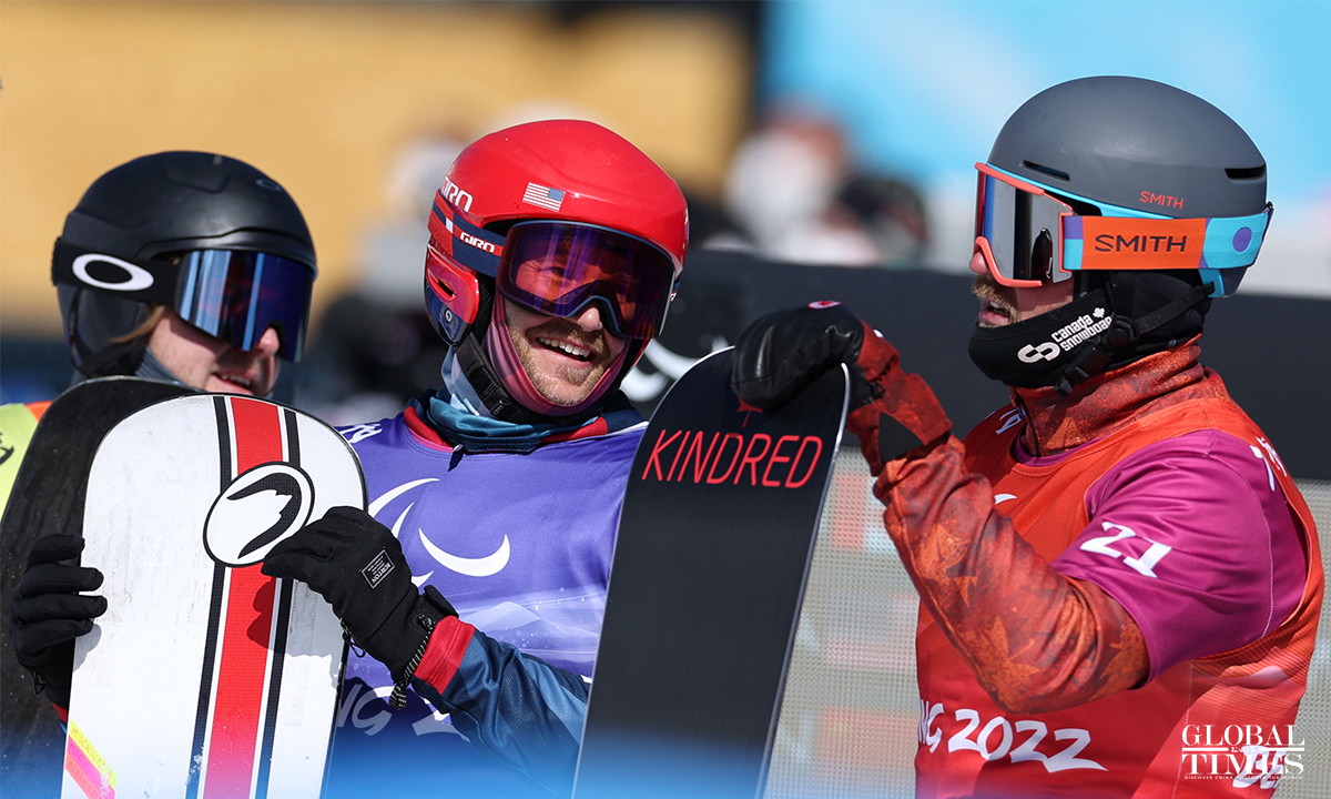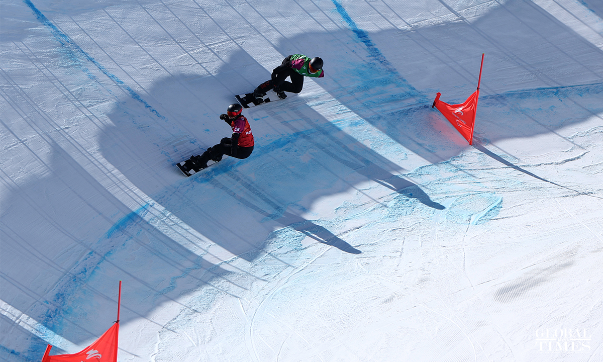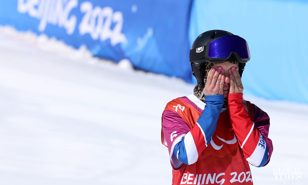 The Para Snowboard competition was held at Genting Snow Park in Zhangjiakou, China’s Hebei Province on Monday during the Beijing 2022 Winter Paralympics. Including two events of banked slalom and obstacle chase, athletes are divided into one level of upper limb disability and two levels of lower limb disability according to the degree of disability, and a total of 8 gold medals are available. Photos: Cui Meng/GT