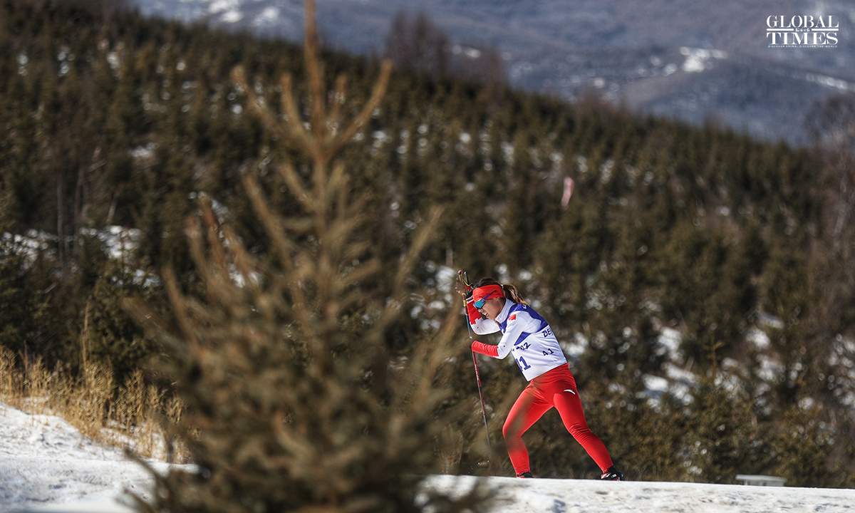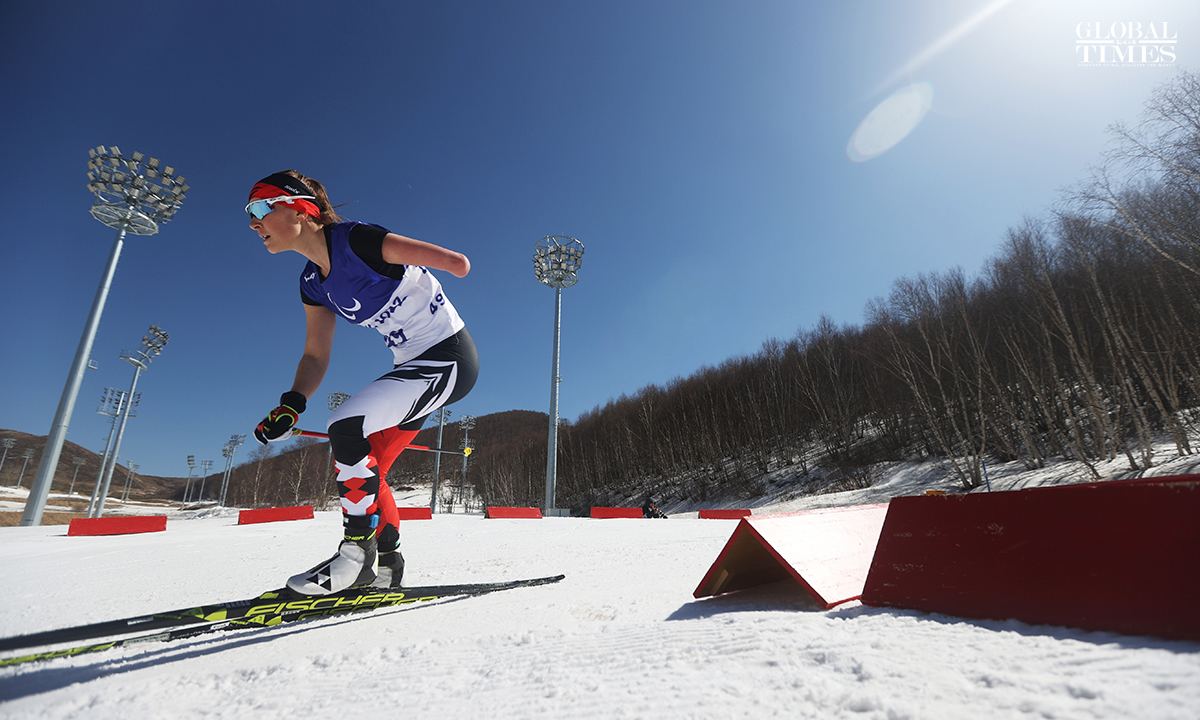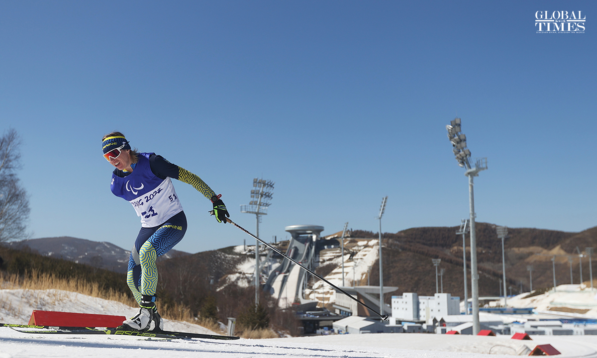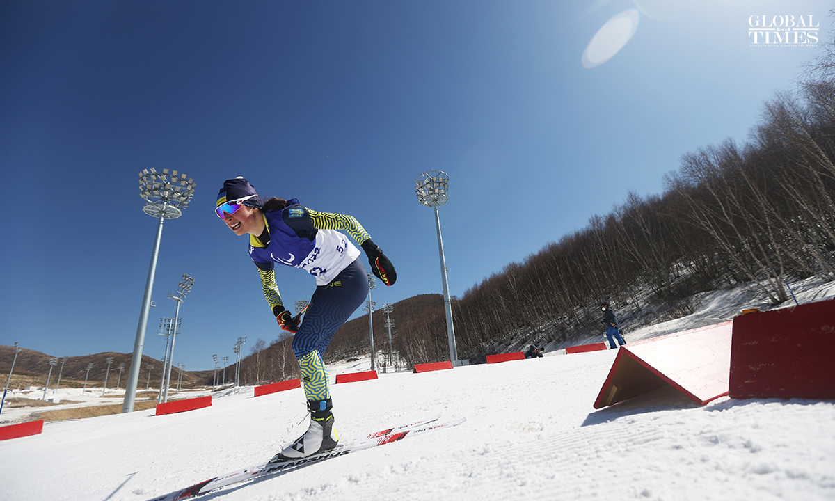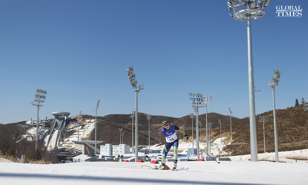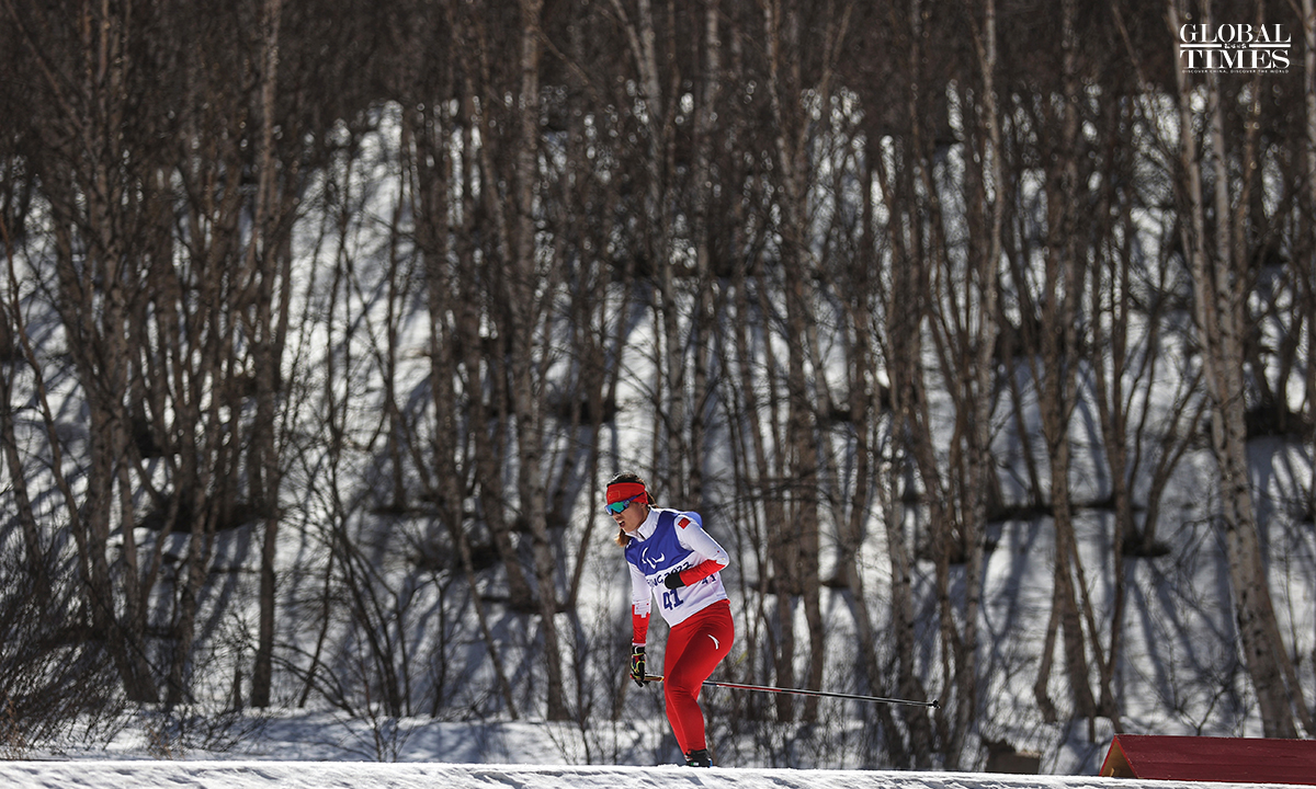 The Para biathlon women's middle distance standing of the Beijing 2022 Winter Paralympic Games was held at the National Biathlon Center in Zhangjiakou, North China's Hebei Province, on March 8. China’s Guo Yujie ranked fourth in this event. Photos: Cui Meng/GT