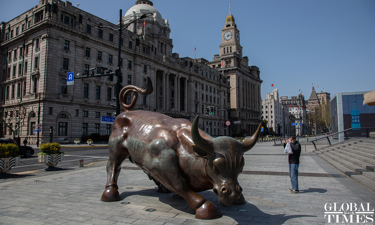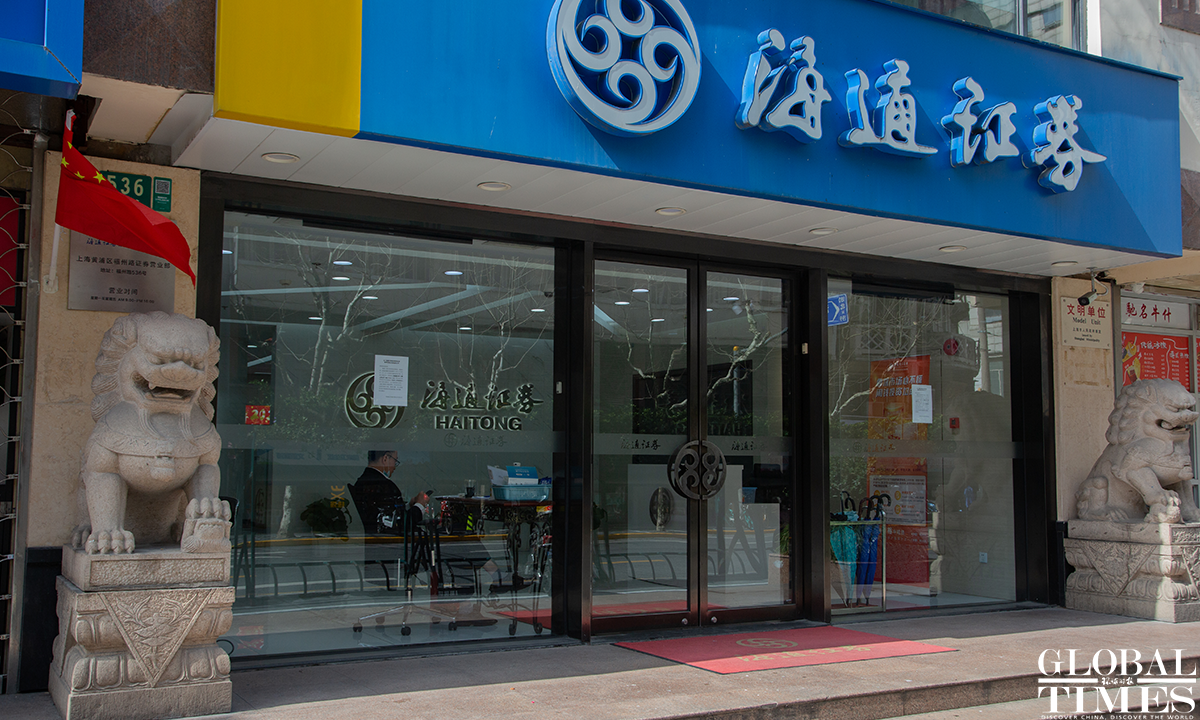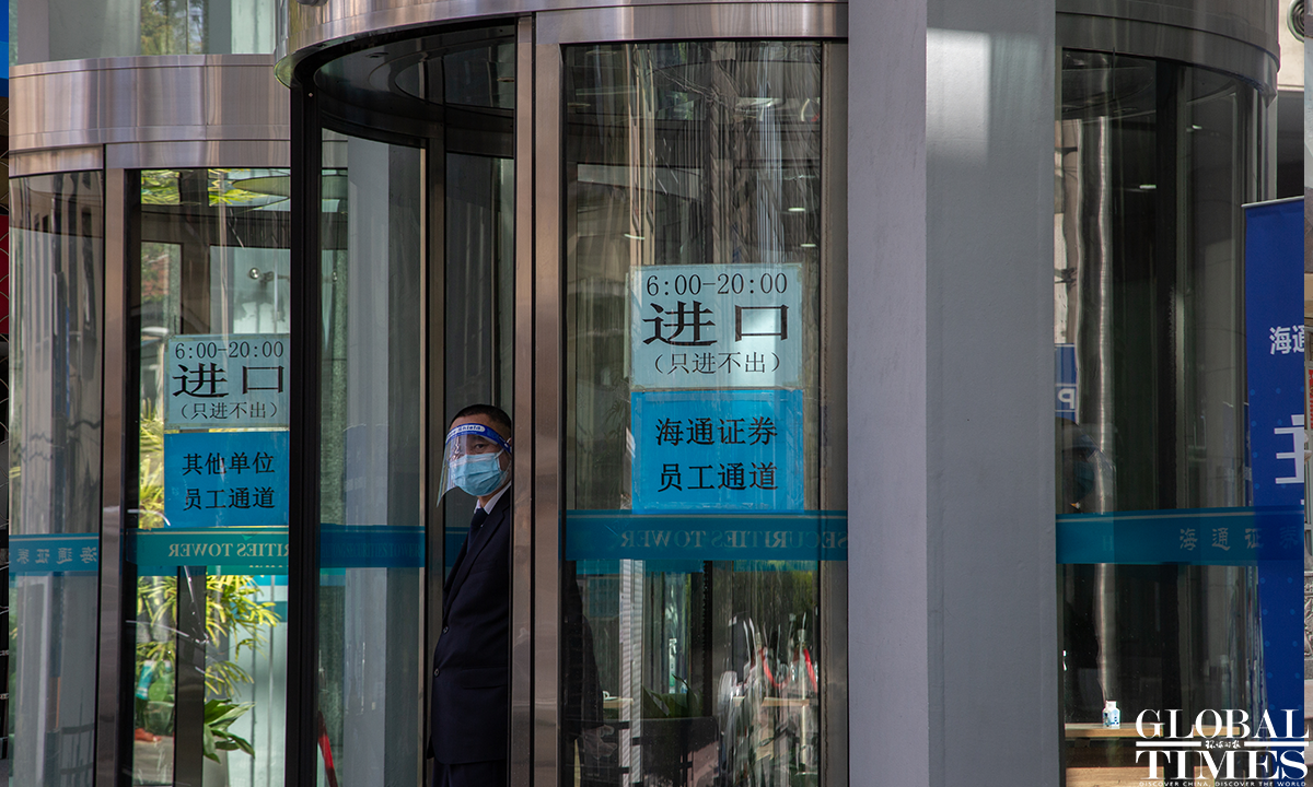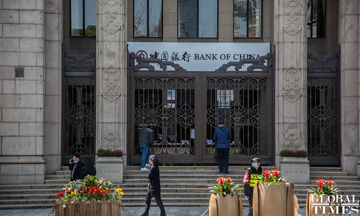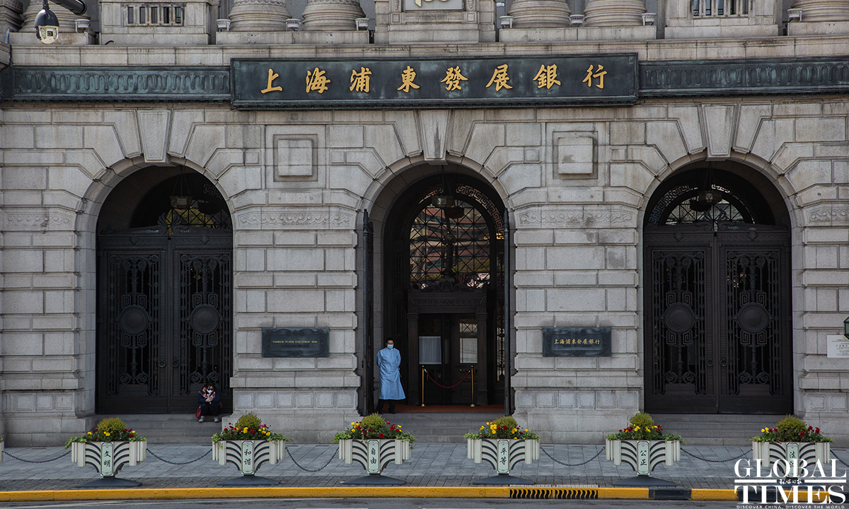 Puxi, Shanghai, Mar 29, the 2nd day of staggered lockdown, with trading, banks, insurance and other financial institutions remaining open to ensure the normal operation of financial markets. Photos: Shi Liu/GT