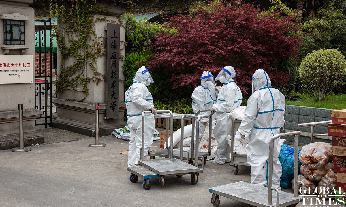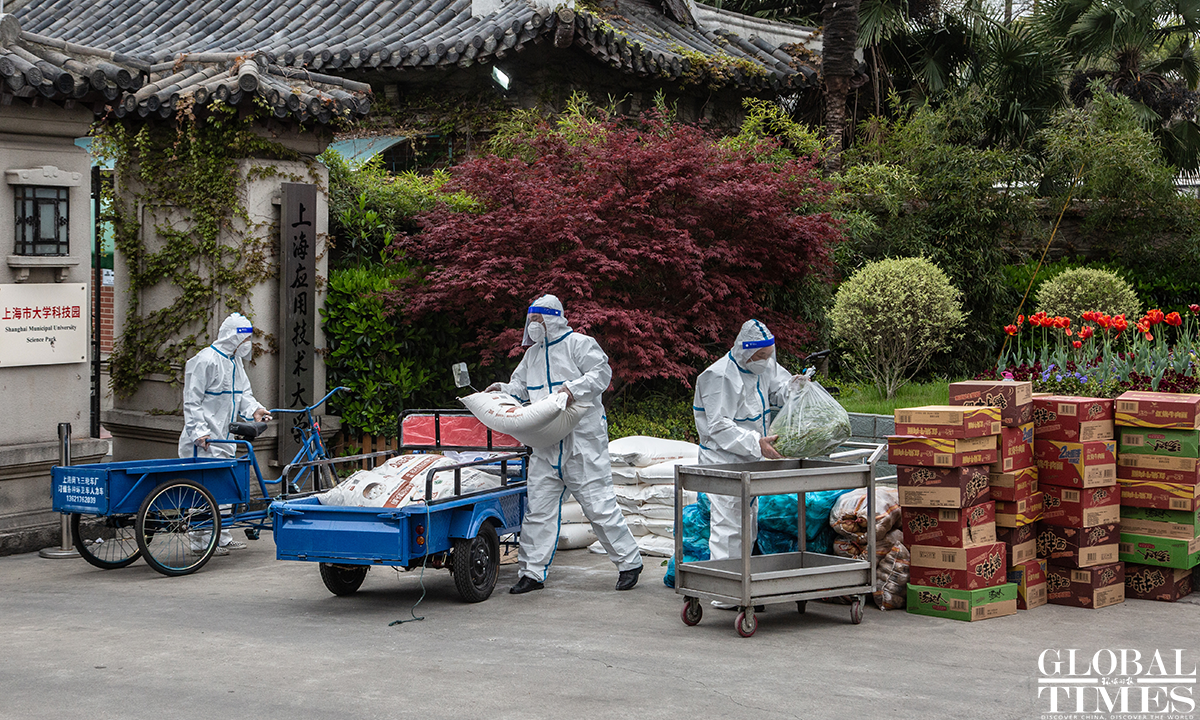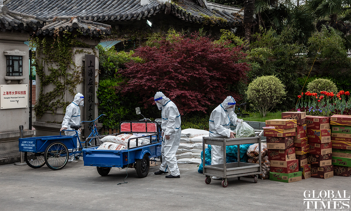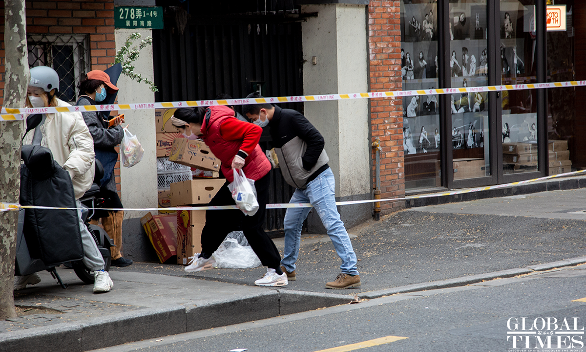People in Puxi, Shanghai, get prepared for the complete lockdown starting from Friday. A total of 16 million people in 12 districts will undergo the second round of nucleic acid screening. Photos: Shi Liu/GT