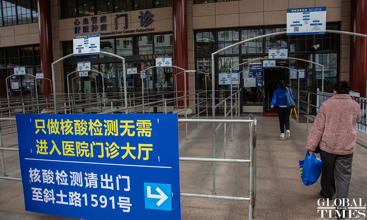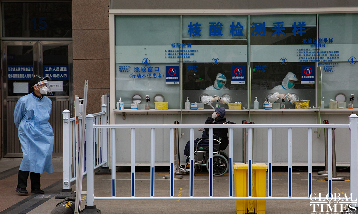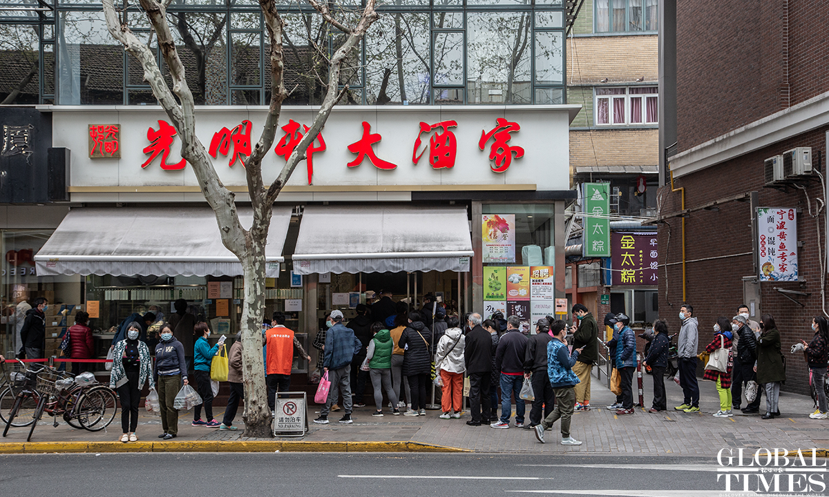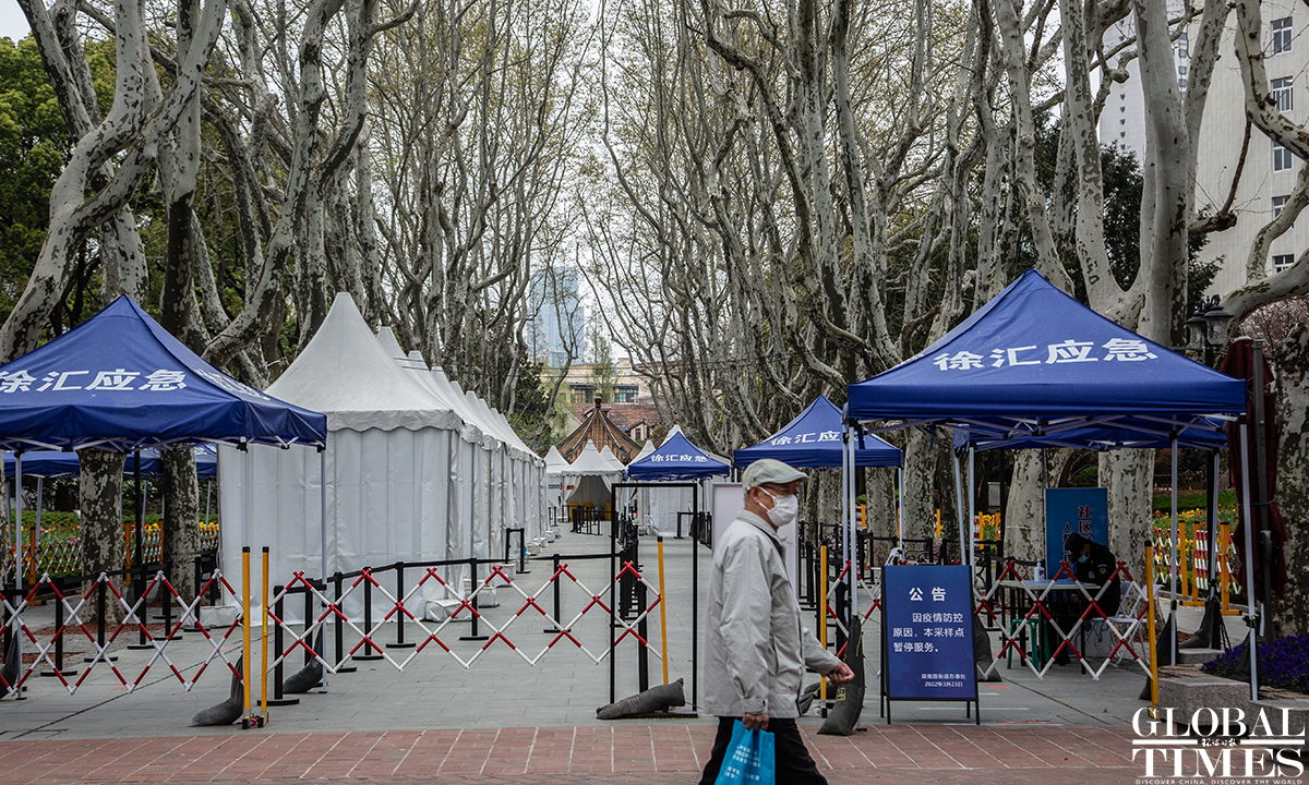 People in Puxi, Shanghai, get prepared for the complete lockdown starting from Friday. A total of 16 million people in 12 districts will undergo the second round of nucleic acid screening. Photos: Shi Liu/GT