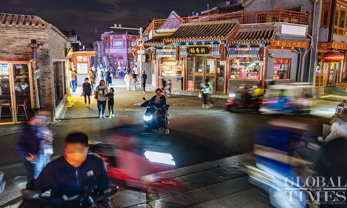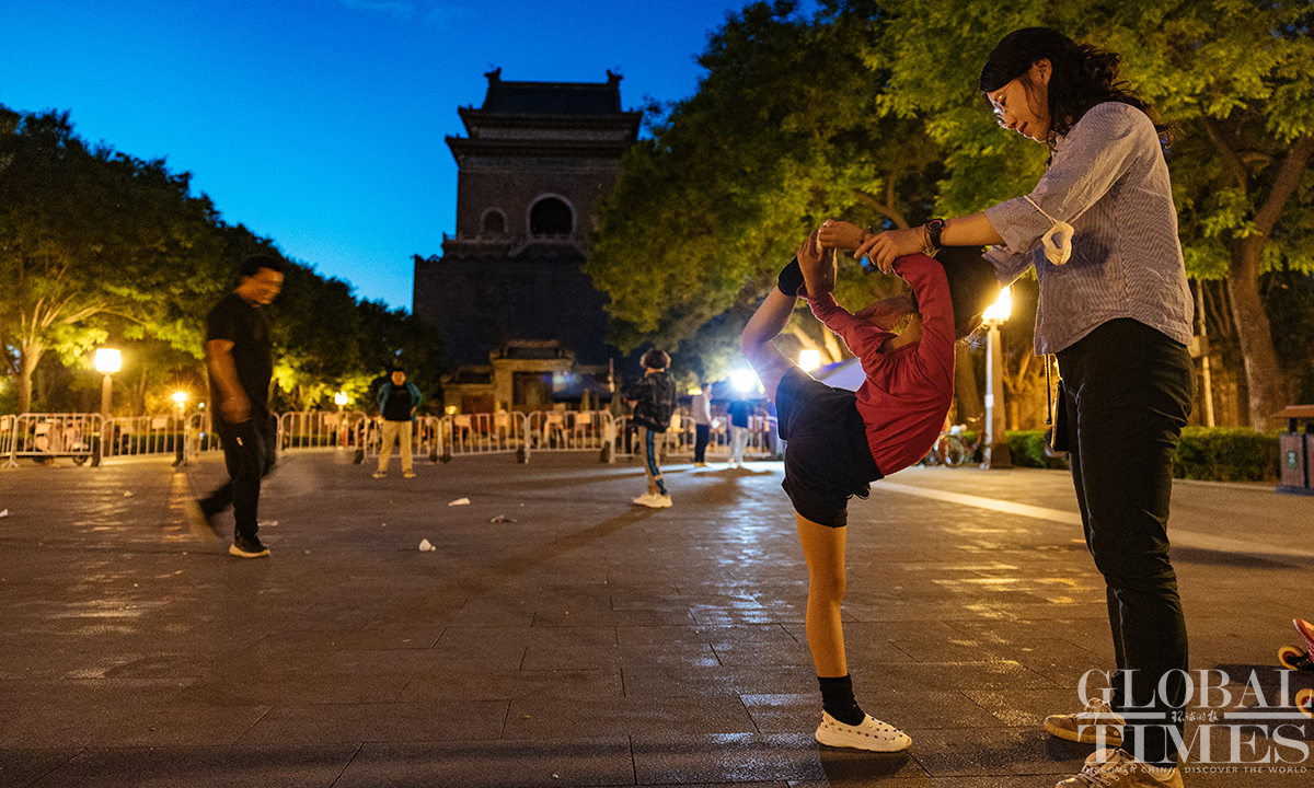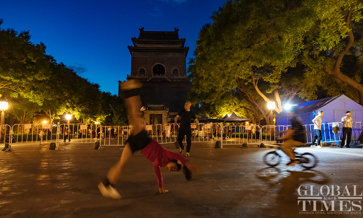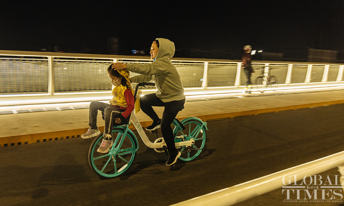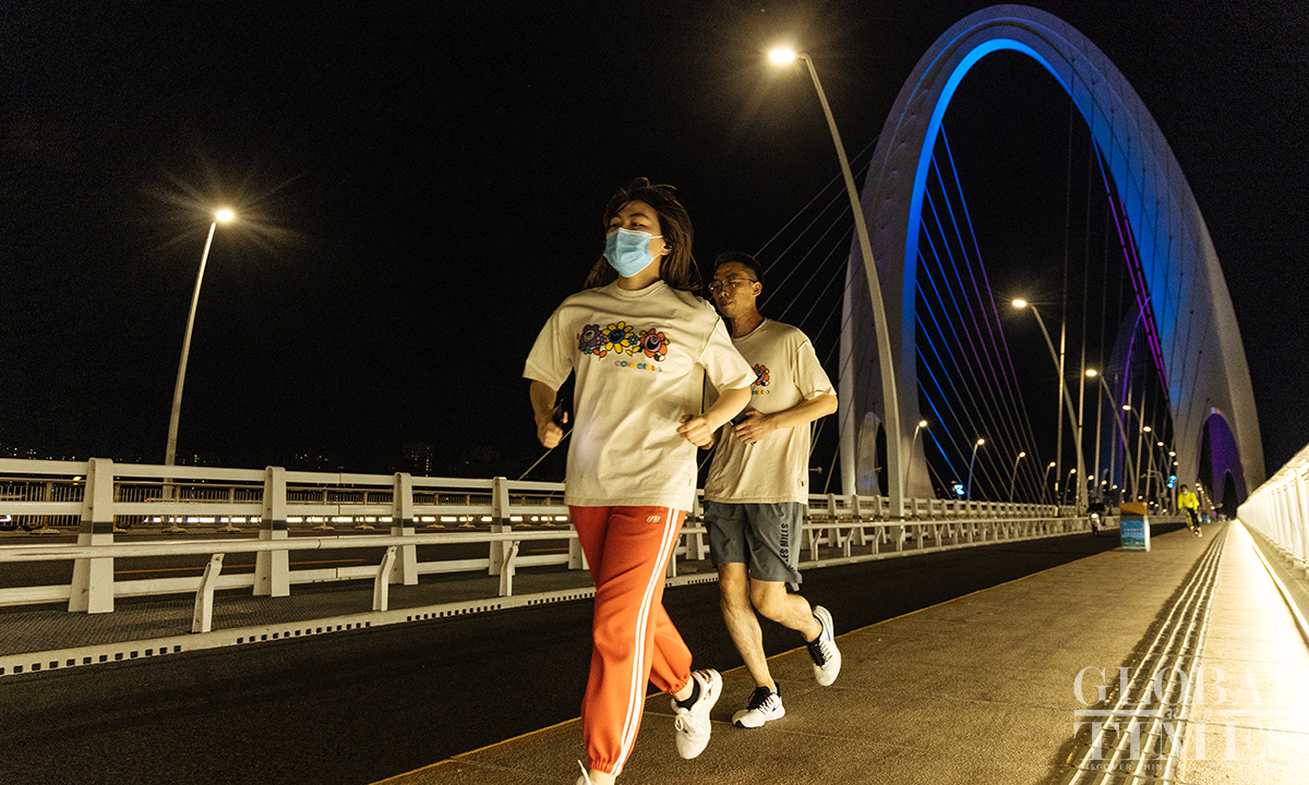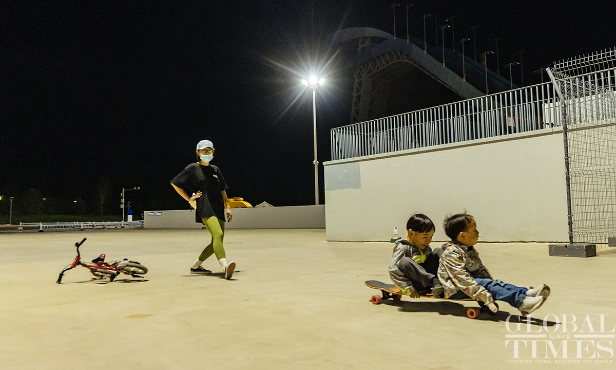 Although Beijing has suspended service in restaurants and many scenic spots as part of the epidemic prevention and control measures, people are going out to enjoy the good weather while abiding by anti-epidemic regulations. At the Shougang Park, people set up tents, have picnics and participate in outdoor sports. People in the Gulou area still exercise in the evening. An endless stream of people go to Houhai for a walk while many climb the Hongguang Mountain to take pictures of Beijing's night view. The city is still bustling with energy. (Photos: Li Hao/GT)