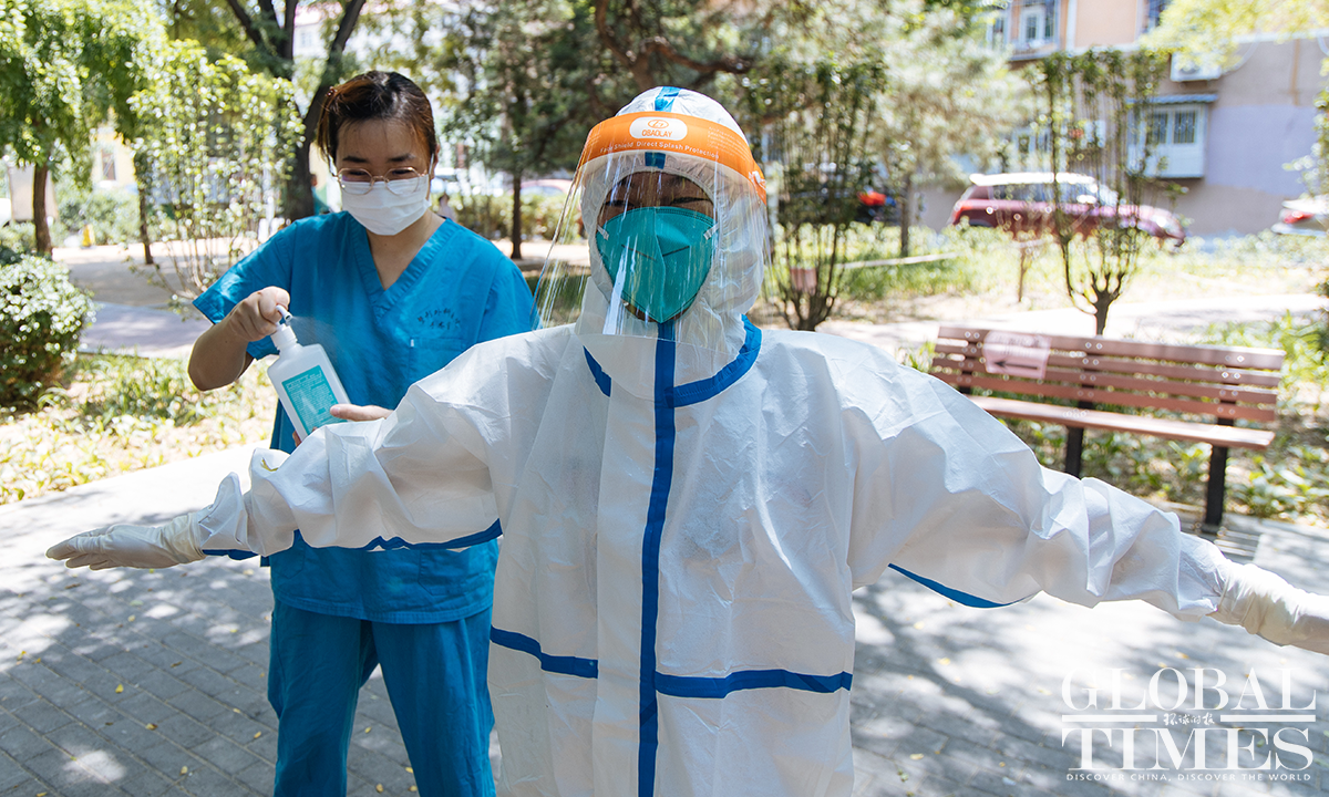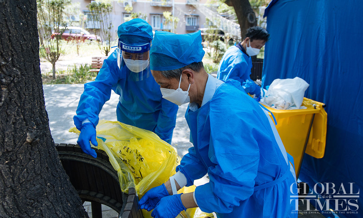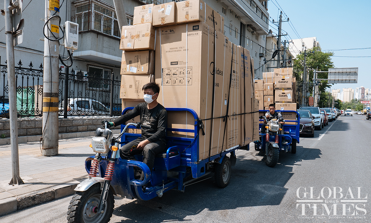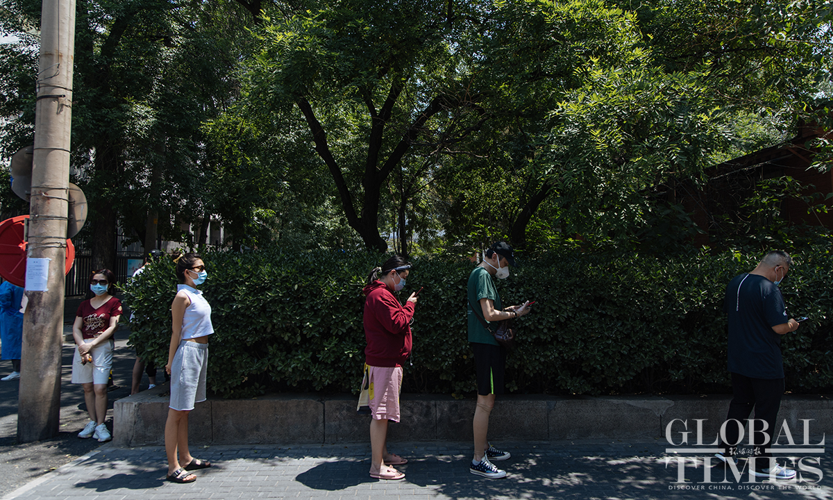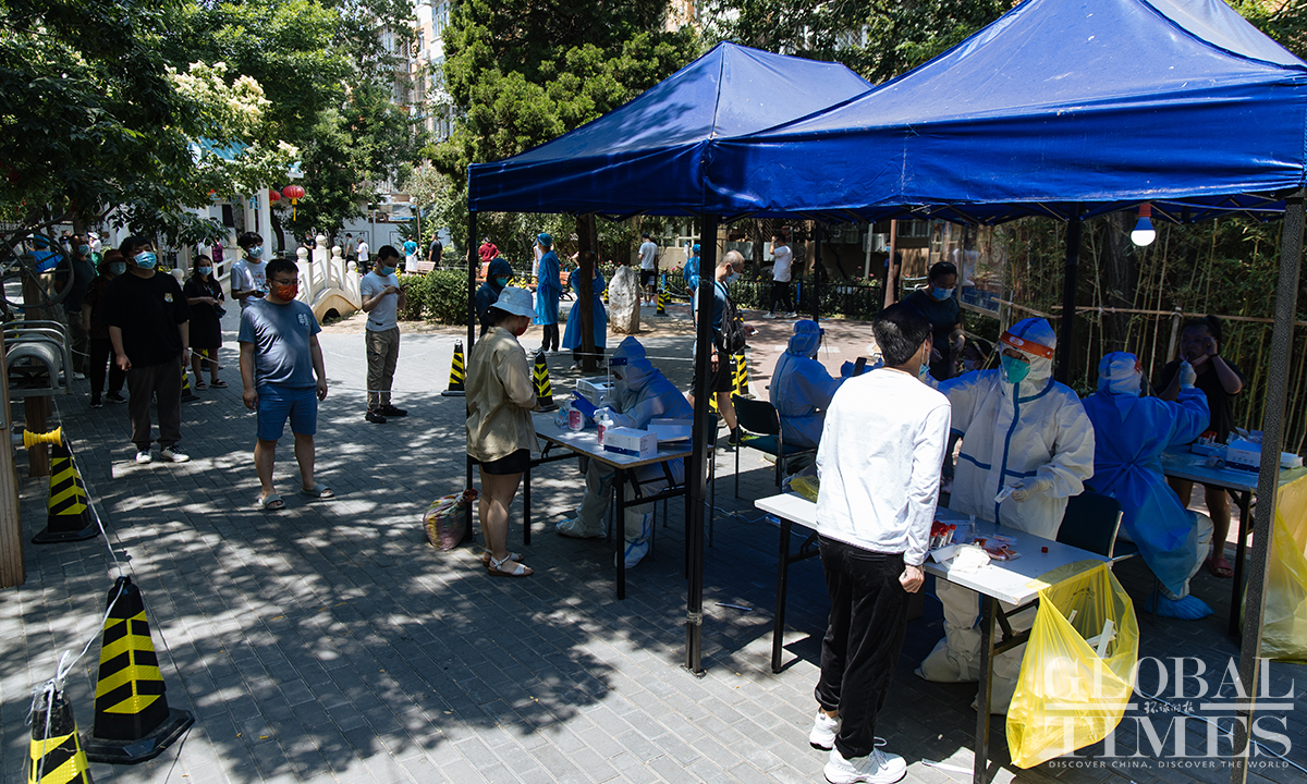 Multiple districts in Beijing have upgraded anti-epidemic measures, strengthened community prevention and control management, and normalized localized nucleic acid testing. Some communities have arranged 24-hour security personnel at the residential compound entrances, reinforcing management of people and vehicles’ access, temperature check, health code scanning, 48-hour negative nucleic acid test result, registration and other measures. People from outside the community, including delivery workers, are not allowed to enter, and residents can pick up their packages in a safe and organized way. (Photos: Li Hao/GT)