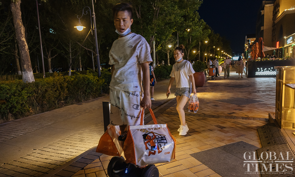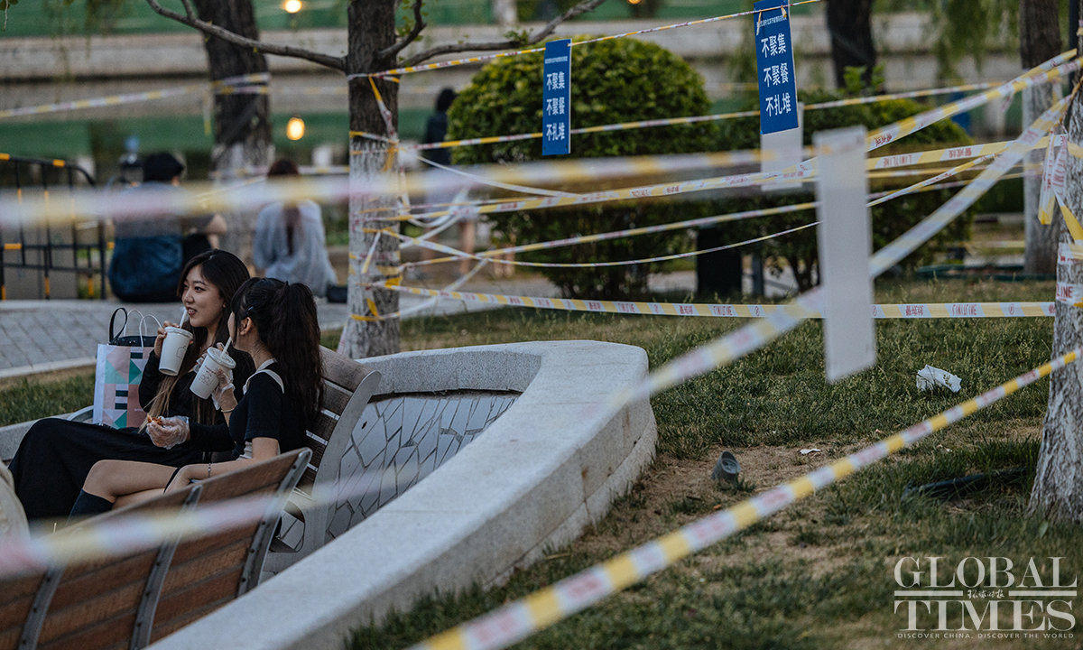Multiple districts in Beijing have resumed work and reopened some of the parks and scenic spots with a 50% capacity limit. The leisure and entertainment life of residents has gradually returned to normal. People have kept a safe social distance complying with epidemic prevention requirements. Business areas are revitalized. (Photos: Li Hao/GT)