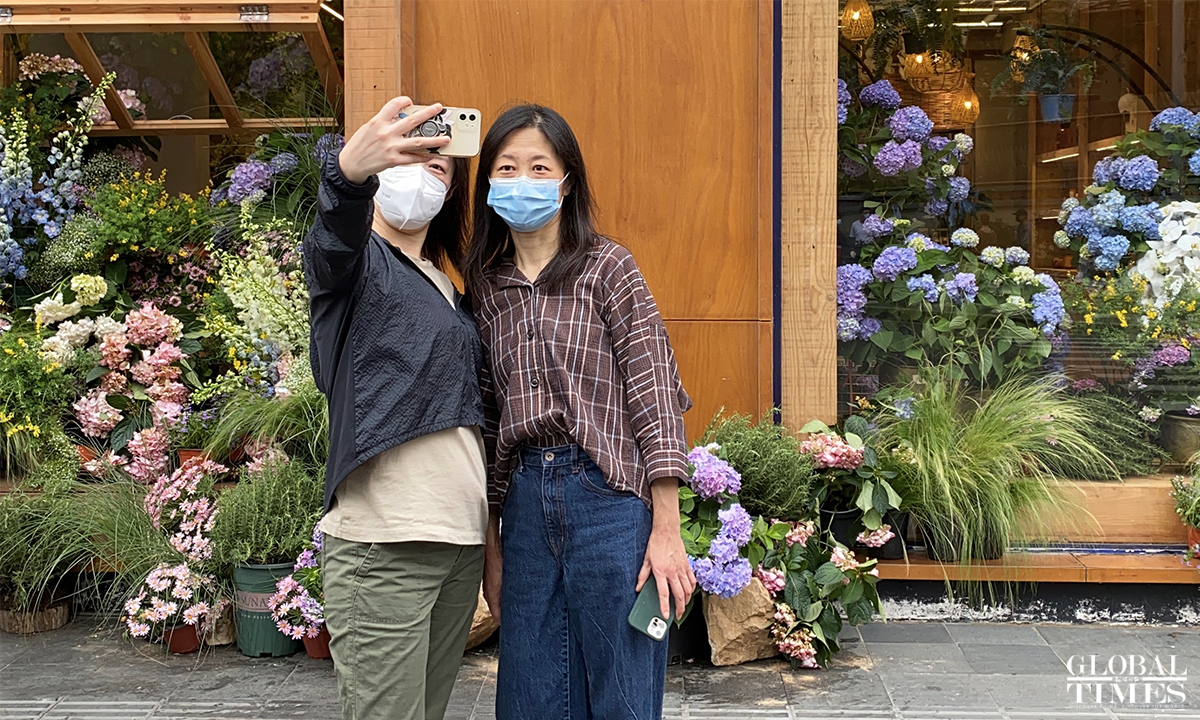 Citizens take to Shanghai’s Anfu Road, to go shopping, visit bookstores, drink coffee, take pictures with flowers to enjoy normal life again on June 1, the first day of resuming production and normal life in Shanghai. Photos: Chen Xia/GT figcaption >