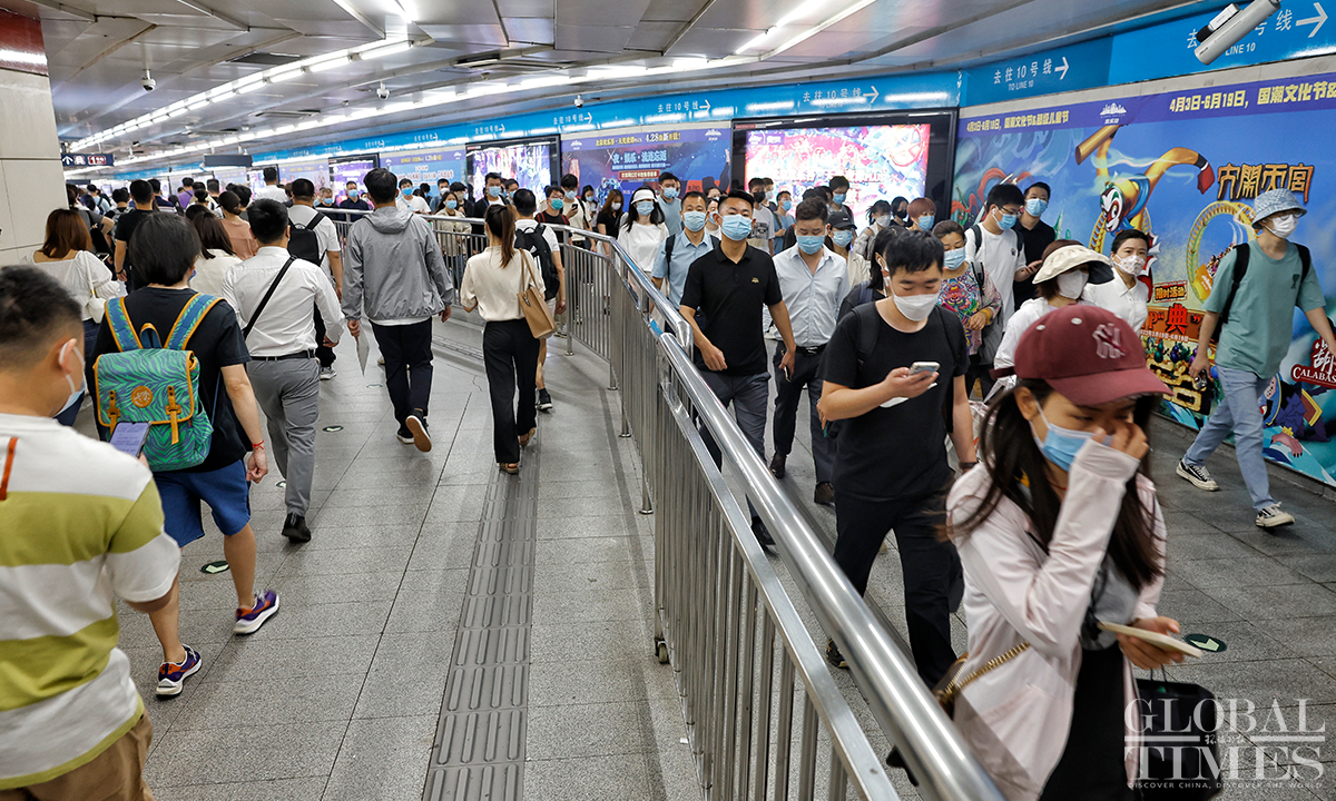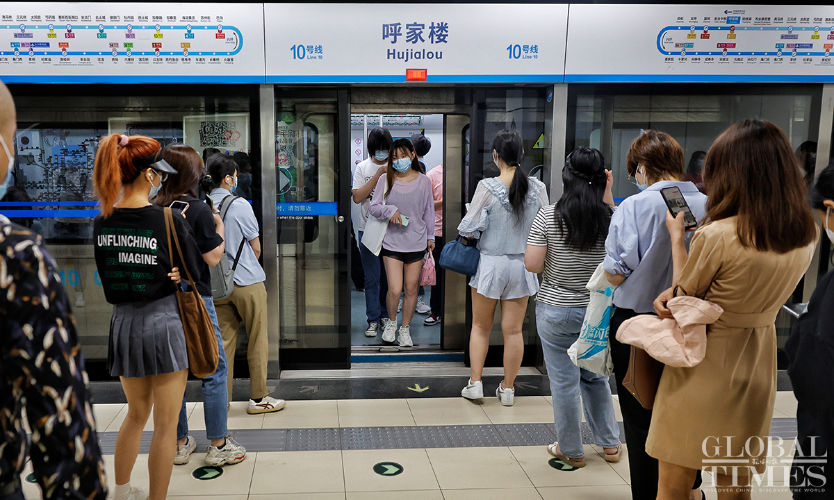 Work resumed in some parts of Beijing on June 6, 2022. As commuters returned to the usual work routine, the typical morning rush hour was observed on subway lines and traffic jams on ground transportation. (Photos: Li Hao/GT)