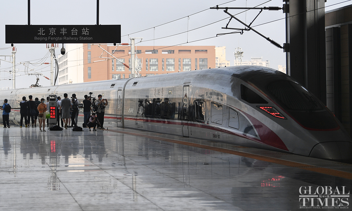 Beijing Fengtai Railway Station is a truly century-old station. It was built in 1895 and was the first railway station in Beijing at that time. After 4 years of renovation and expansion, the railway station went into operation with a brand new look, adding a new landmark to Beijing. The Beijing-Guangzhou high-speed railway, Beijing-Shanghai and Beijing-Kowloon normal-speed railways and other lines will be arranged to start and end operation at Fengtai station. 120 passenger trains will be arranged in the early stage of operation. Photos: Cui Meng/GT