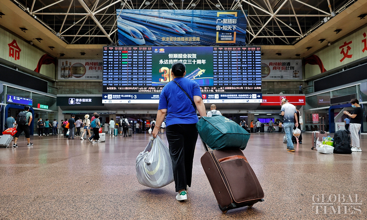 July 1 marks the first day of 2022’s summer travel rush. Beijing railway authorities have strictly implemented temperature screening for passengers, and check negative nucleic acid test result taken within 48 hours at the entrance of the station.