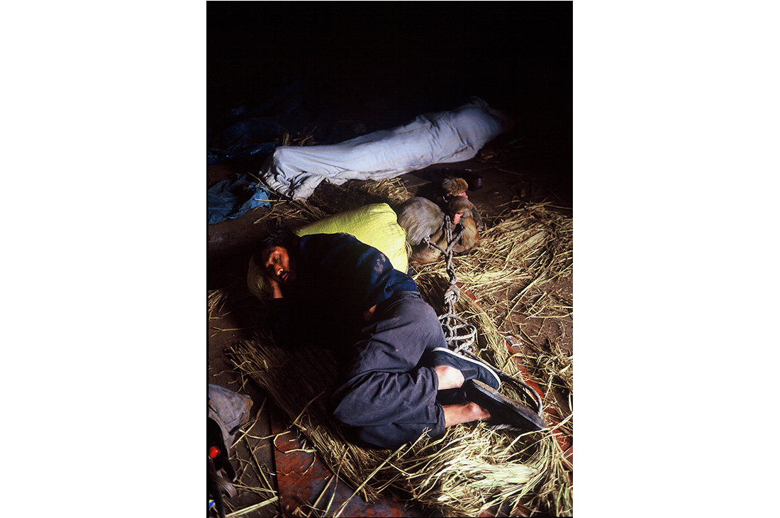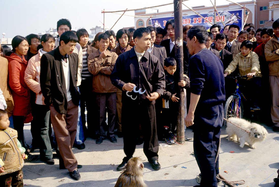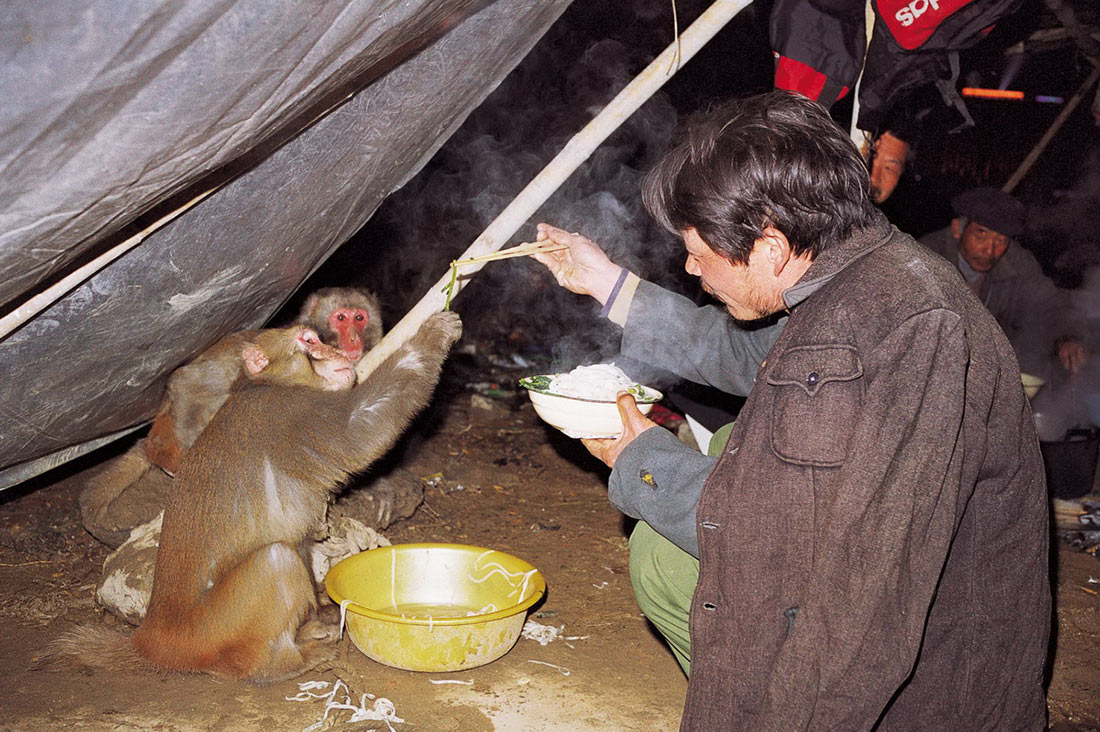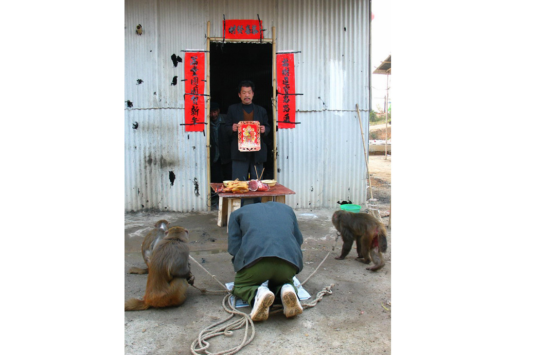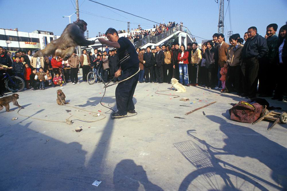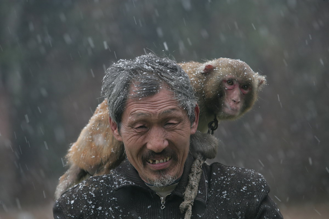 Photographer Ma Hongjie began photographing monkey buskers from Baowan village after meeting performer Yang Lingui in 2002. He followed Yang’s group for 12 years, capturing their joys and sorrows with his camera.