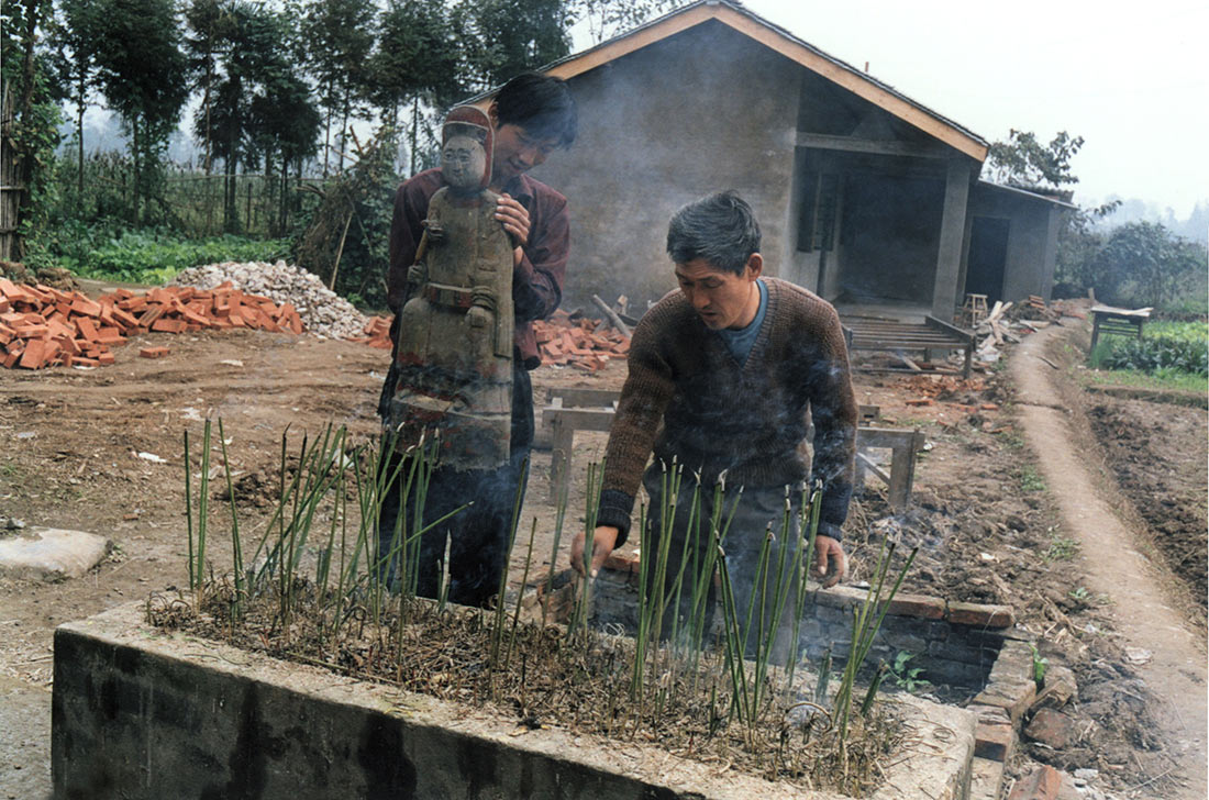 Yang and his son make an offering to folk god of animals during their journey in Sichuan Province.