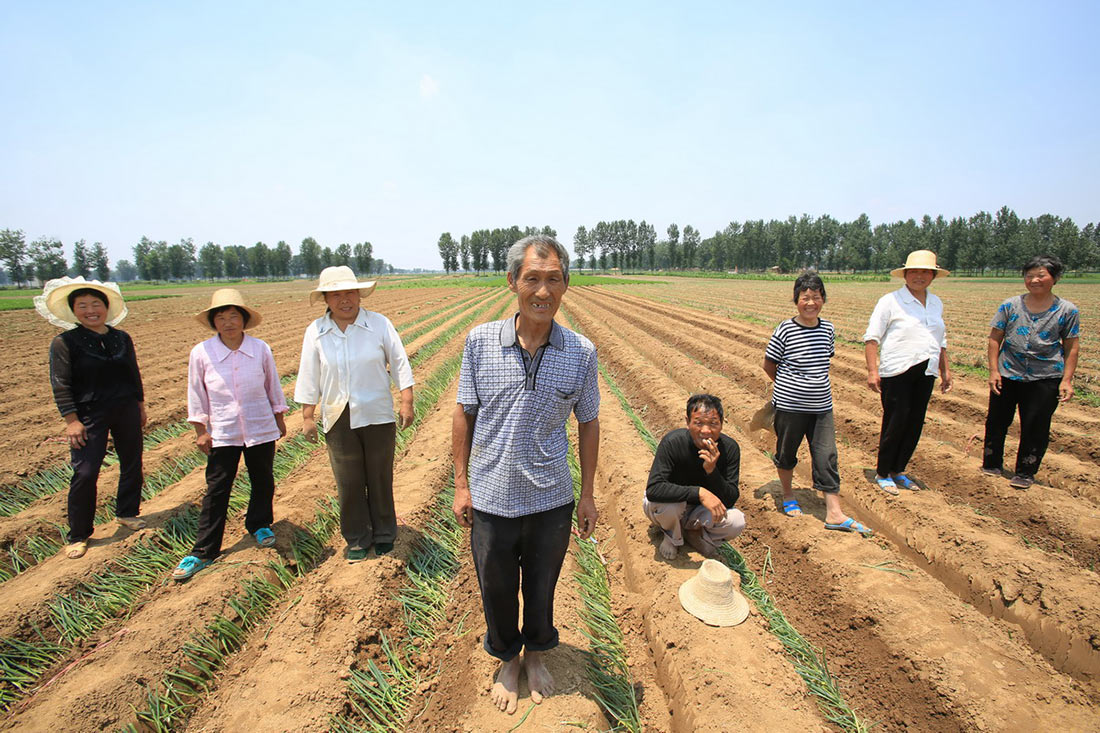 Yang stands with his hired farmhands on the land he rents in Xinyue county. figcaption >