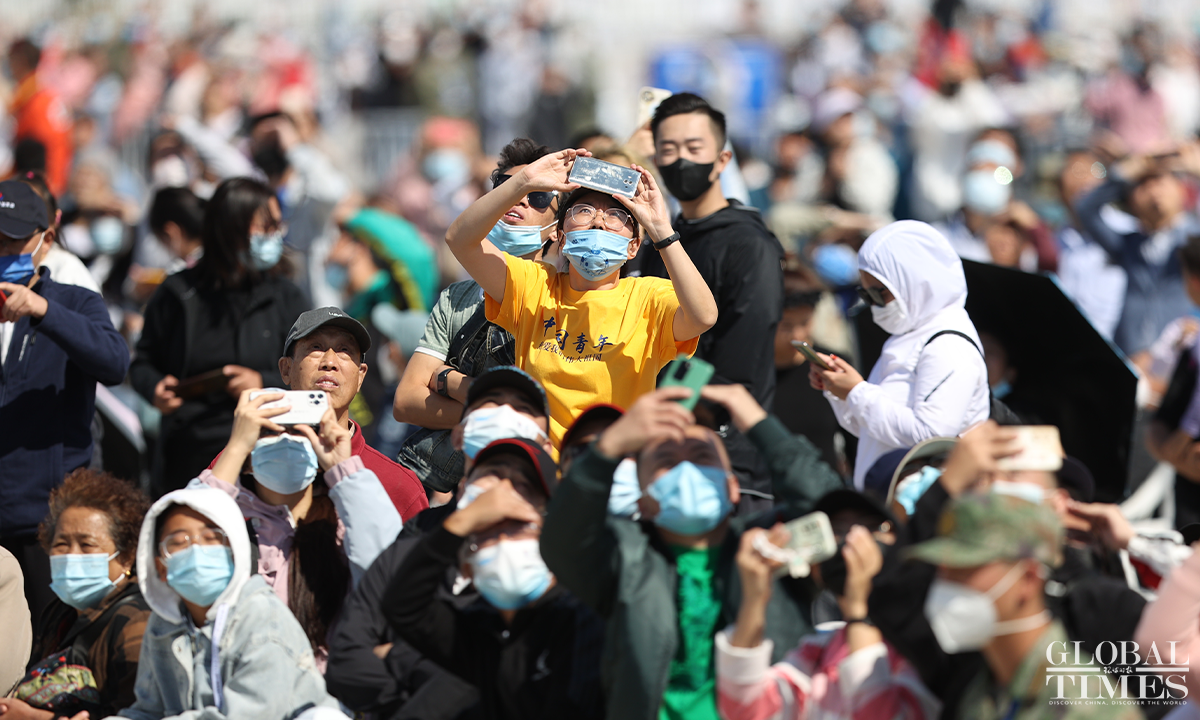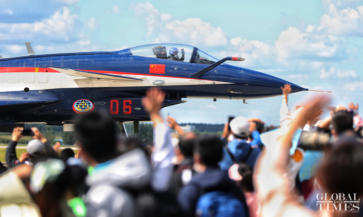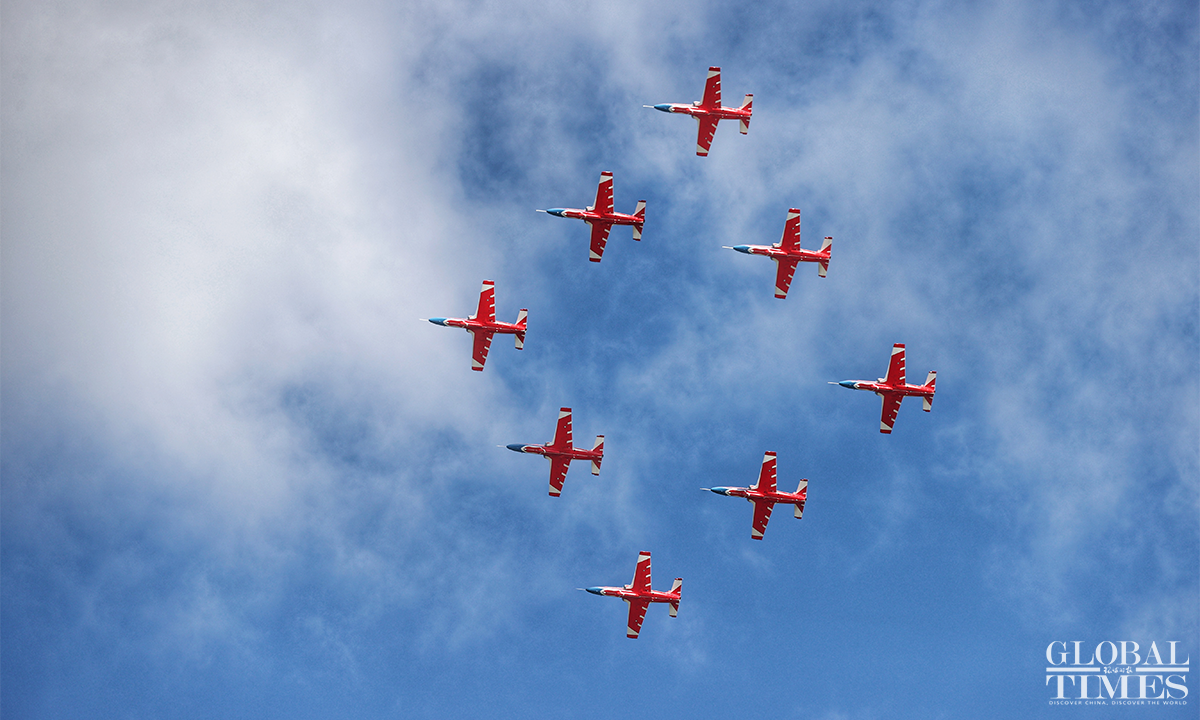 Chinese PLA’s star fighter jets, including the J-20, Y-20, and aerobatic performance teams, including the Bayi Aerobatics Team, made an appearance at the PLA Air Force open day event on Saturday. (Photos: Cui Meng/GT)