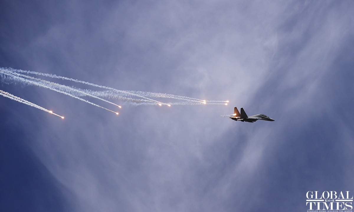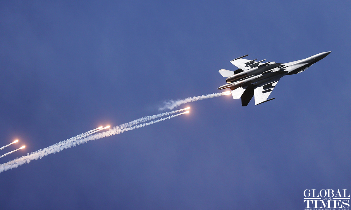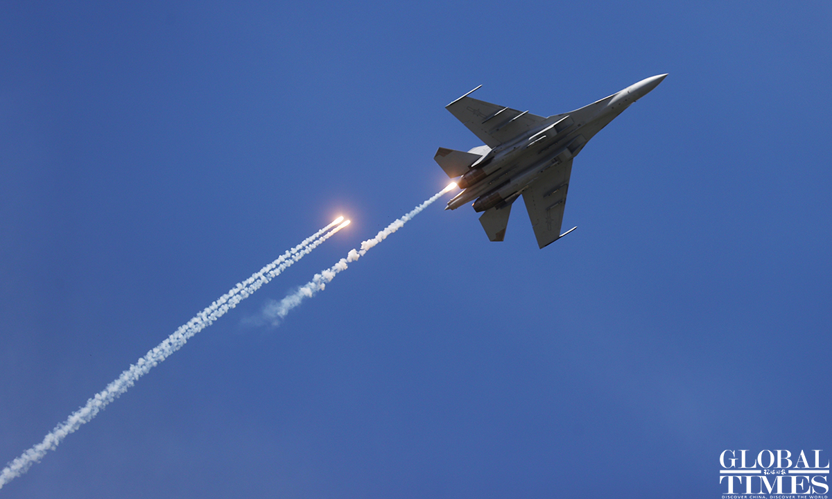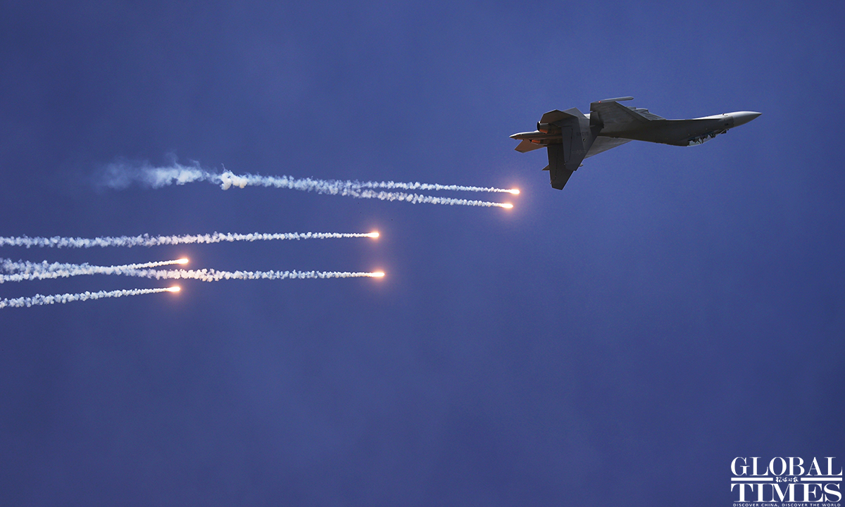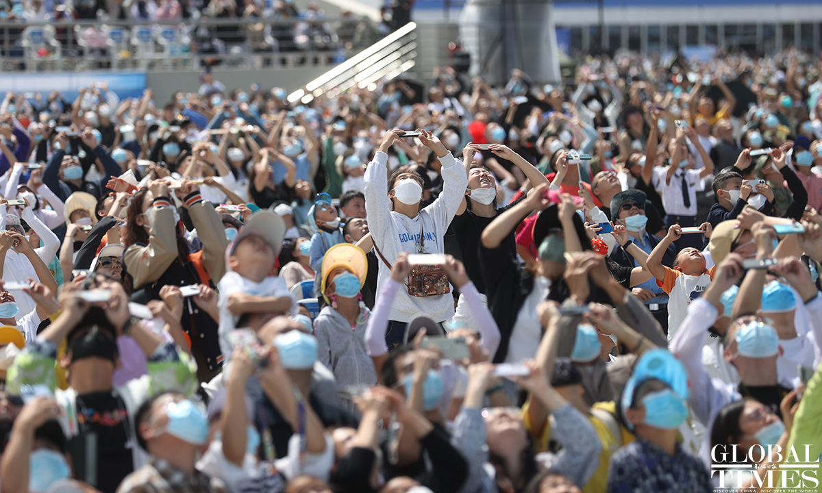 Pilots wow spectators with heart formation in the sky! About 140,000 spectators gathered at Dafangshen Airport in Changchun for the PLA Air Force open day event on Sun. The audience was mesmerized by the flight performances of various types of aircraft and the display of star jets including YU-20, H-6, J-10C and KJ-500. Photos: Cui Meng/GT